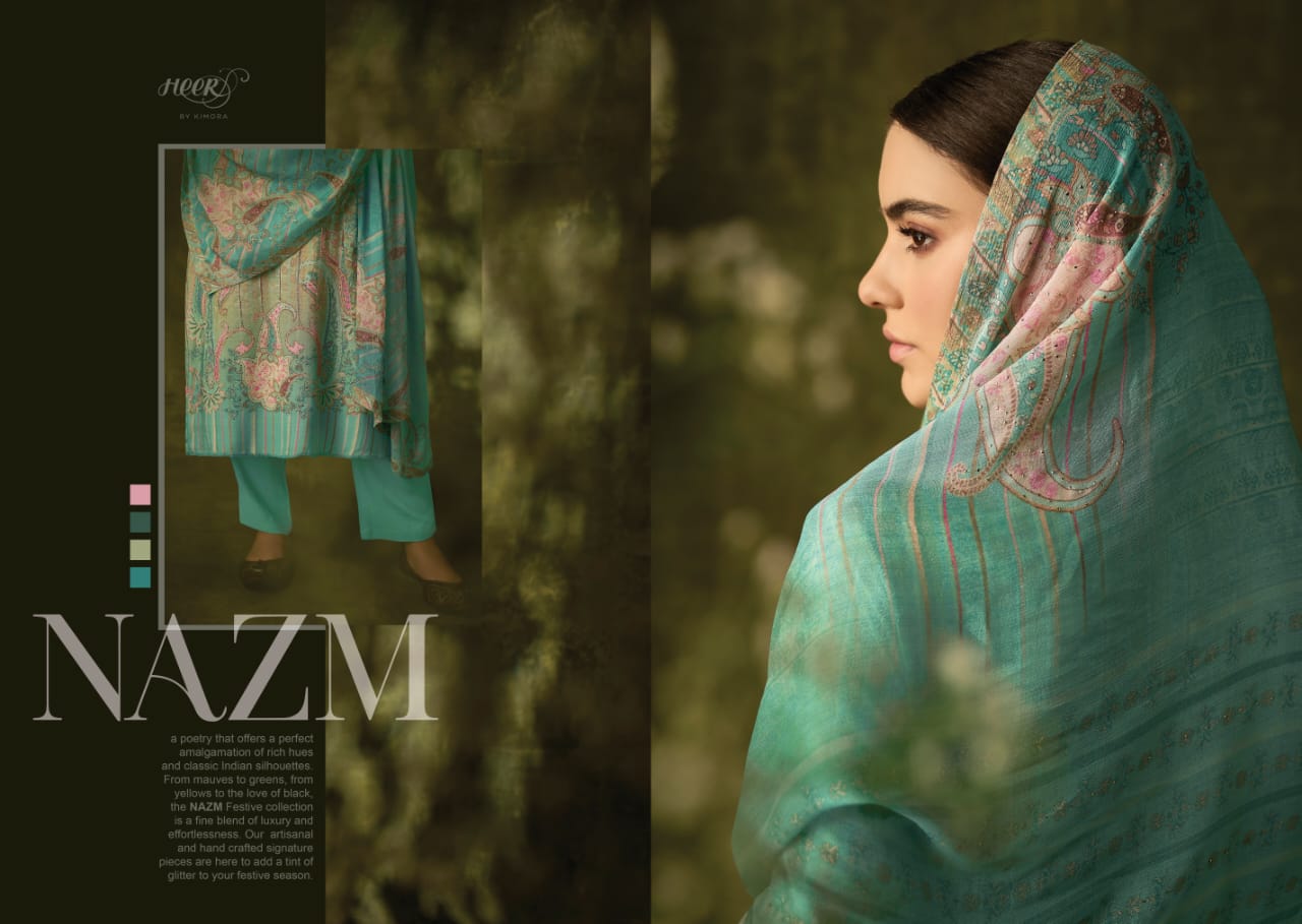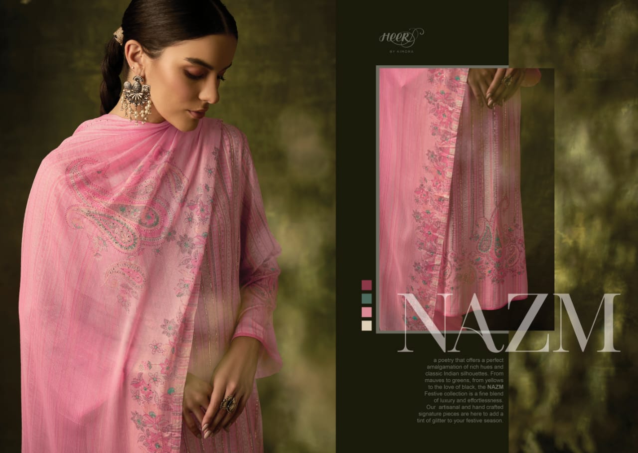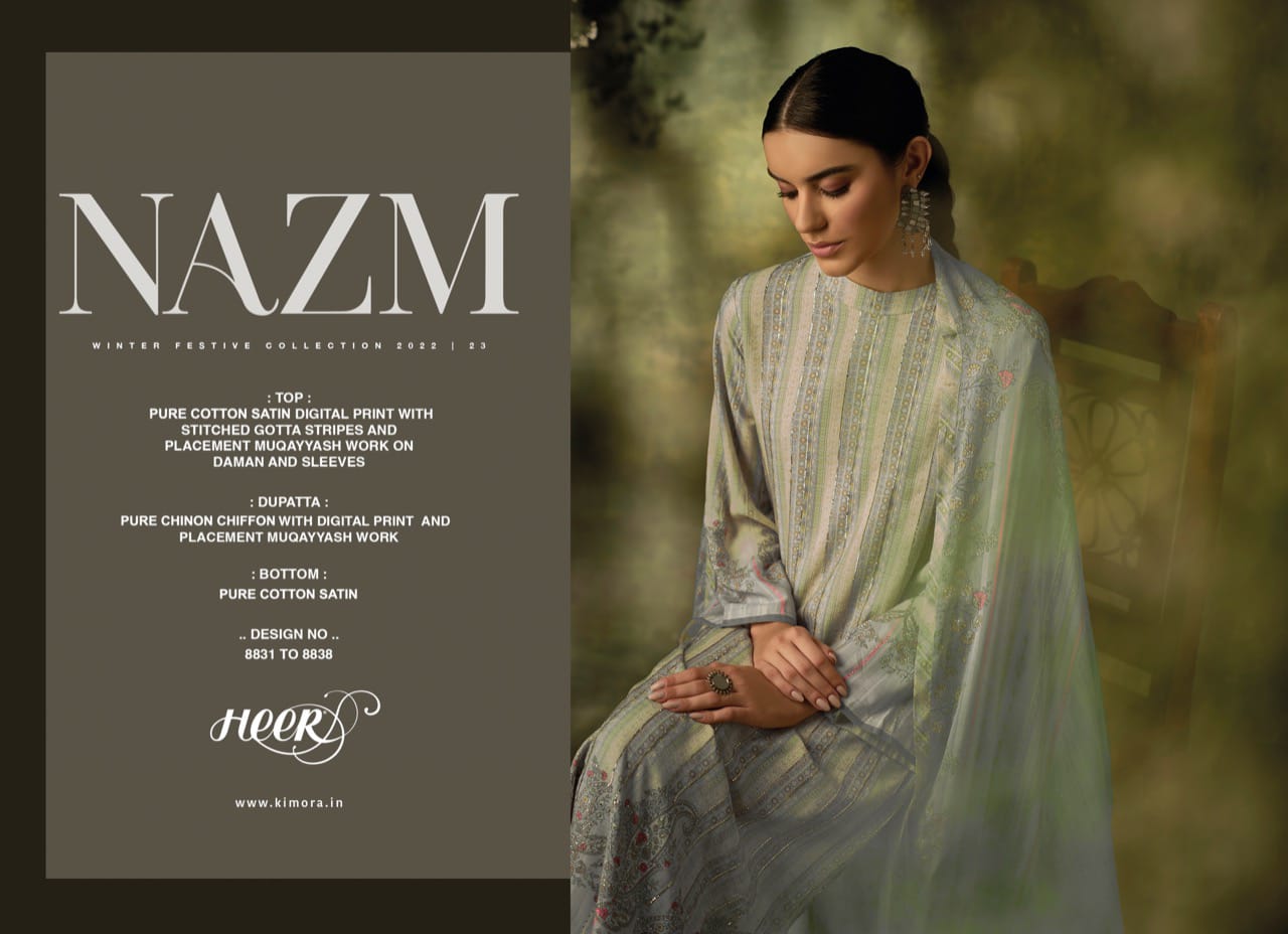 Buy Online Nazm By Heer Suit Wholesale 8 Pcs of Full Catalogue at Wholesale Price. Looking for Nazm By Heer Suit Wholesale Full Catalouge at Best Price? Buy Now Nazm By Heer Suit Wholesale at Wholesale Rate of Rs 15920 with Total 8 Pcs from authroized dealer and supplier of Brand. Cost of Each piece is just only Rs 1990 which is very low and affordable price to resale the product in your retail store ,This is Surat based Wholesale Supplier & Dealer of Brand. Click on Brand name to Know more about Brand's products.Call or Whatsapp on 9898838984 for booking or enquiry