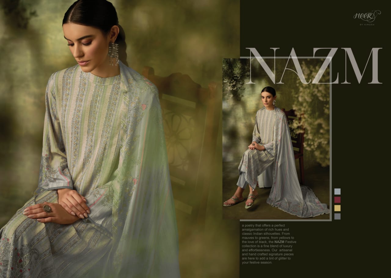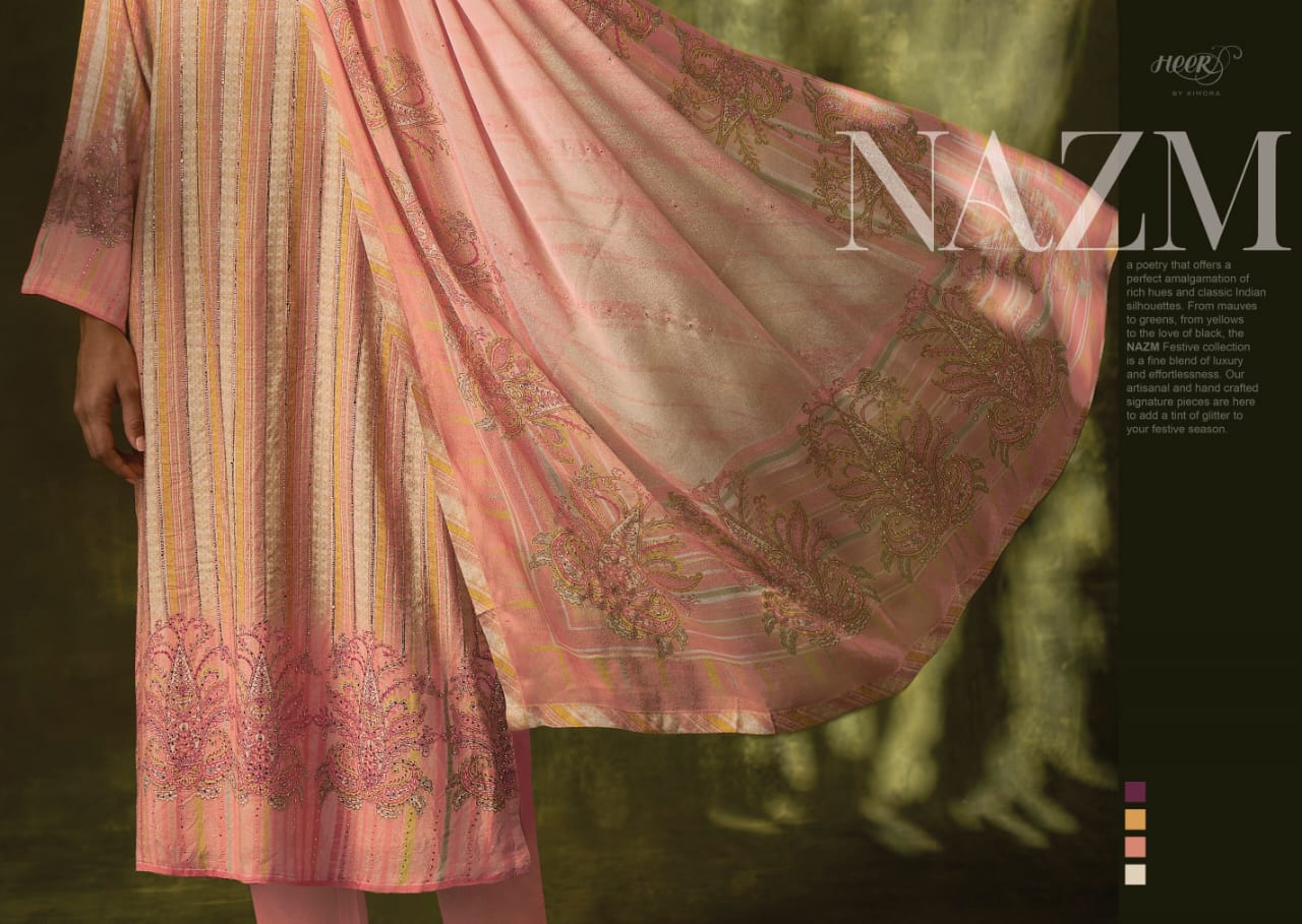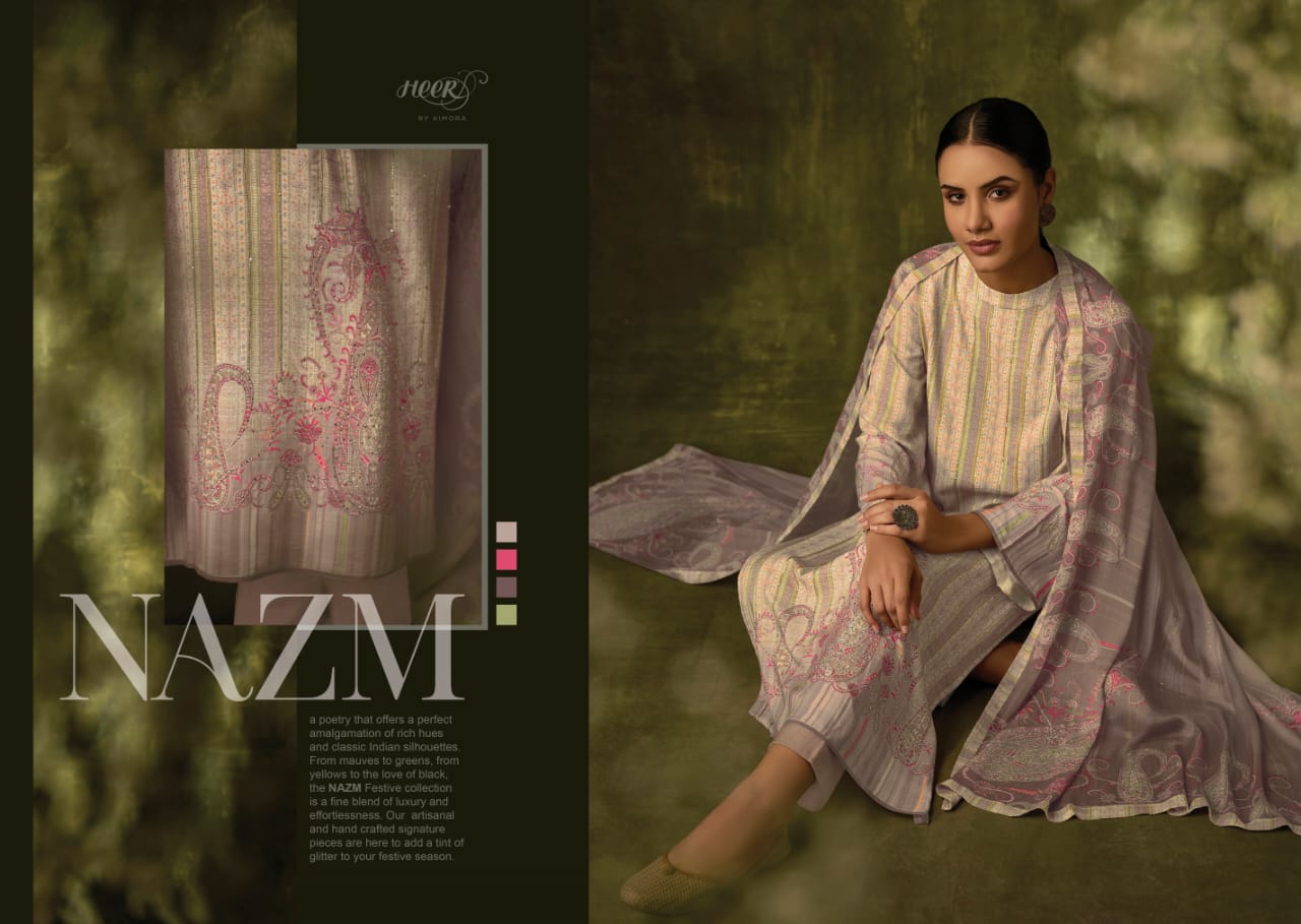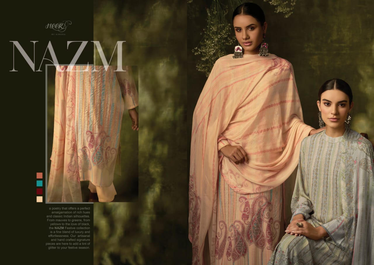Buy Online Nazm By Heer Suit Wholesale 8 Pcs of Full Catalogue at Wholesale Price. Looking for Nazm By Heer Suit Wholesale Full Catalouge at Best Price? Buy Now Nazm By Heer Suit Wholesale at Wholesale Rate of Rs 15920 with Total 8 Pcs from authroized dealer and supplier of Brand. Cost of Each piece is just only Rs 1990 which is very low and affordable price to resale the product in your retail store ,This is Surat based Wholesale Supplier & Dealer of Brand. Click on Brand name to Know more about Brand's products.Call or Whatsapp on 9898838984 for booking or enquiry