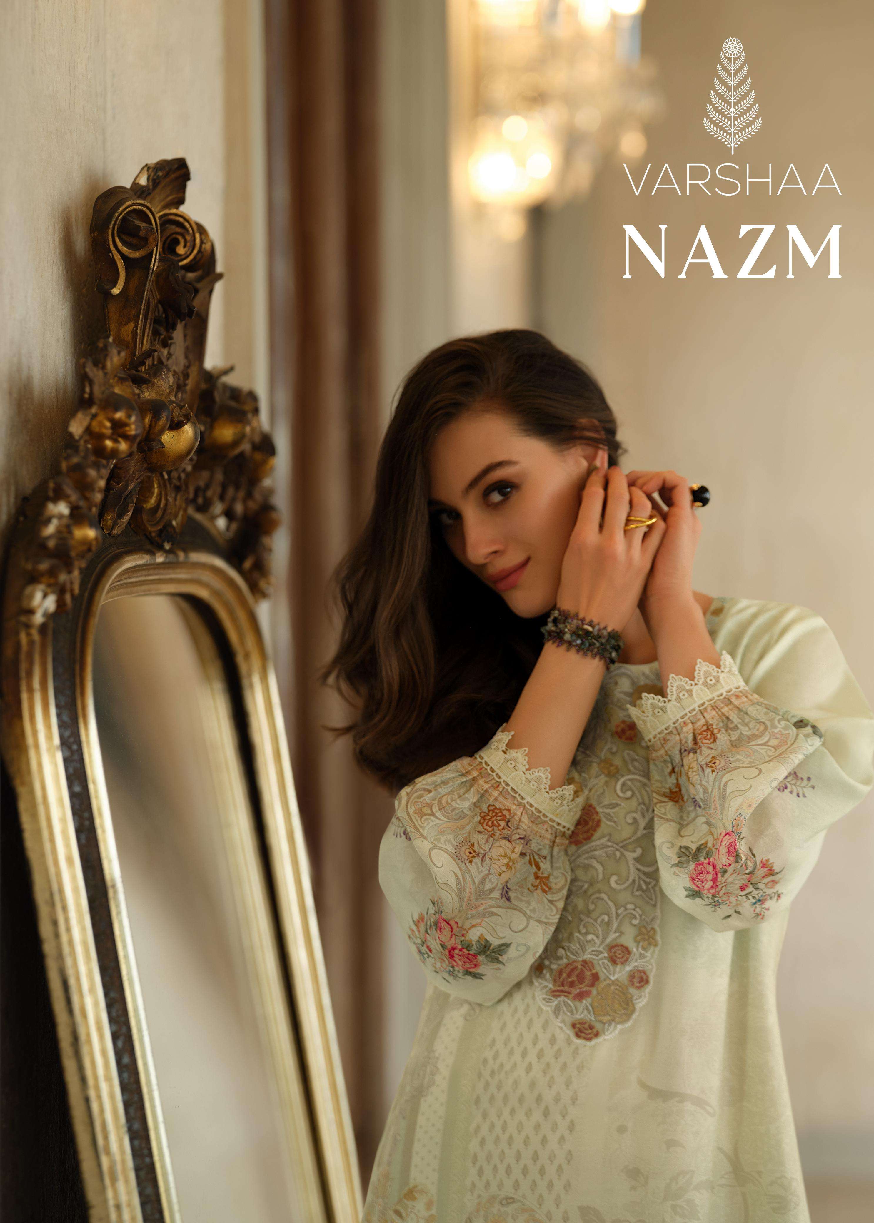 Buy Online Nazm by varshaa printed suit collection manufacturer surat 5 Pcs of Full Catalogue at Wholesale Price. Looking for Nazm by varshaa printed suit collection manufacturer surat Full Catalouge at Best Price? Buy Now Nazm by varshaa printed suit collection manufacturer surat at Wholesale Rate of Rs 10400 with Total 5 Pcs from authroized dealer and supplier of Varsha Brand. Cost of Each piece is just only Rs 2080 which is very low and affordable price to resale the product in your retail store ,This is Surat based Wholesale Supplier & Dealer of Varsha Brand. Click on Brand name to Know more about Varsha Brand's products.Call or Whatsapp on 9898838984 for booking or enquiry