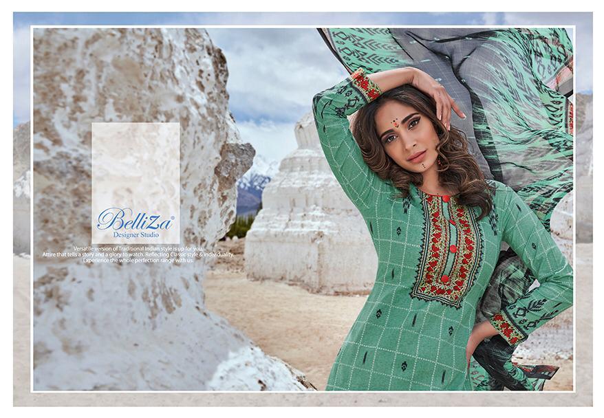 _*......BelliZa DesigNer StuDio......*_ _presents_ *Â?NAZRANAÂ?* _...Summer Ladakh Edition..._ ?Top: 100% Pure Premium Cotton Digital style Print (2.50 mtrs) ?Dupatta: Exclusive Printed chiffon dupatta with four side lace. (2.30 mtr) ?Bottom: pure cotton salwar (3 mtrs) ?Pcs: 10 ?Selling Rate: 449/- (Applicable GST extra) |