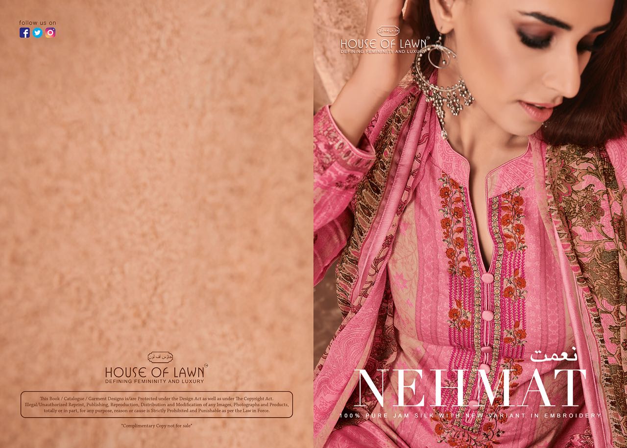 Buy Online Nehmat By House Of Lawn 101 Series Pure Jam Silk Digital Printed Salwar Kameez Catlog Wholesaler Surat 10 Pcs of Full Catalogue at Wholesale Price. Looking for Nehmat By House Of Lawn 101 Series Pure Jam Silk Digital Printed Salwar Kameez Catlog Wholesaler Surat Full Catalouge at Best Price? Buy Now Nehmat By House Of Lawn 101 Series Pure Jam Silk Digital Printed Salwar Kameez Catlog Wholesaler Surat at Wholesale Rate of Rs 6750 with Total 10 Pcs from authroized dealer and supplier of HOUSE OF LAWN Brand. Cost of Each piece is just only Rs 675 which is very low and affordable price to resale the product in your retail store ,This is Surat based Wholesale Supplier & Dealer of HOUSE OF LAWN Brand. Click on Brand name to Know more about HOUSE OF LAWN Brand's products.Call or Whatsapp on 9898838984 for booking or enquiry