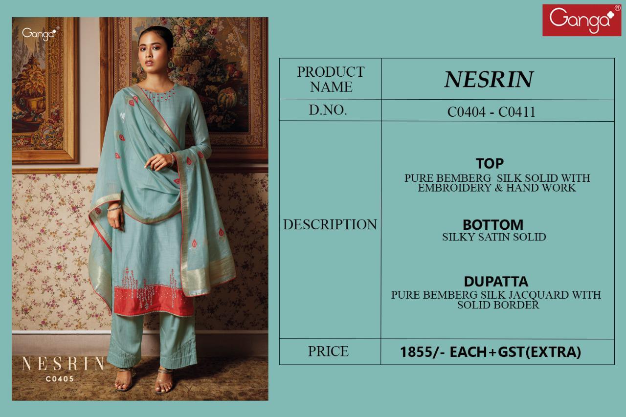 Buy Online Nesrin By Ganga Manufacturer Traders Surat 8 Pcs of Full Catalogue at Wholesale Price. Looking for Nesrin By Ganga Manufacturer Traders Surat Full Catalouge at Best Price? Buy Now Nesrin By Ganga Manufacturer Traders Surat at Wholesale Rate of Rs 14840 with Total 8 Pcs from authroized dealer and supplier of GANGA Brand. Cost of Each piece is just only Rs 1855 which is very low and affordable price to resale the product in your retail store ,This is Surat based Wholesale Supplier & Dealer of GANGA Brand. Click on Brand name to Know more about GANGA Brand's products.Call or Whatsapp on 9898838984 for booking or enquiry