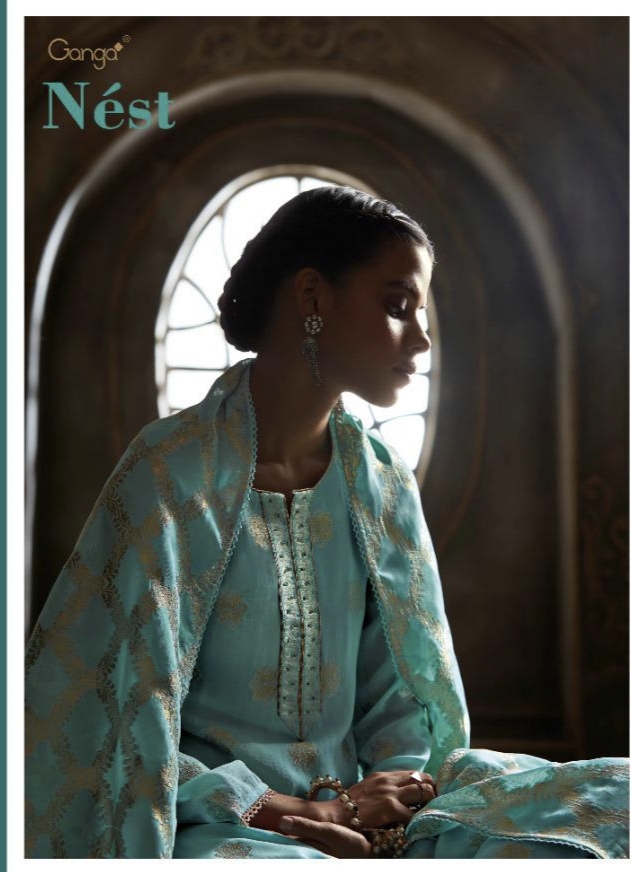*GANGA* *NEST* *TOP-PREMIUM GEORGET JACQUARD WITH HAND WORK* *BOTTOM-HEAVY BEMBERG SILK* *DUPATTA-PREMIUM GEORGET JACQUARD WITH COTTON LACE* SET TO SET DELIVERY 2 DAYS 5%GST |