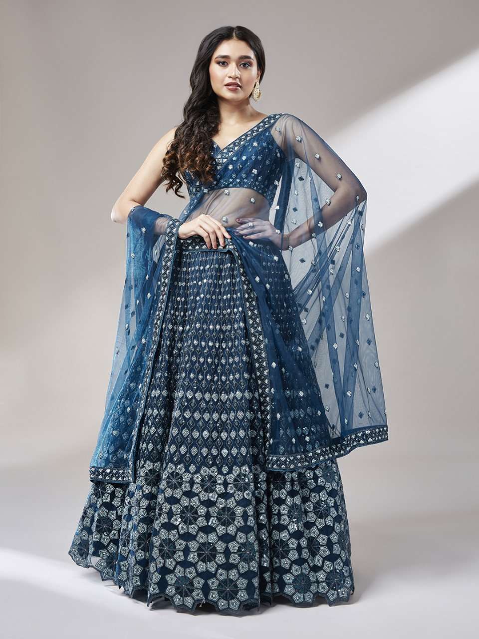 | Catalog | Net heavy Sequinse embroidery Semi-Stitched Lehenga choli & Dupatta |
