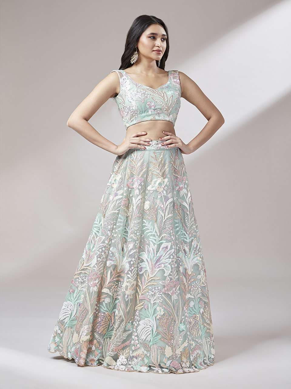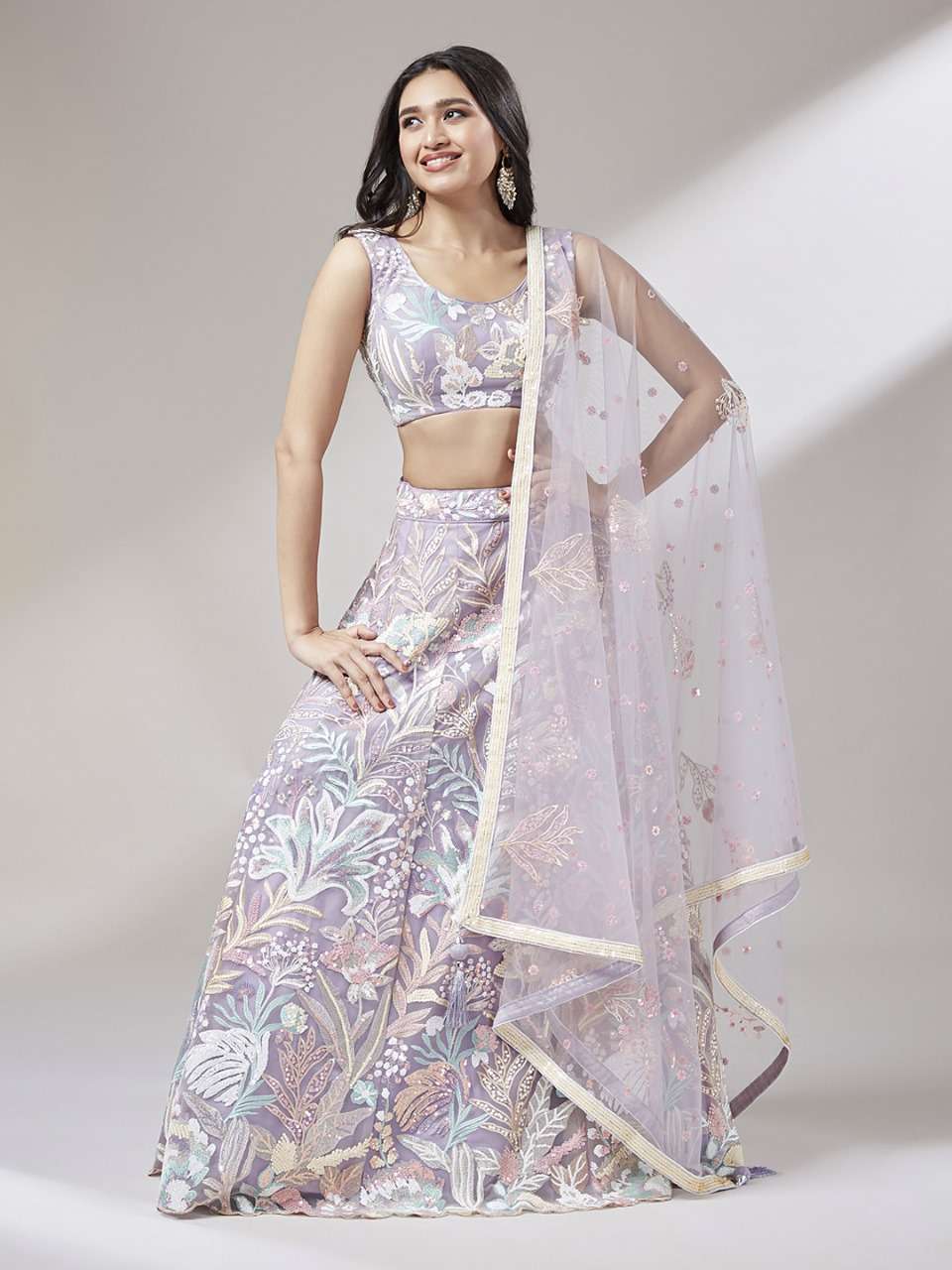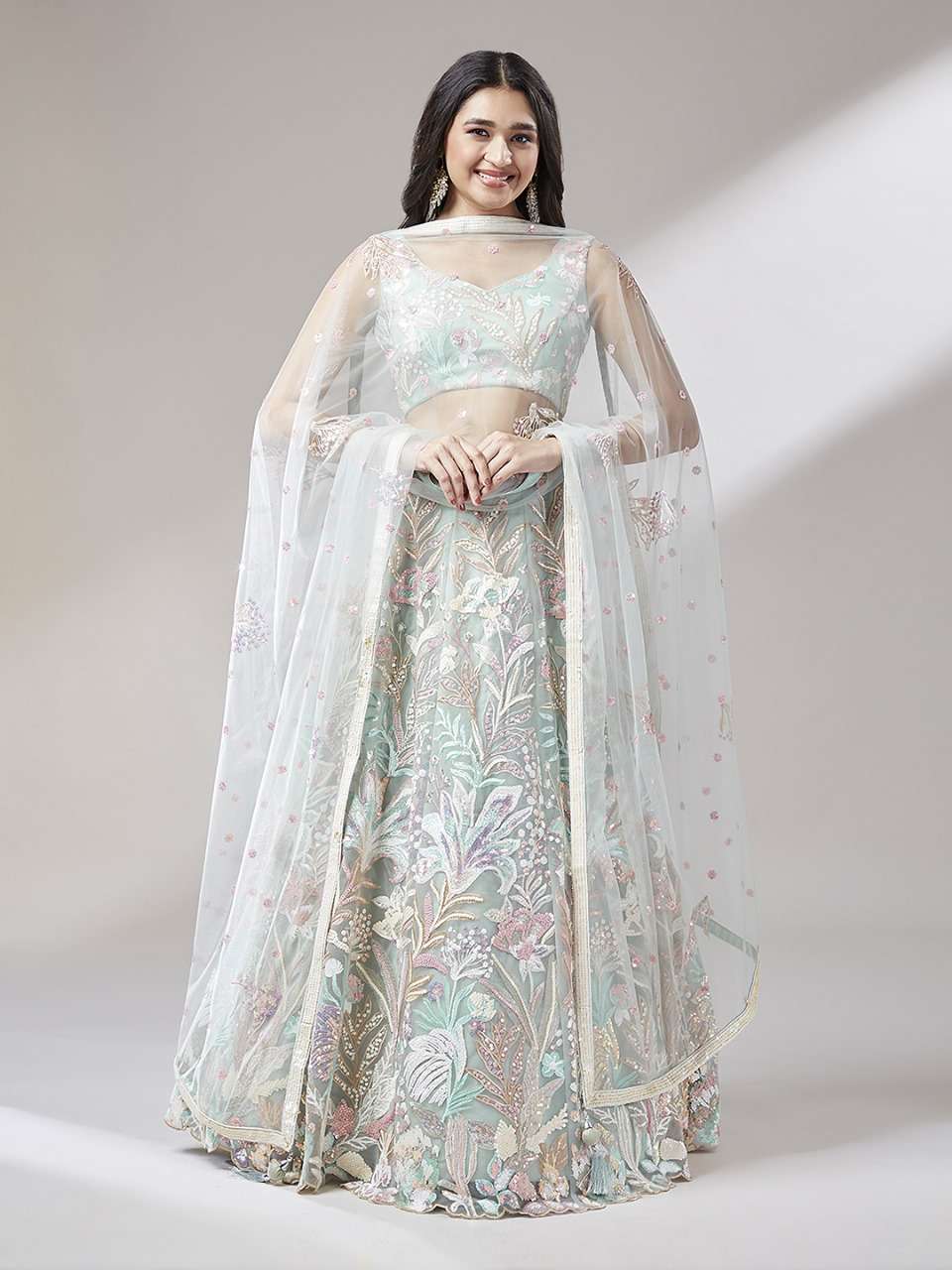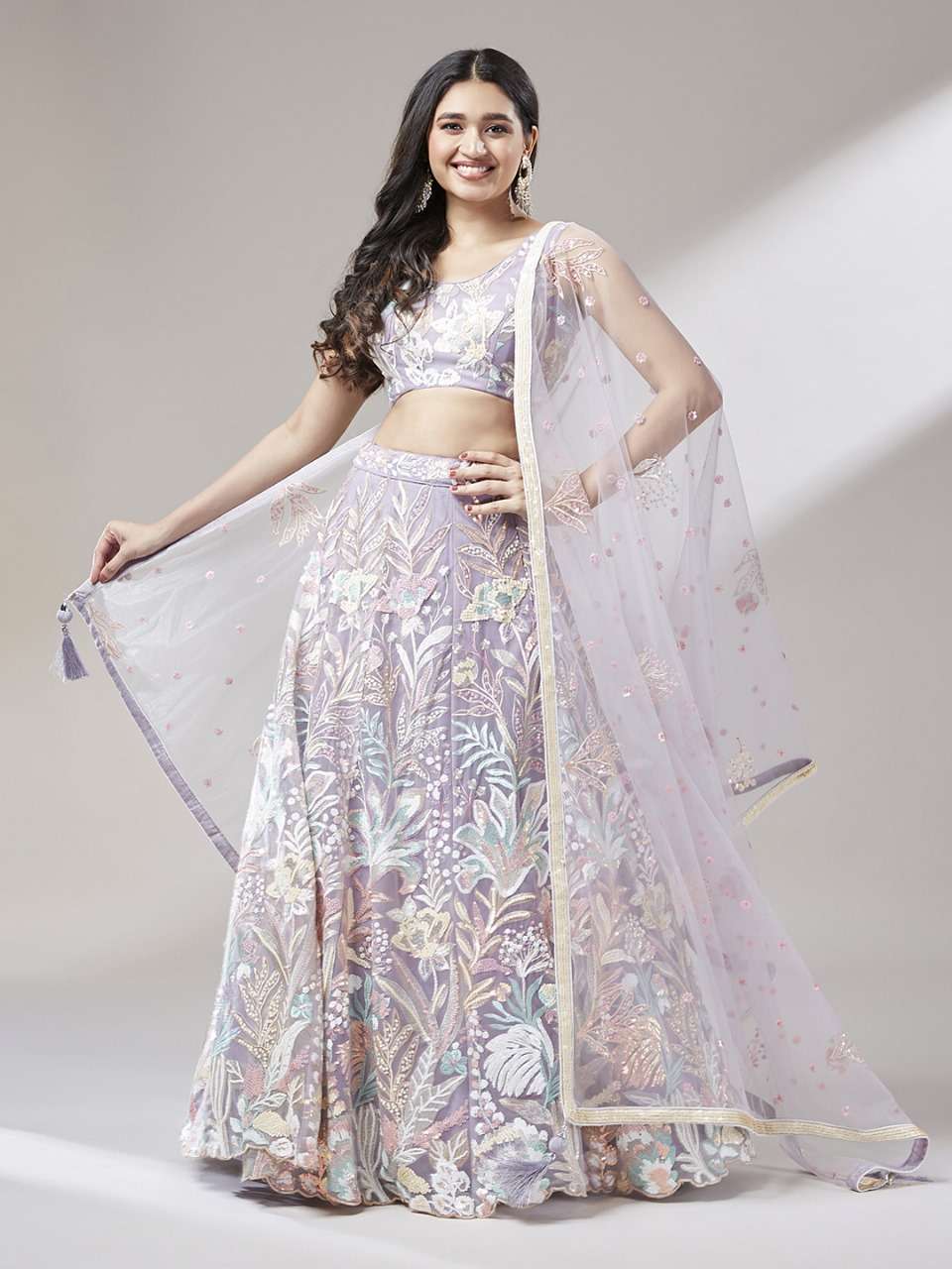 NET SEQUENCE WORK SEMI STITCHED LEHENGA WEDDING COLLECTION MANUFACTURER SURAT