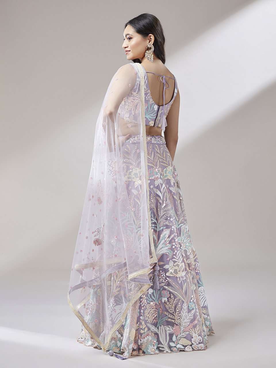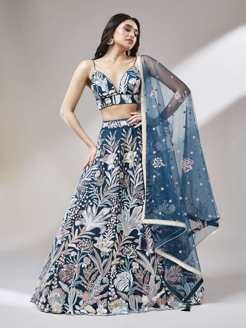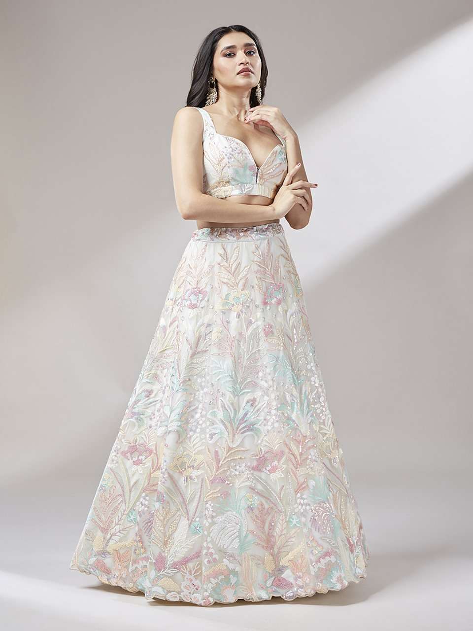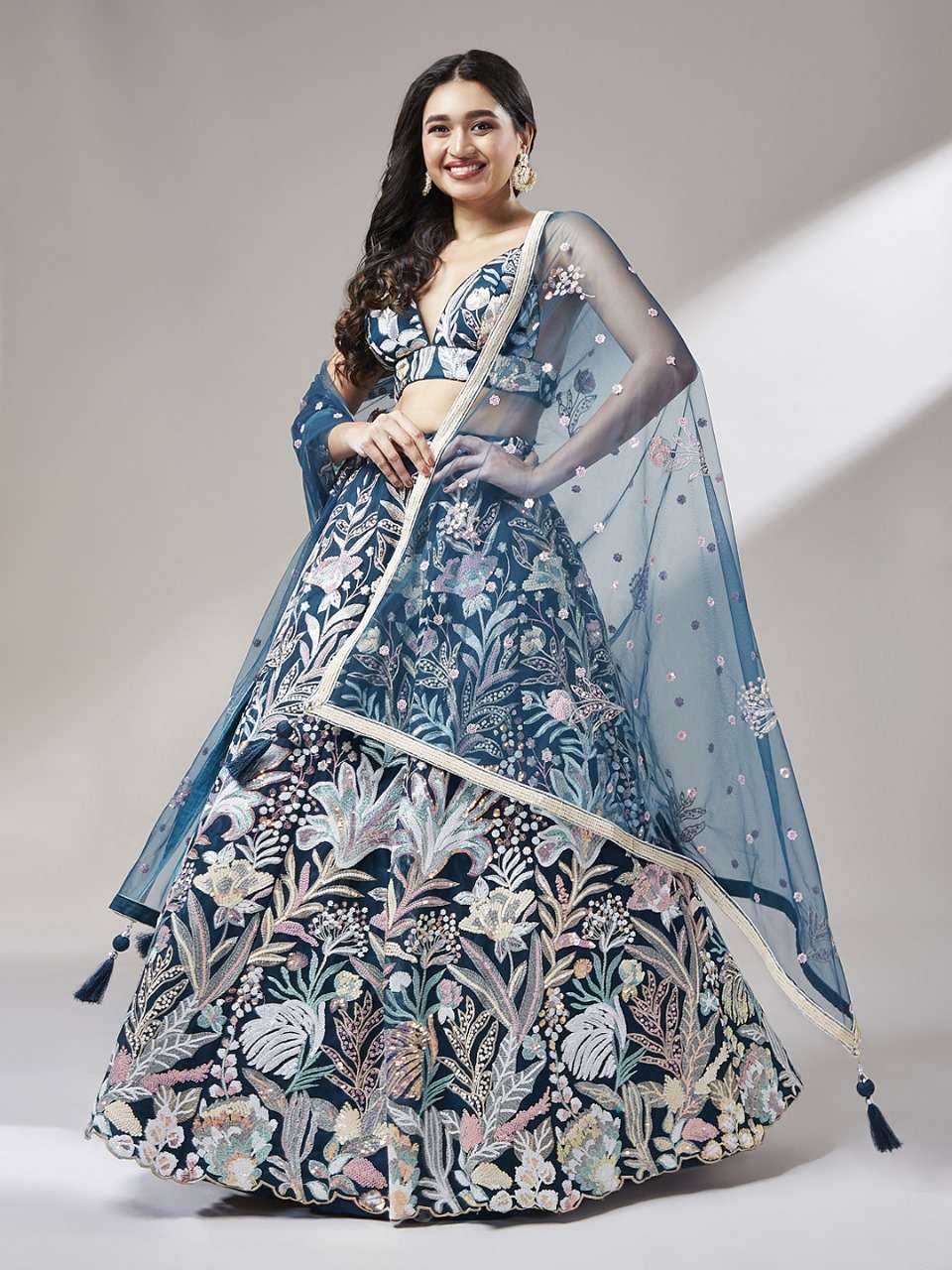 NET SEQUENCE WORK SEMI STITCHED LEHENGA WEDDING COLLECTION MANUFACTURER SURAT