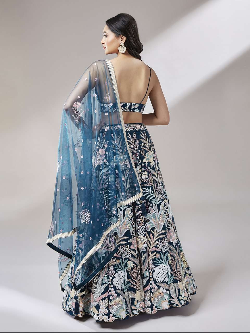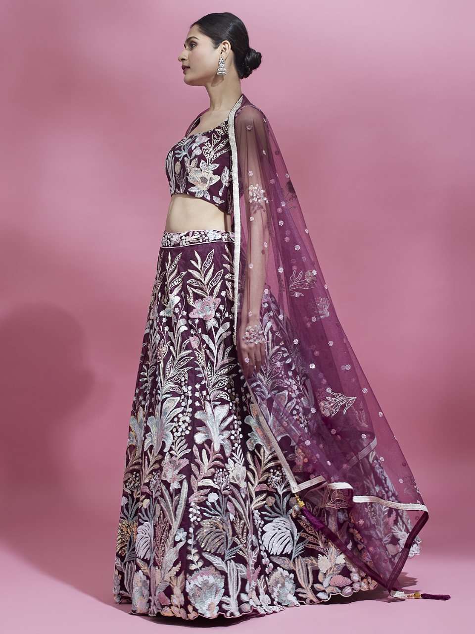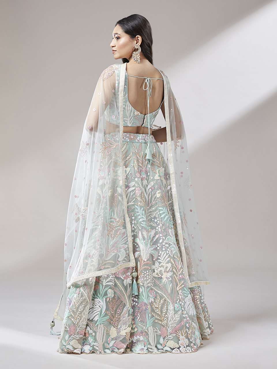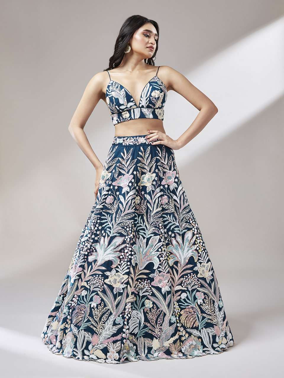 NET SEQUENCE WORK SEMI STITCHED LEHENGA WEDDING COLLECTION MANUFACTURER SURAT