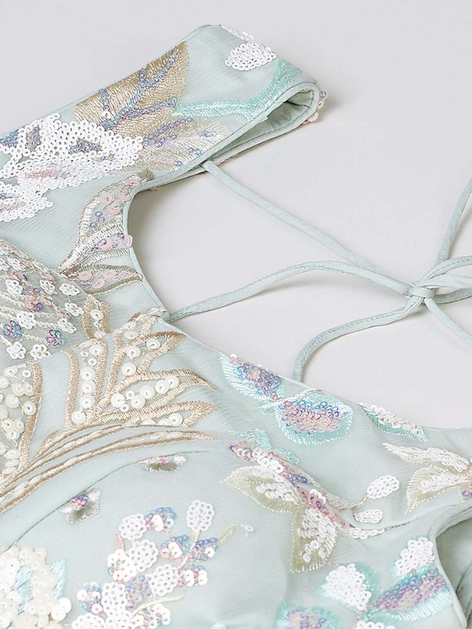 Net Sequinse Work Semi-Stitched Lehenga & Unstitched Blouse with Dupatta