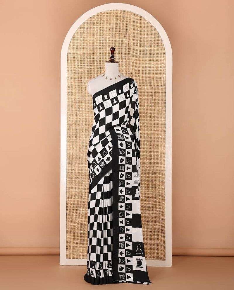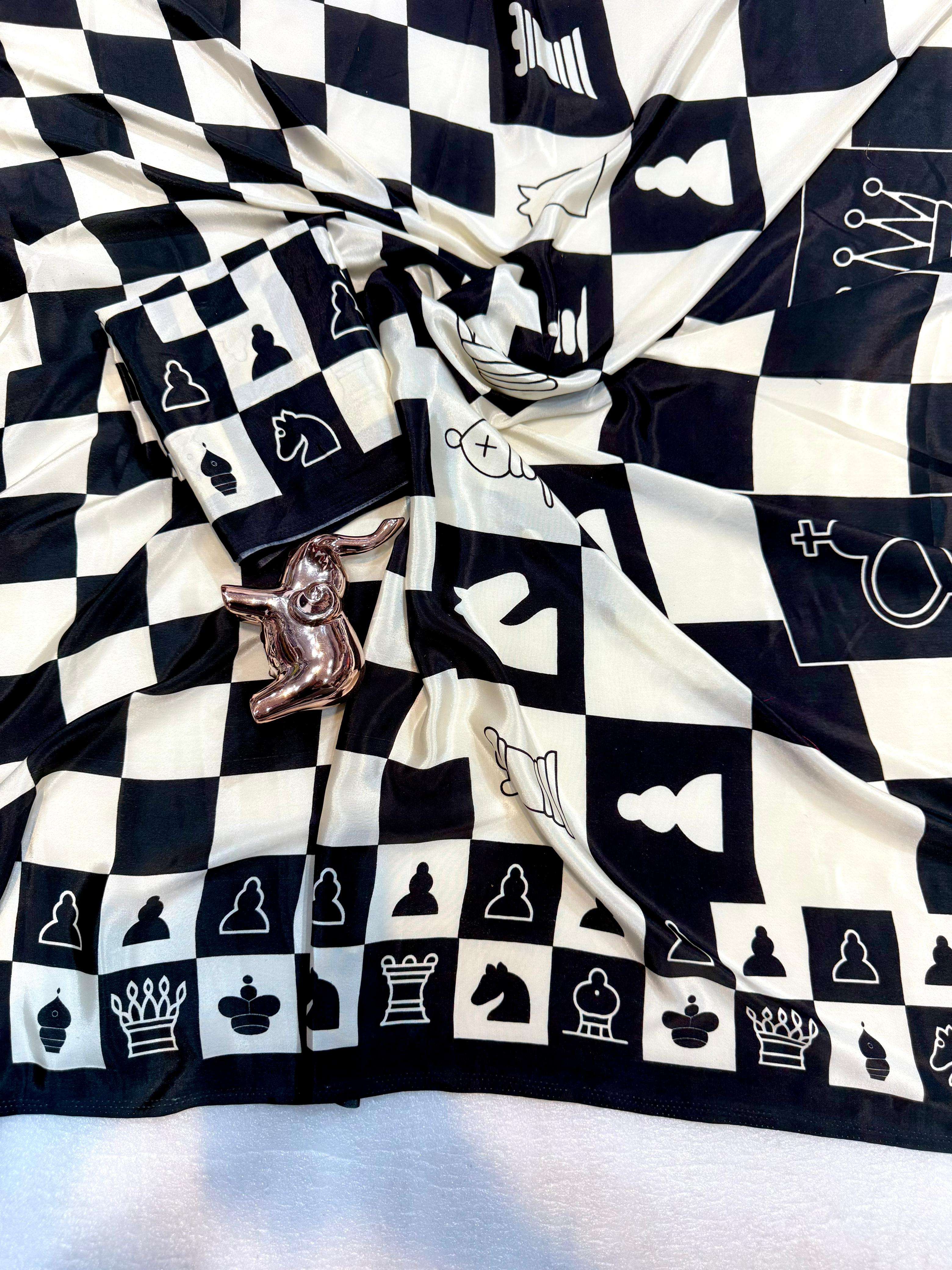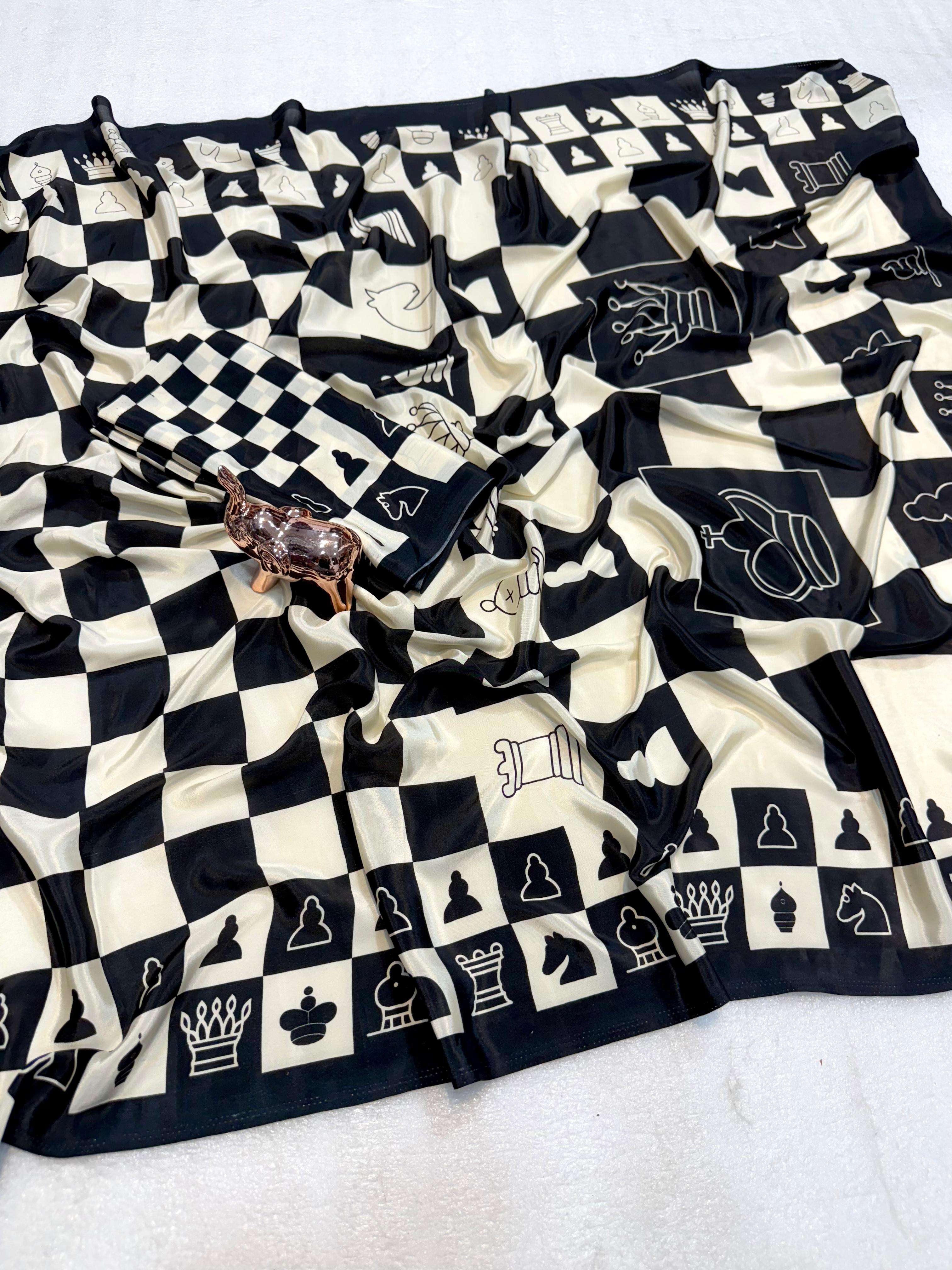 New Arrival Designer Saree – Chess Catalogue in Pure Crepe Satin
