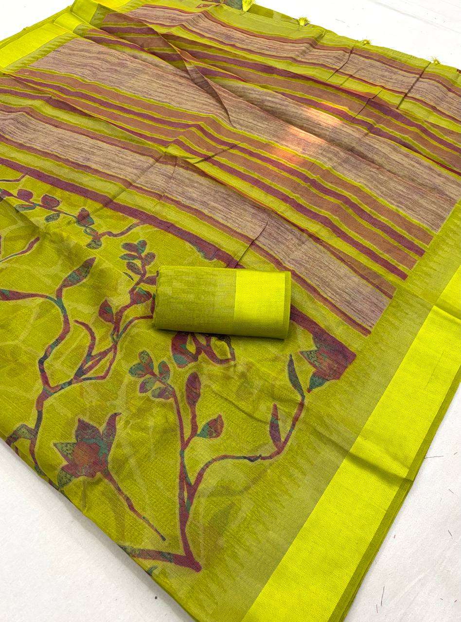 Launching our Exclusive Linen Brasso Saree collection 🎉 Crafted from Luxurious Linen Cotton Silk, this saree features stunning allover Brasso print, a rich Satin Jari border, and a beautifully designed classic printed pallu paired with a stylish contrast printed blouse 💖 A perfect blend of elegance and trend, making it ideal for parties, festive wear, and special occasions. 🌟 100% Fine & First Quality 🚚 Ready to Dispatch |