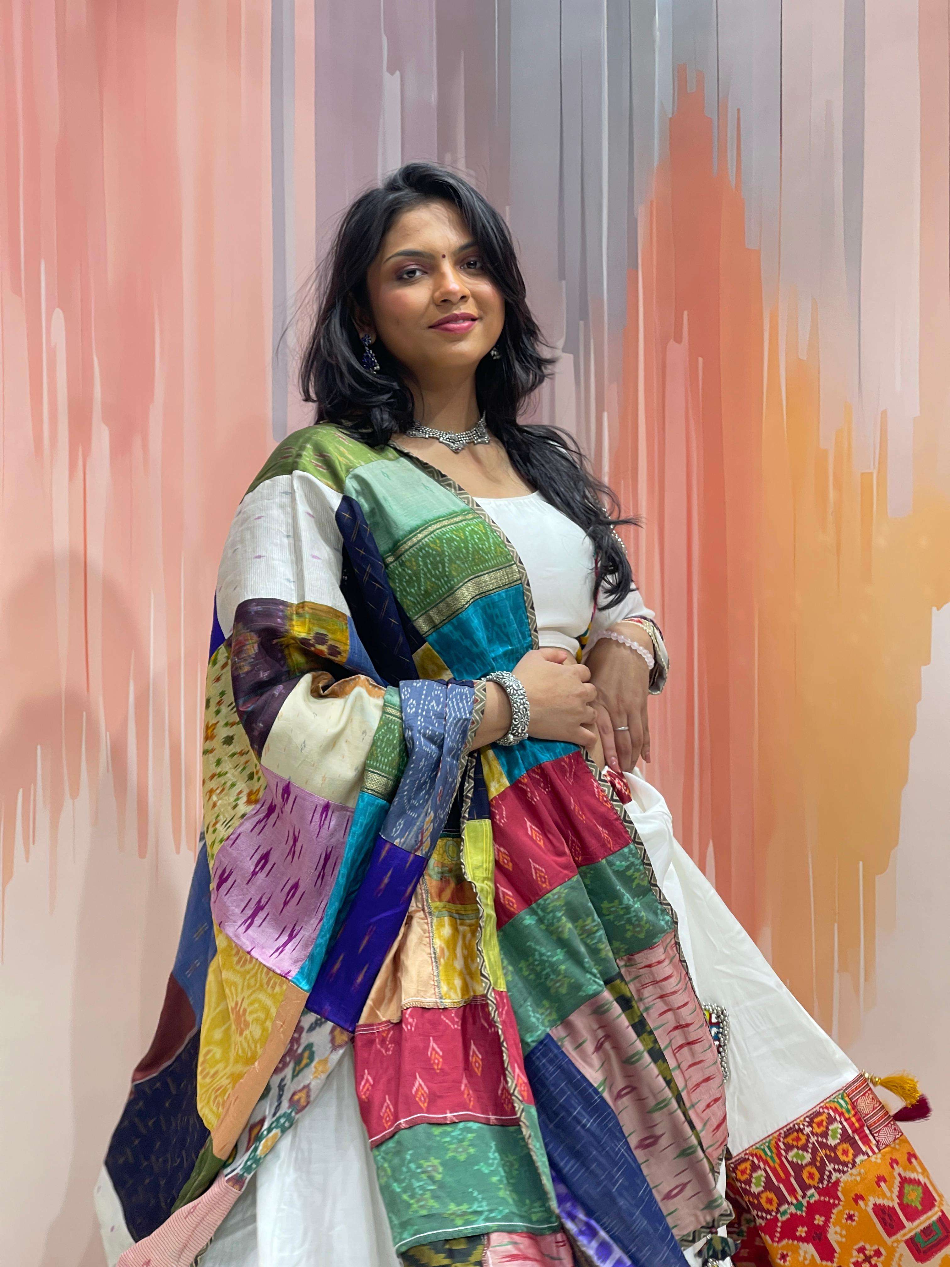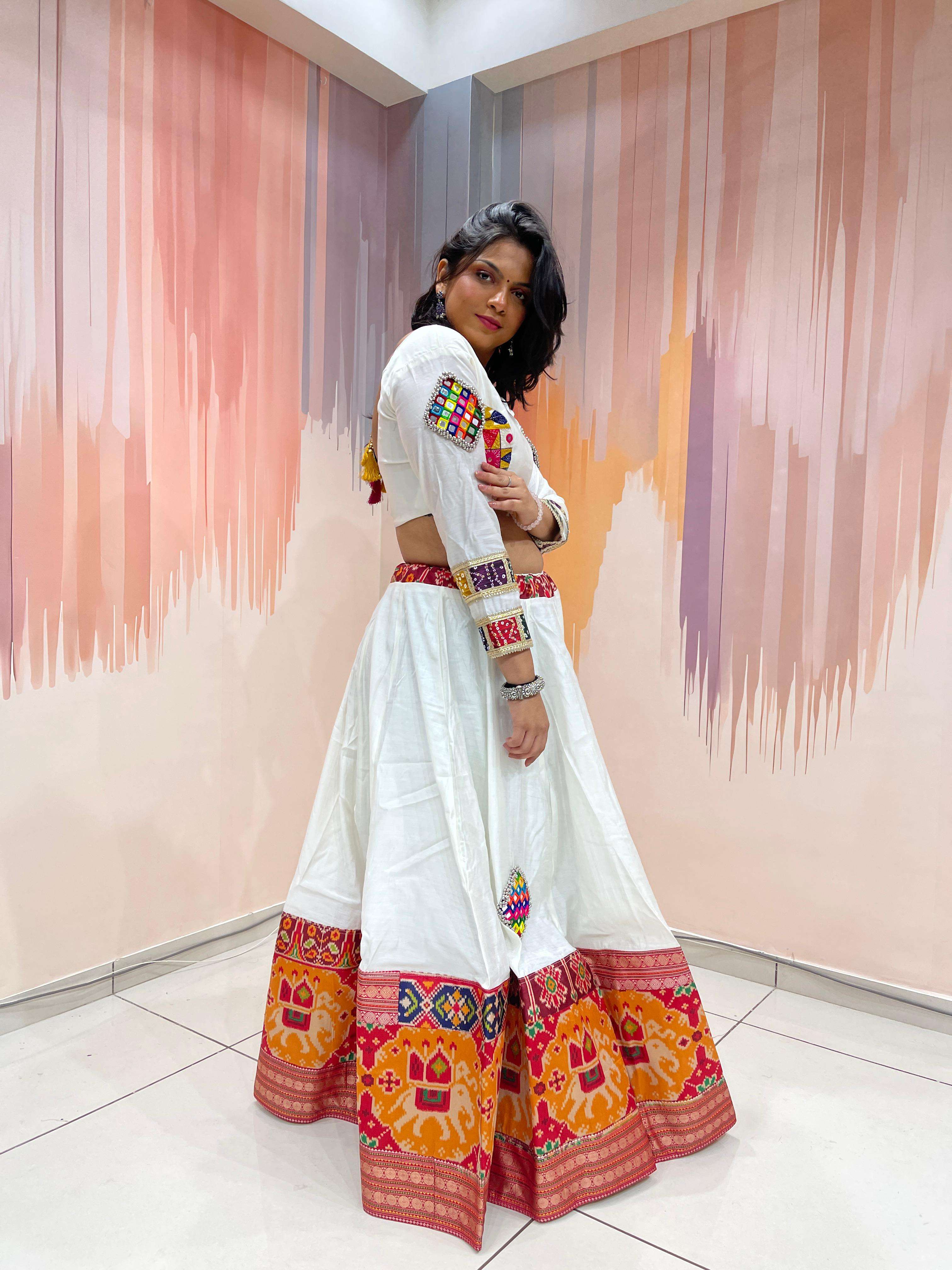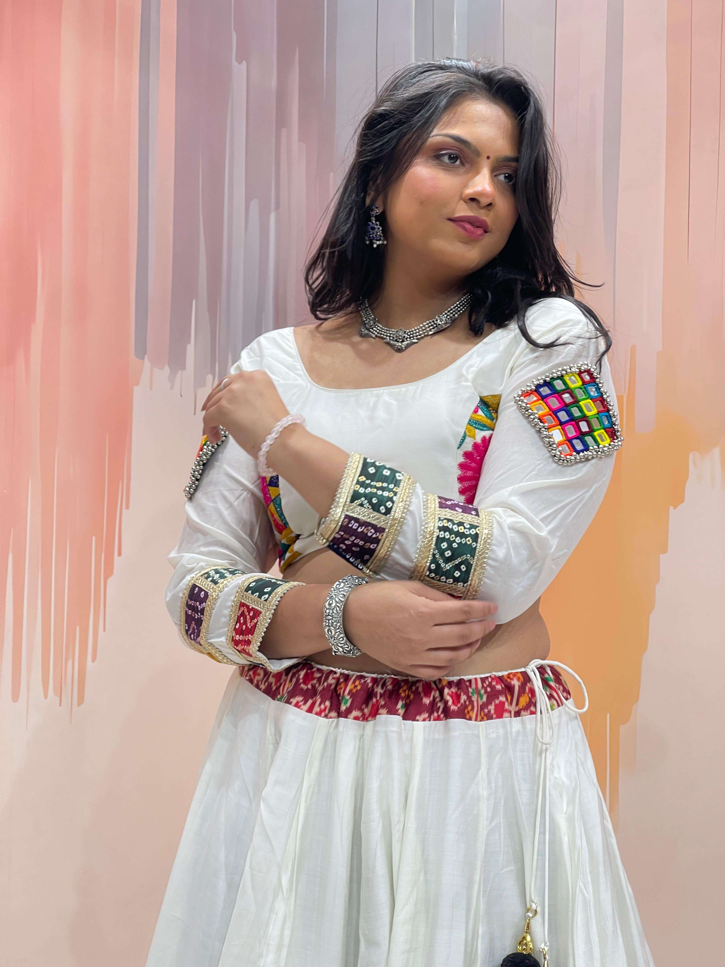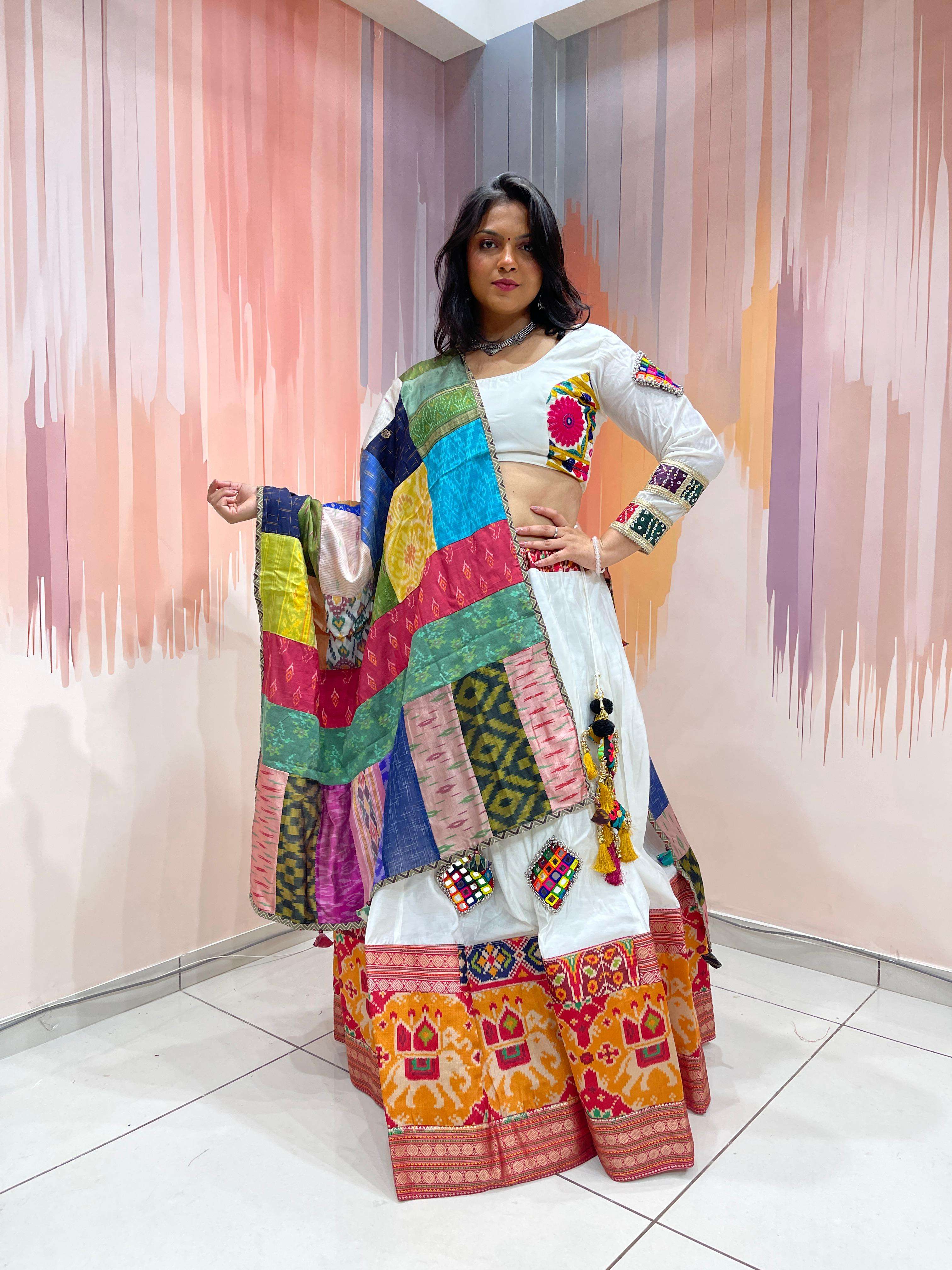 *Simple & Sober Handloom Bombay Silk Full Long Sleeves Mirror 🪞 Work Chaniya choli with Colourfull Vibrant Dupatta Designer Outfit*