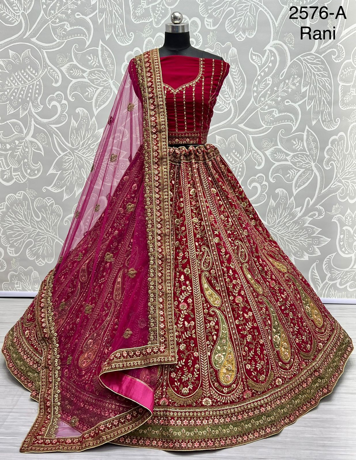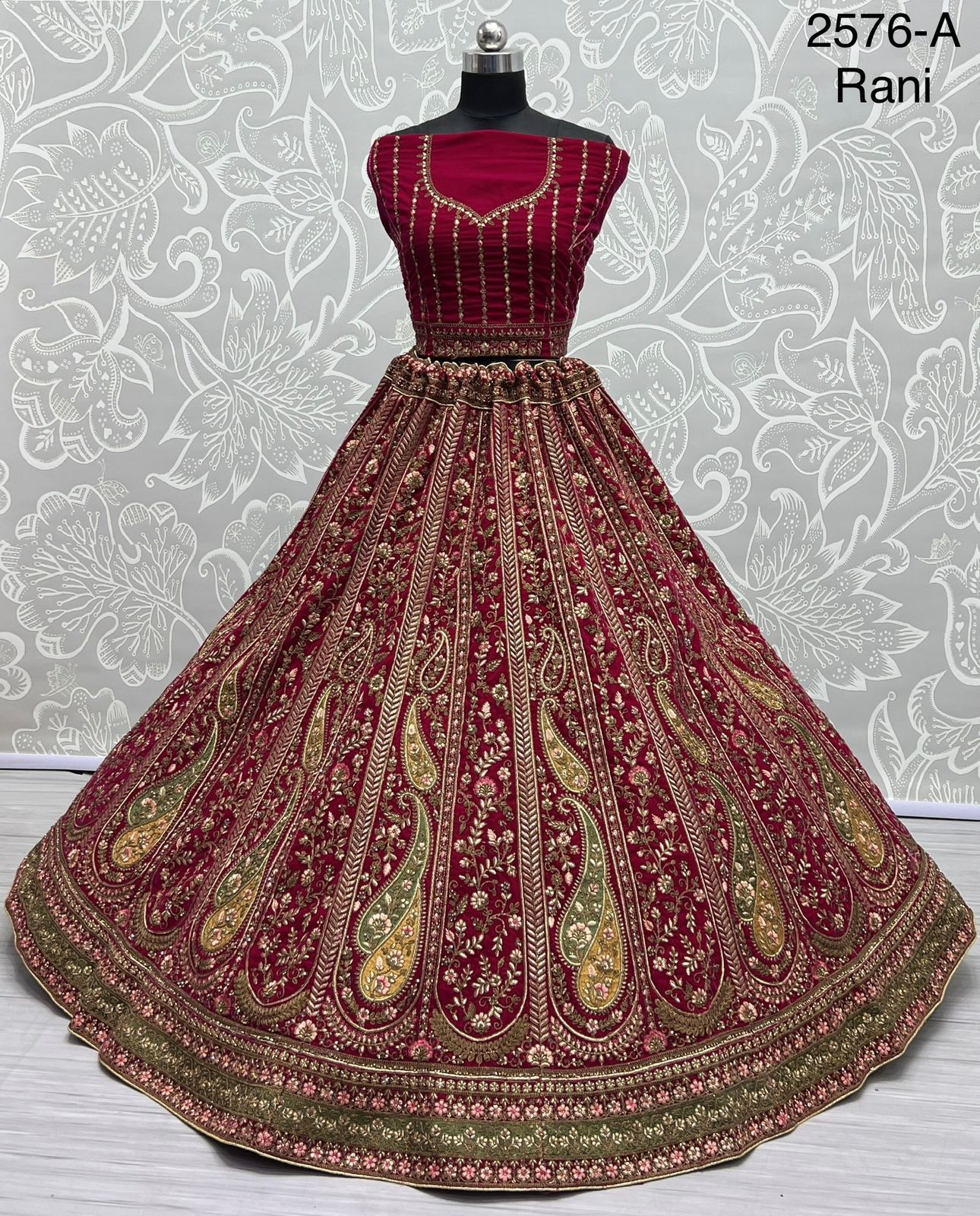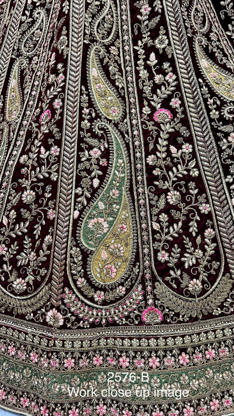 New Design 2576 Heavy Embroidery With Patch Work Velvet Lehengacholi