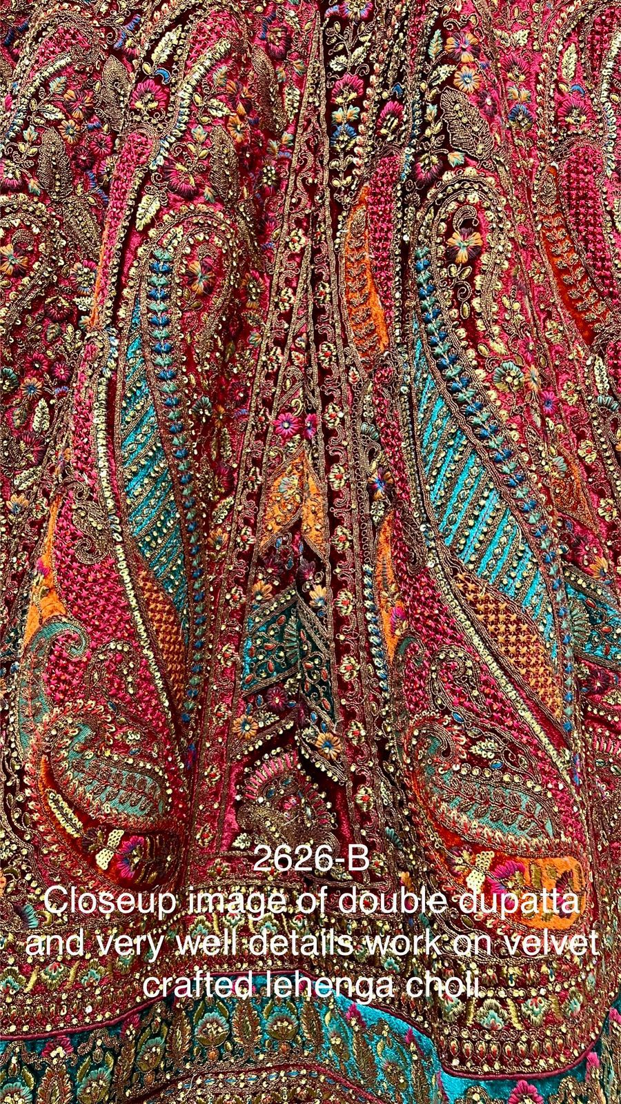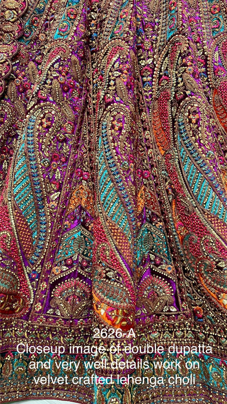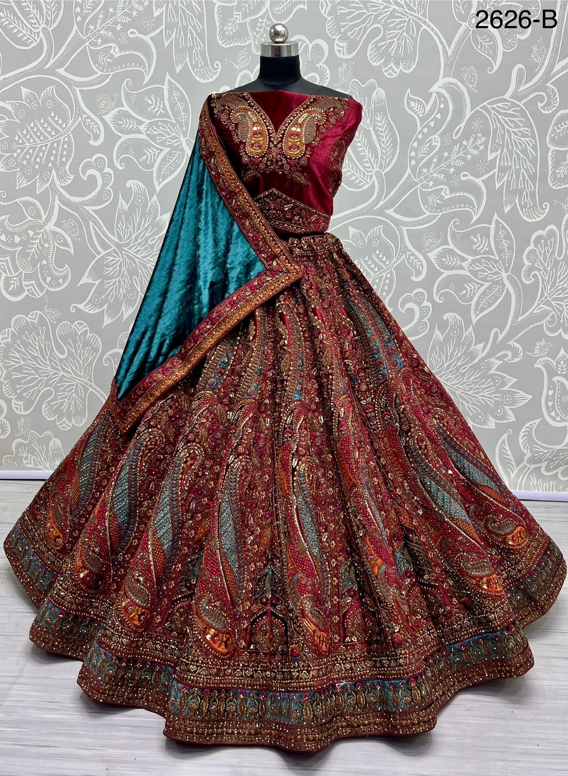 New Design 2626 Delegate Designed Embroidered Extraordinary Bridal Velvet Lehengacholi