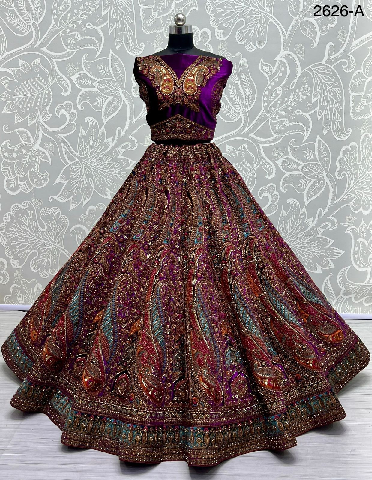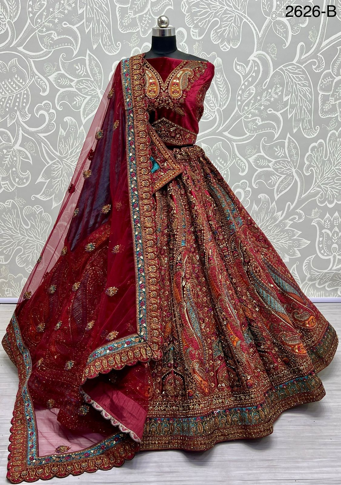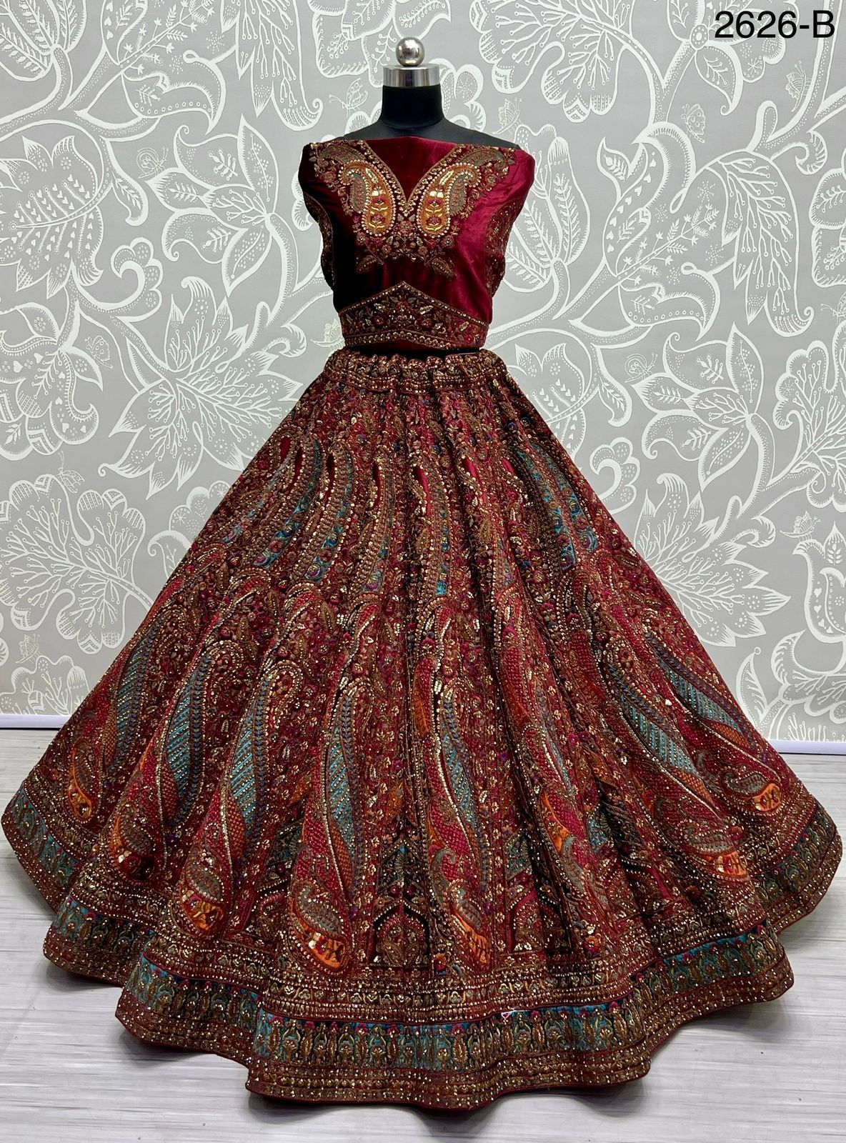 New Design 2626 Delegate Designed Embroidered Extraordinary Bridal Velvet Lehengacholi