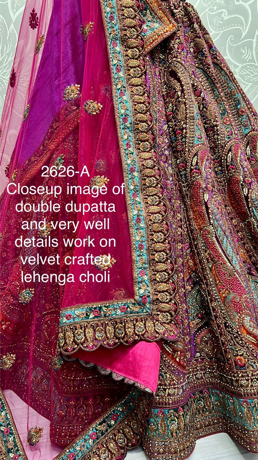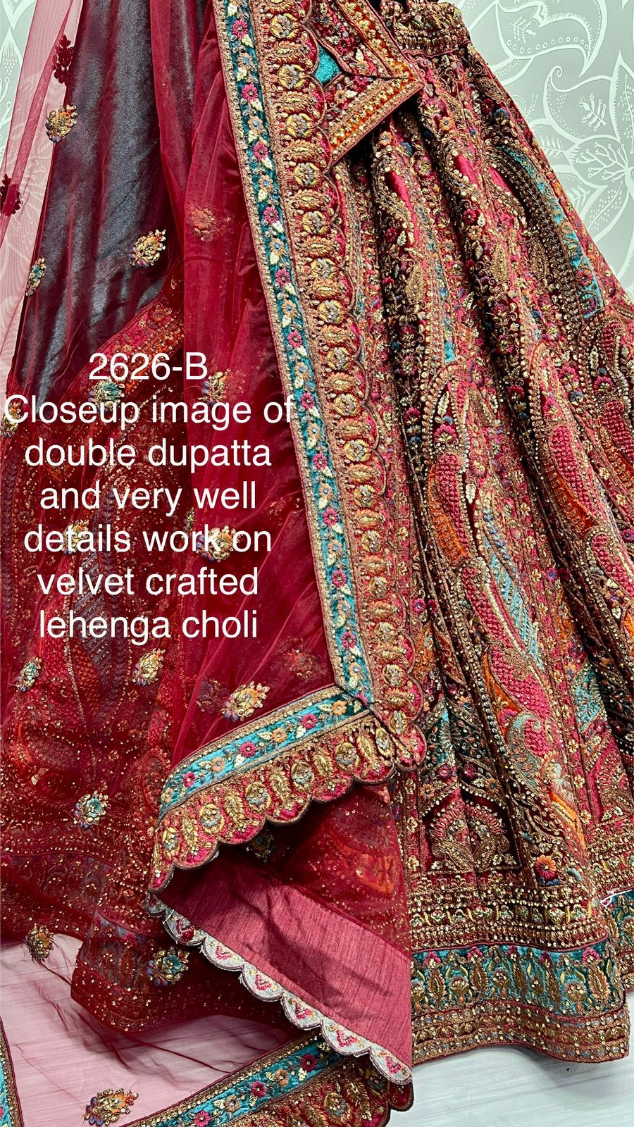 Buy Online New Design 2626 Delegate Designed Embroidered Extraordinary Bridal Velvet Lehengacholi 2 Pcs of Full Catalogue at Wholesale Price. Looking for New Design 2626 Delegate Designed Embroidered Extraordinary Bridal Velvet Lehengacholi Full Catalouge at Best Price? Buy Now New Design 2626 Delegate Designed Embroidered Extraordinary Bridal Velvet Lehengacholi at Wholesale Rate of Rs 39998 with Total 2 Pcs from authroized dealer and supplier of Brand. Cost of Each piece is just only Rs 19999 which is very low and affordable price to resale the product in your retail store ,This is Surat based Wholesale Supplier & Dealer of Brand. Click on Brand name to Know more about Brand's products.Call or Whatsapp on 9898838984 for booking or enquiry