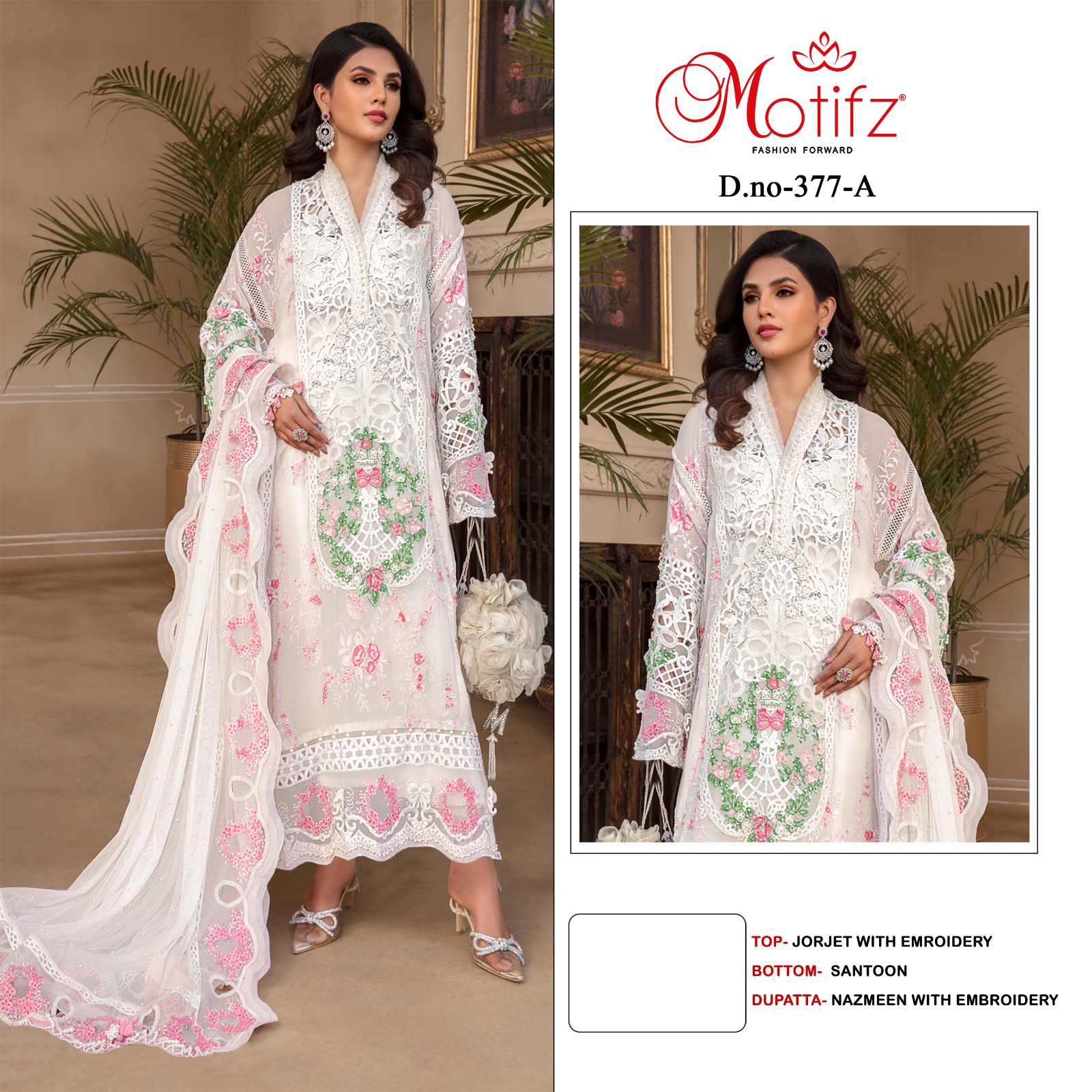 Buy Online New Design 377a By Motifz 5 Pcs of Full Catalogue at Wholesale Price. Looking for New Design 377a By Motifz Full Catalouge at Best Price? Buy Now New Design 377a By Motifz at Wholesale Rate of Rs 6250 with Total 5 Pcs from authroized dealer and supplier of Brand. Cost of Each piece is just only Rs 1250 which is very low and affordable price to resale the product in your retail store ,This is Surat based Wholesale Supplier & Dealer of Brand. Click on Brand name to Know more about Brand's products.Call or Whatsapp on 9898838984 for booking or enquiry