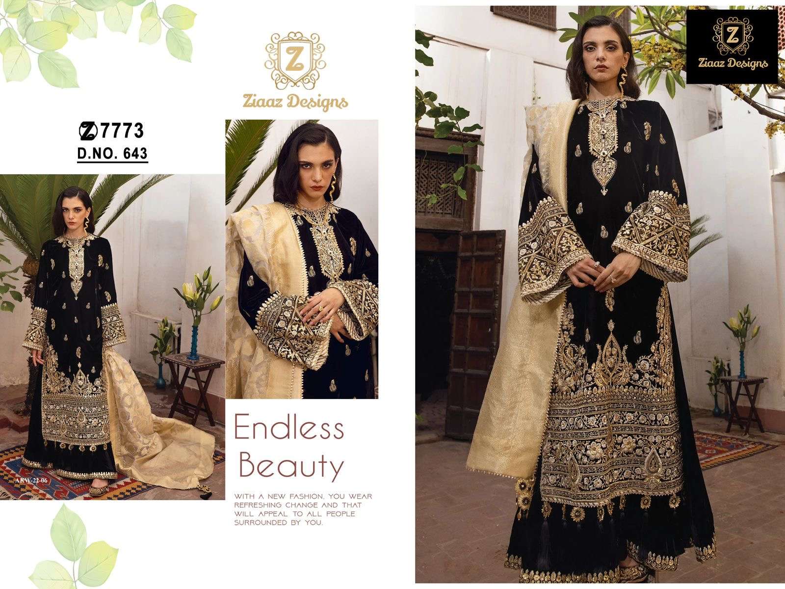 Buy Online New design 643 by ziaaz designs velvet eid collection 4 Pcs of Full Catalogue at Wholesale Price. Looking for New design 643 by ziaaz designs velvet eid collection Full Catalouge at Best Price? Buy Now New design 643 by ziaaz designs velvet eid collection at Wholesale Rate of Rs 5960 with Total 4 Pcs from authroized dealer and supplier of ZIAAZ Brand. Cost of Each piece is just only Rs 1490 which is very low and affordable price to resale the product in your retail store ,This is Surat based Wholesale Supplier & Dealer of ZIAAZ Brand. Click on Brand name to Know more about ZIAAZ Brand's products.Call or Whatsapp on 9898838984 for booking or enquiry