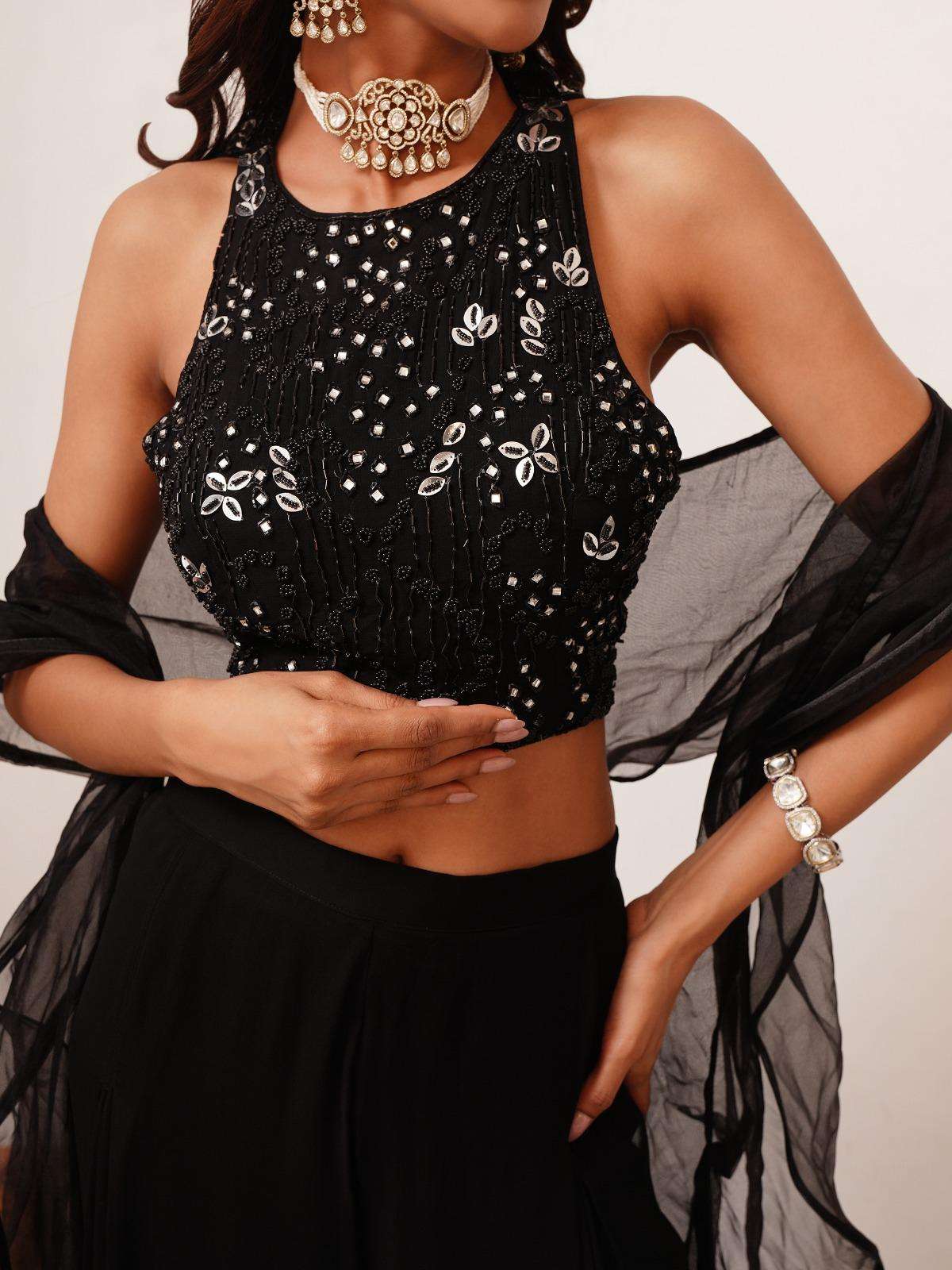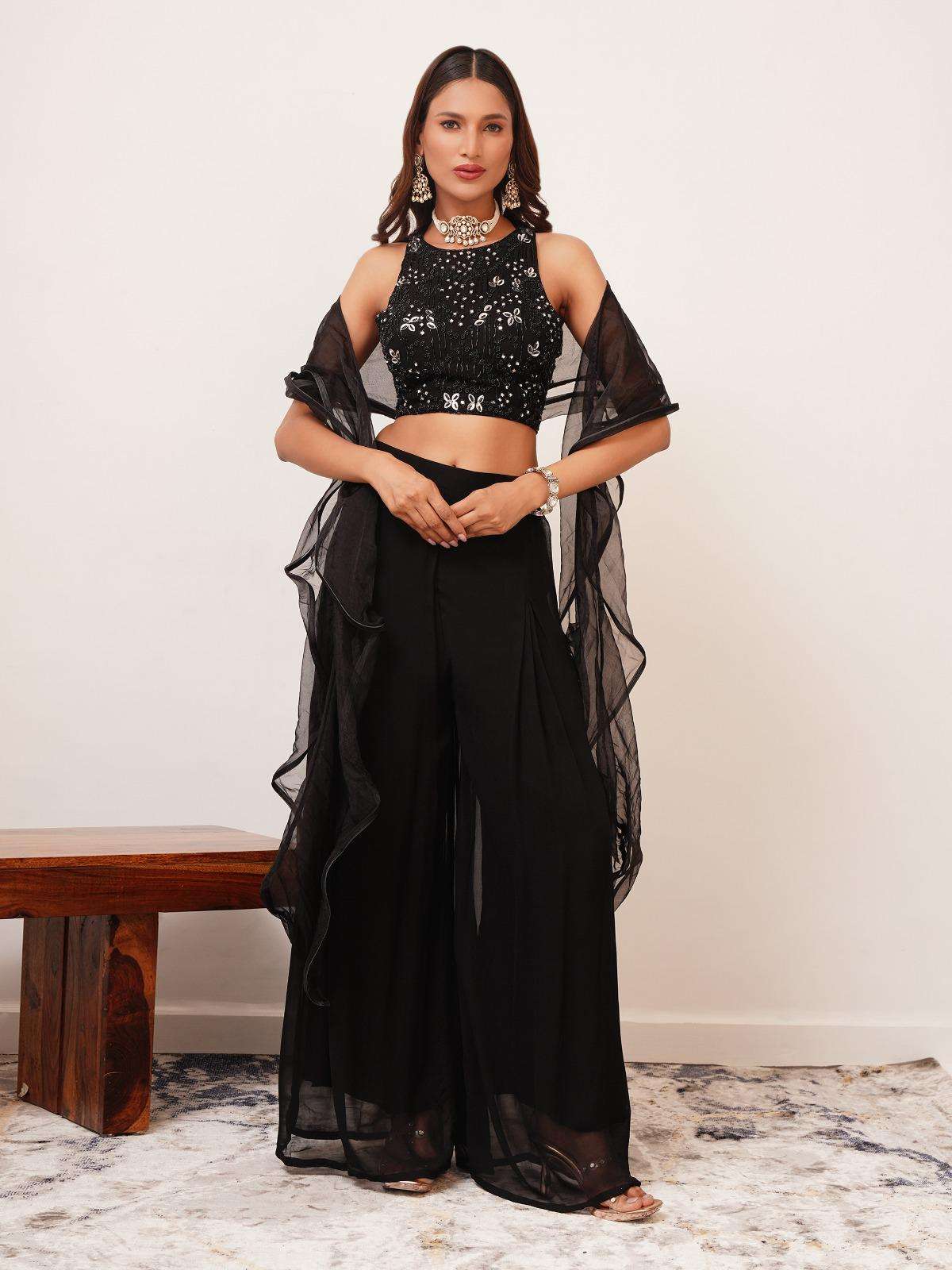READYMADE CROP TOP DESIGN NO C2061 TOP IMPORTED GEORGETTE FABRIC EMBROIDERY WORK BLOUSE PLAZZO EMBROIDERY WORK WITH PURE GEORGETTE FABRIC SIZE 38(READY) 2 COLOURS AVAILABLE RATE 2475+12% |