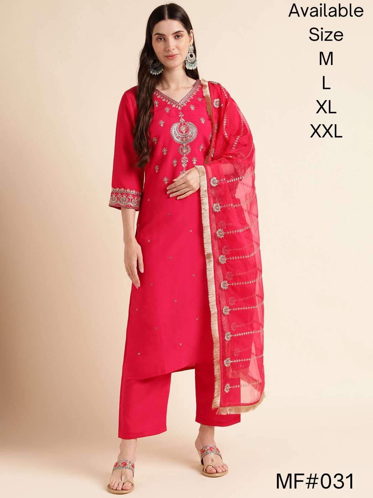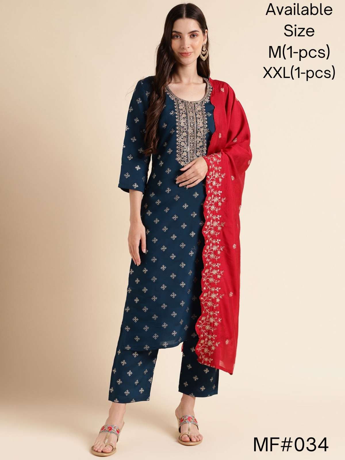 All new festive collection this season 🥳 Heavy Embroidered & Printed silk cotton Dresses for festive season . Grab this beautiful Top + Bottom + Dupatta set *Fabric - slik cotton* Available in 5 sizes S - 36 M - 38 L - 40 XL - 42 XXL - 44