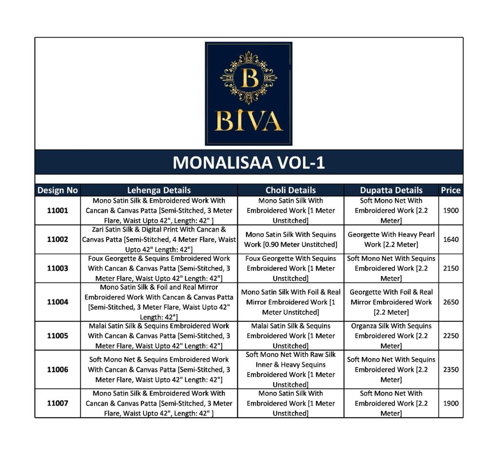 New Launch Biva Monalisaa Vol 1 Series 11001 To 11007 Flower Embrace Designer Lehenga Choli Collection
