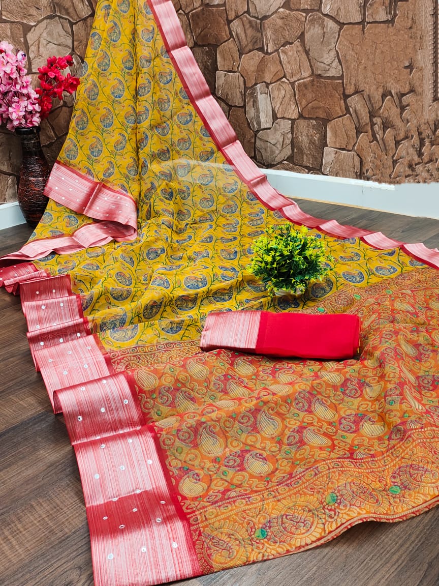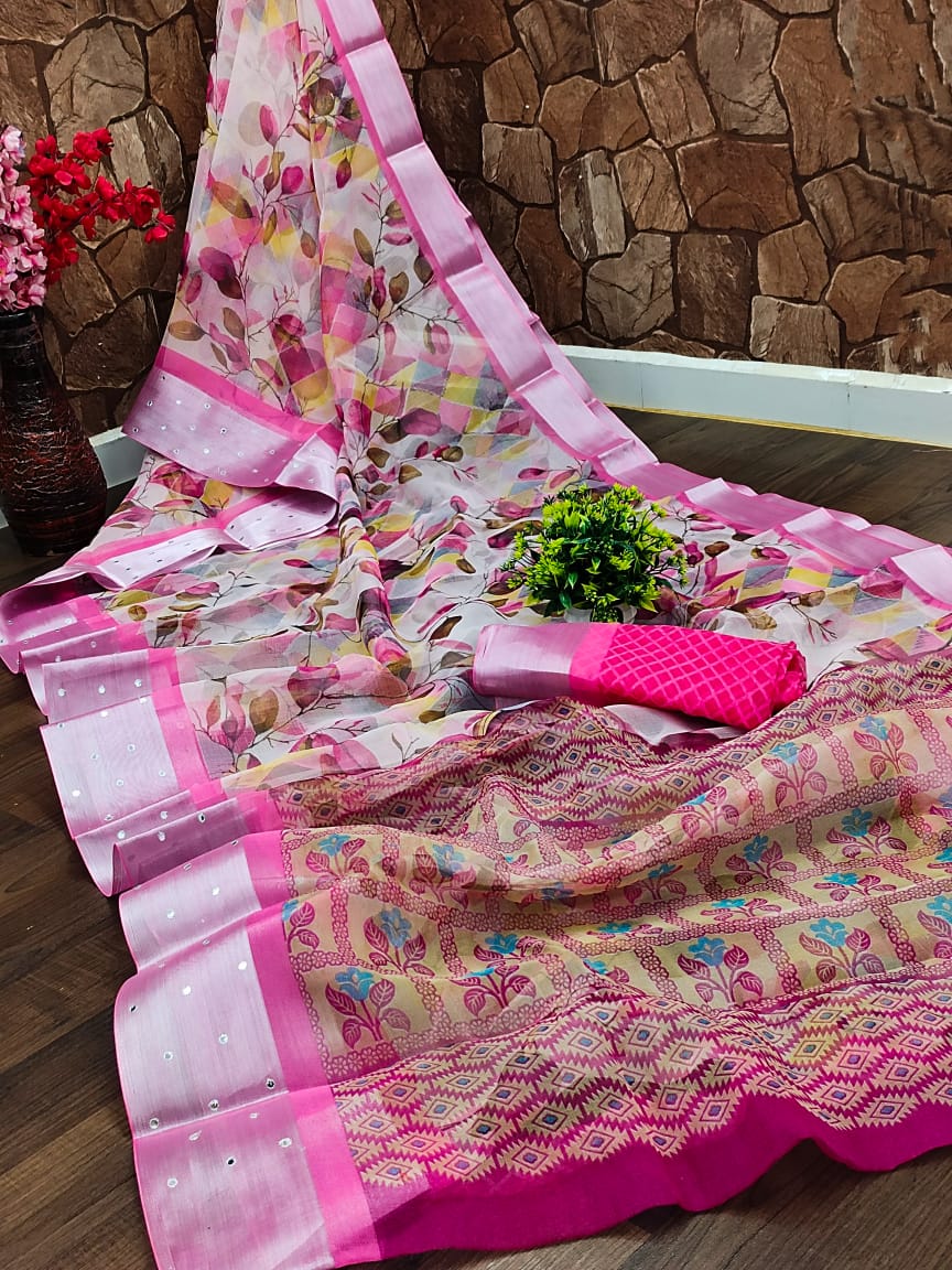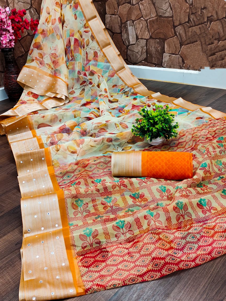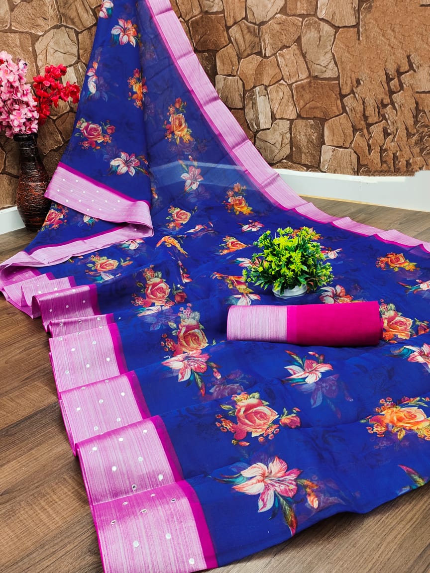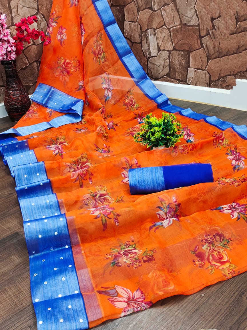 New Lilnen Orgaza Digital Saree Wholesaler Supplier From Surat