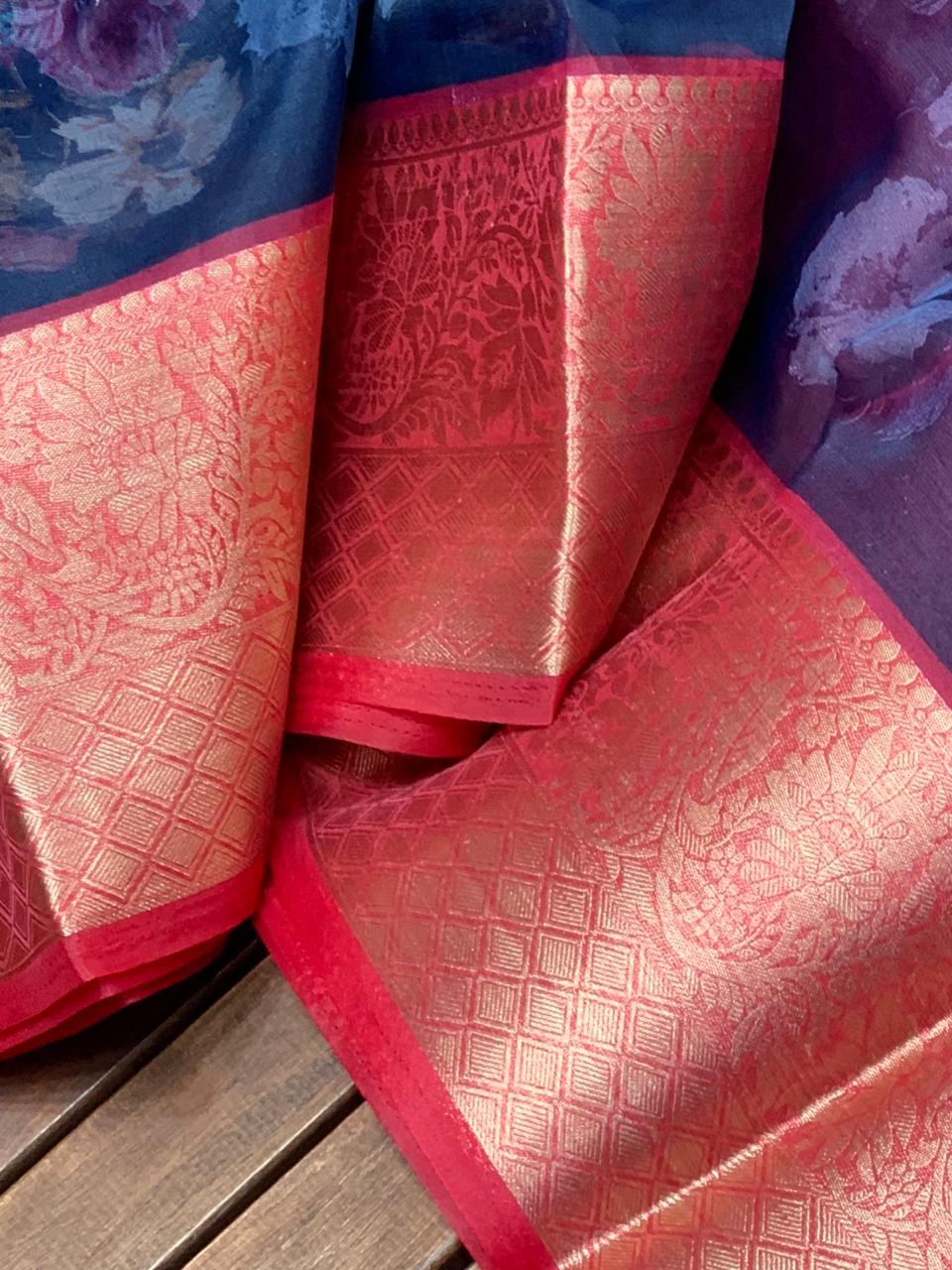 New Organza With Digital Print Saree Single Available Manufacturer Traders Surat