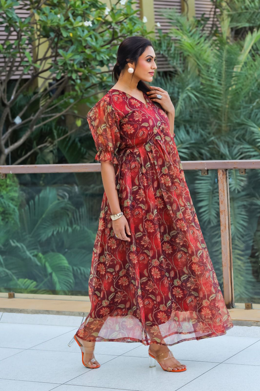 New Present Pure Organza Mexi Dress Flower Print Collection