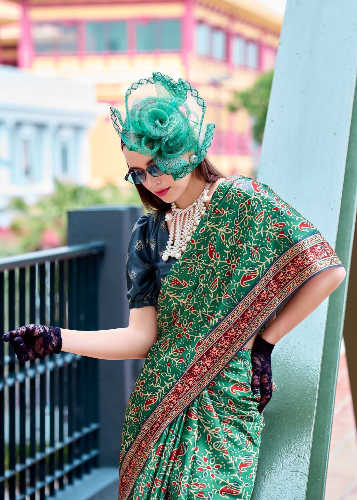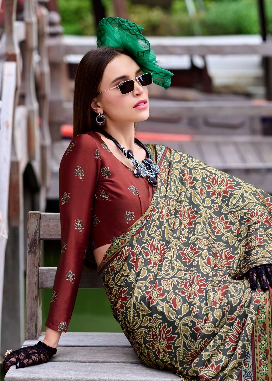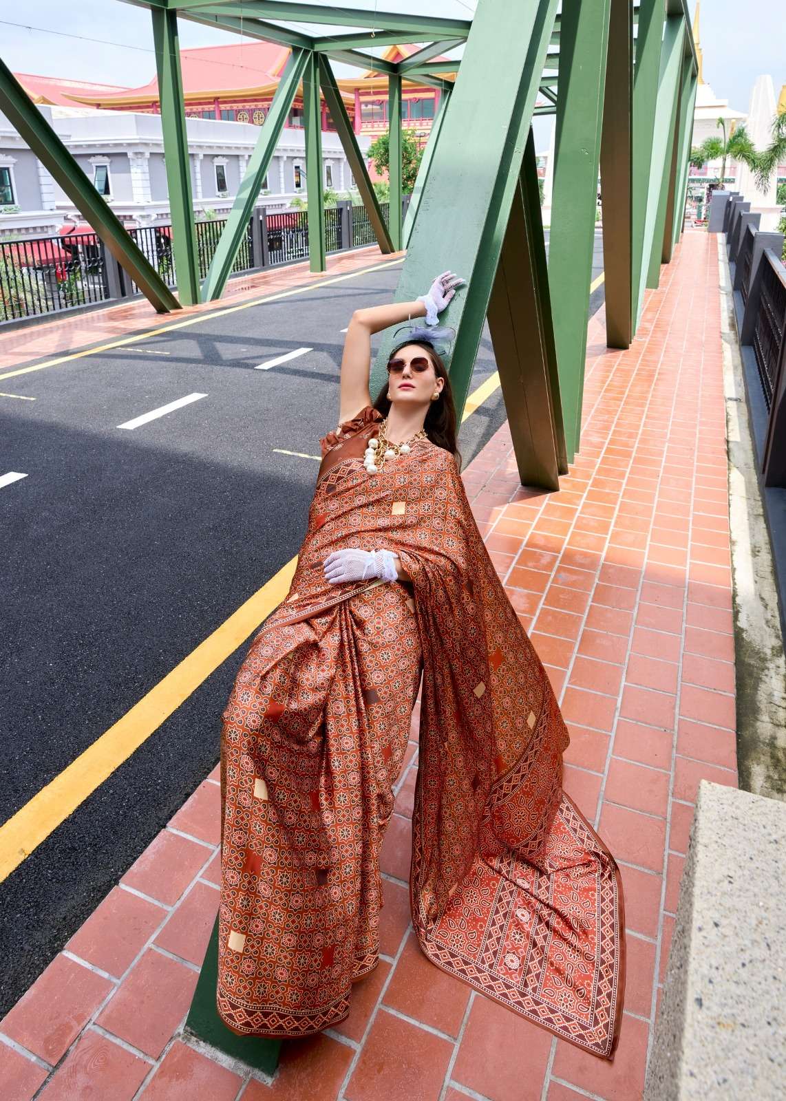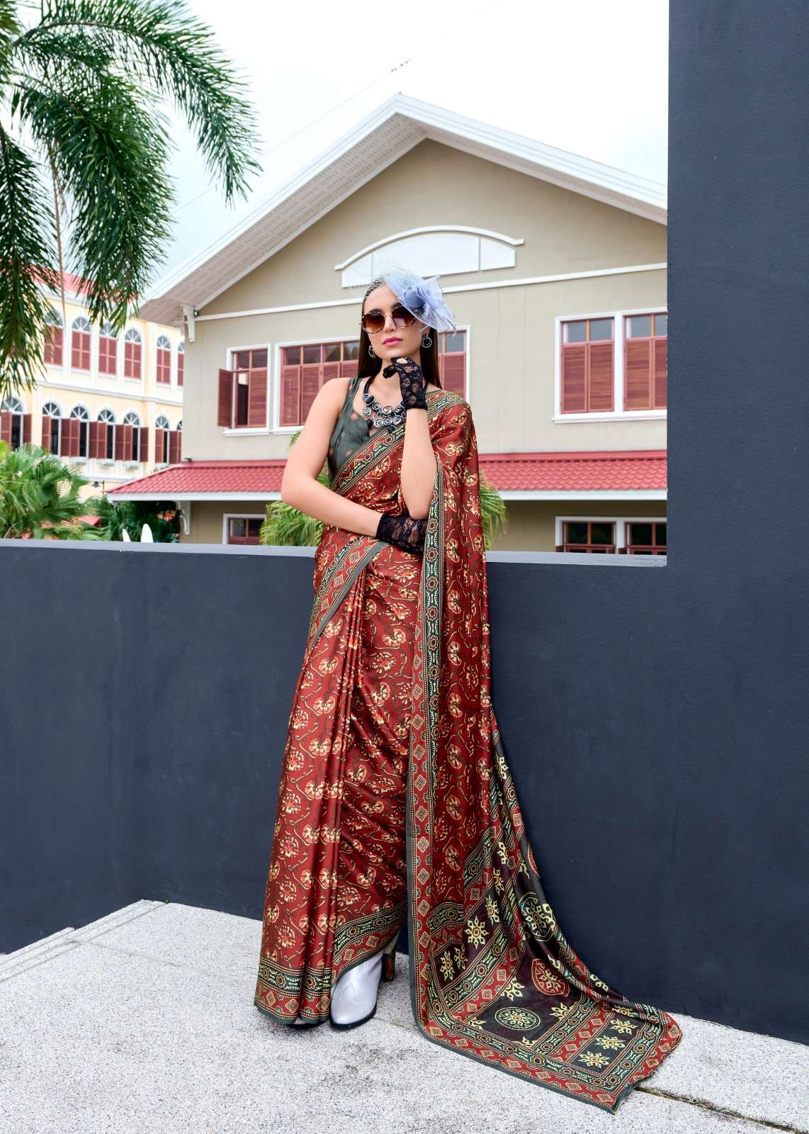 ➡️Fabric - *Pure Sattin Silk With Ajrakh Print*