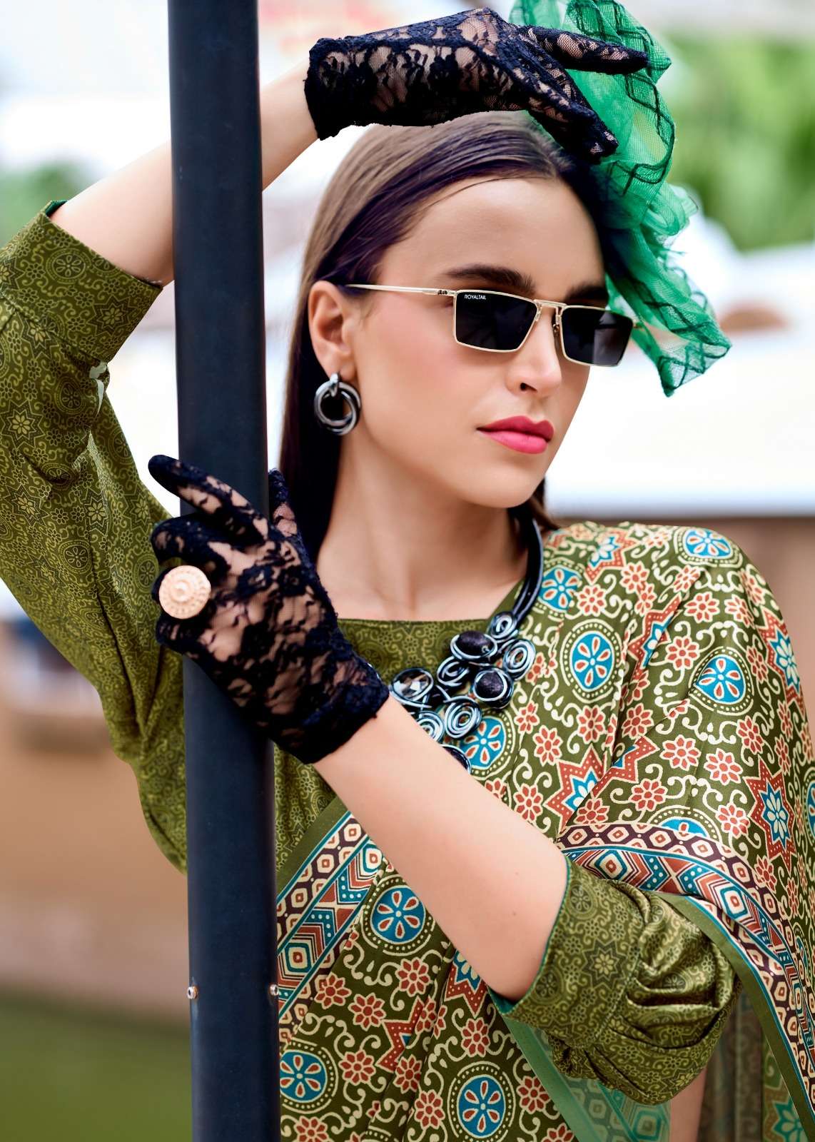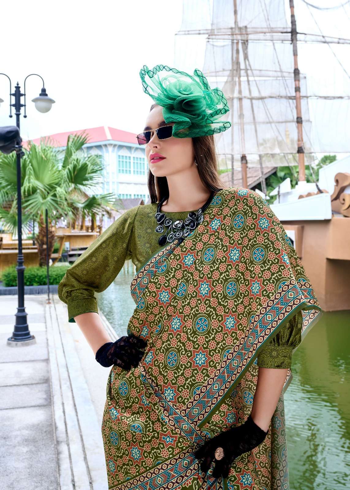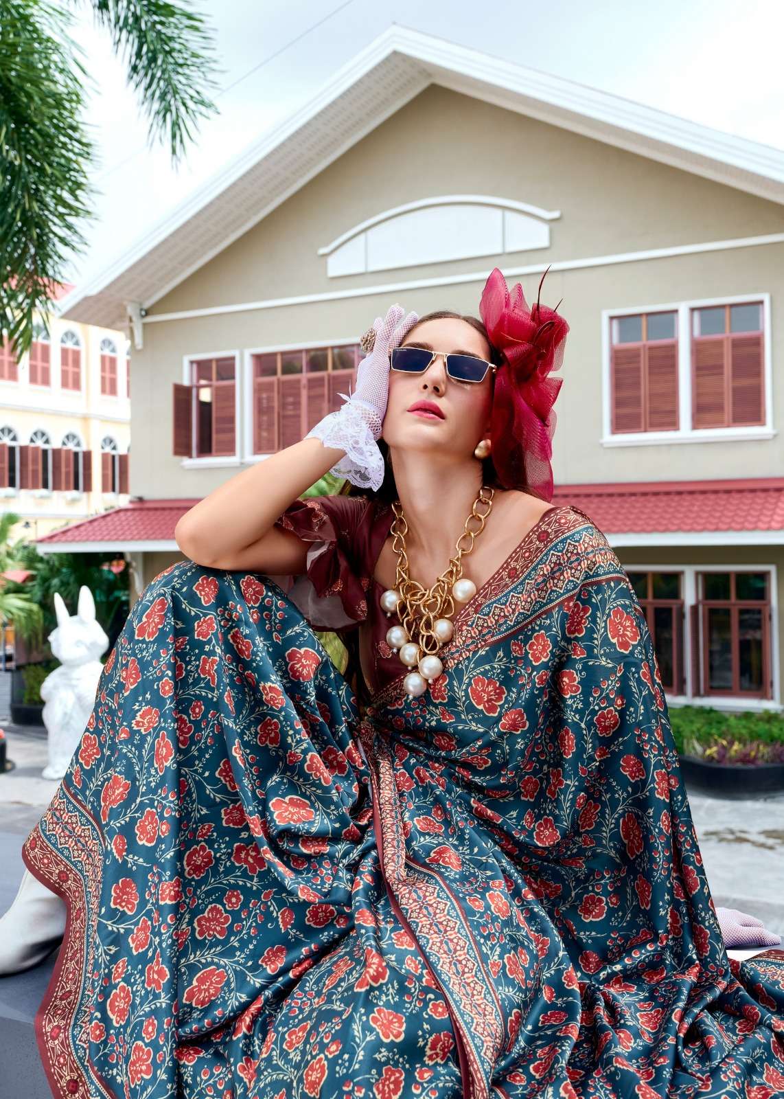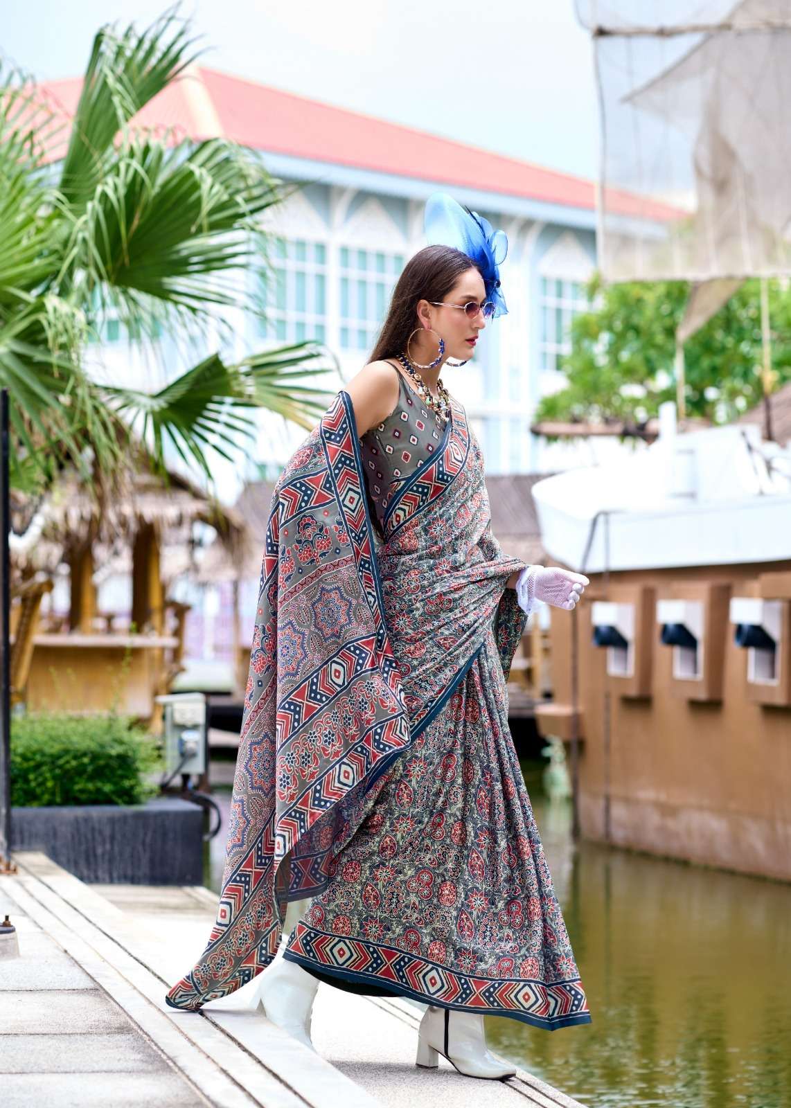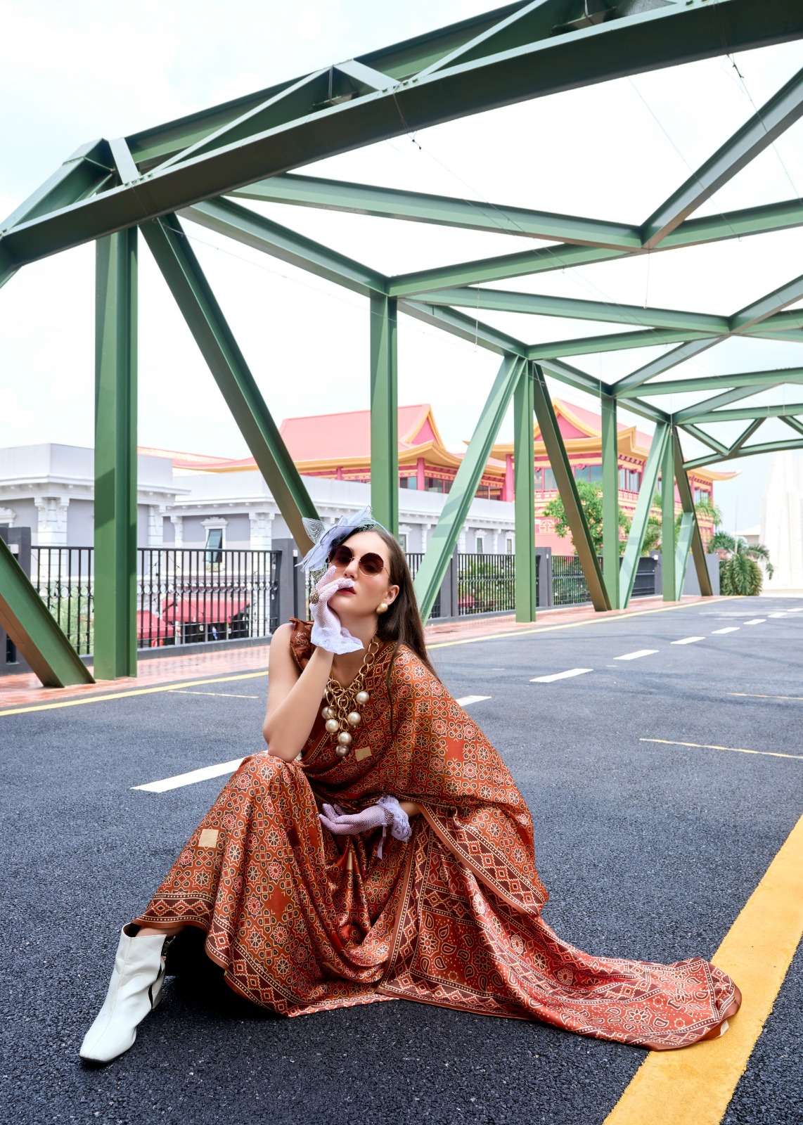 ➡️Fabric - *Pure Sattin Silk With Ajrakh Print*