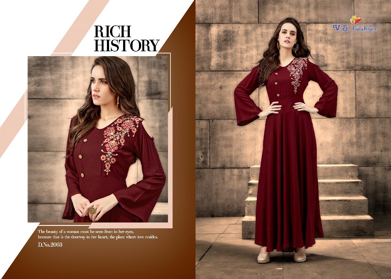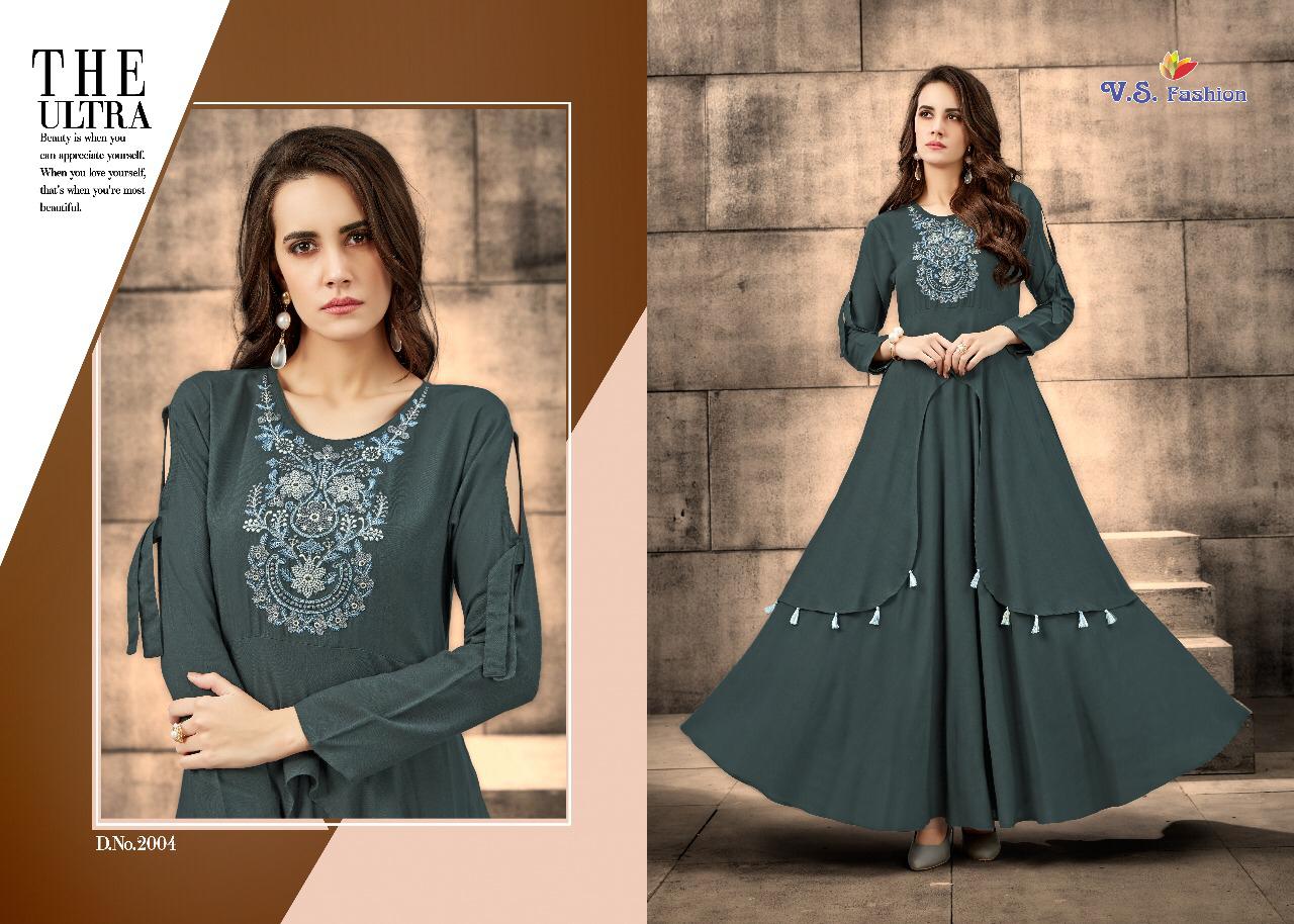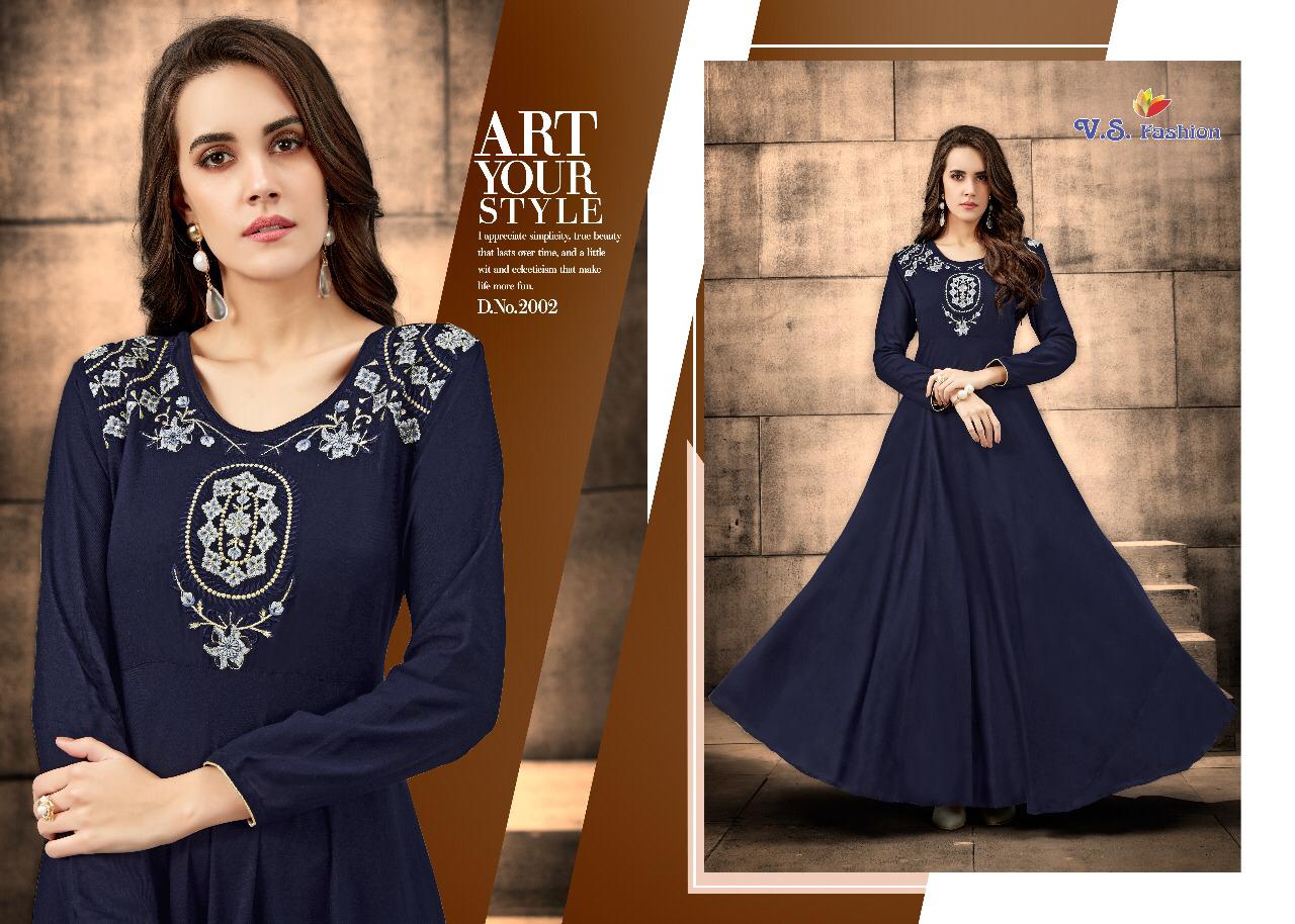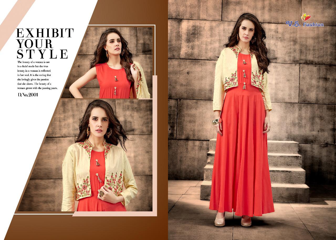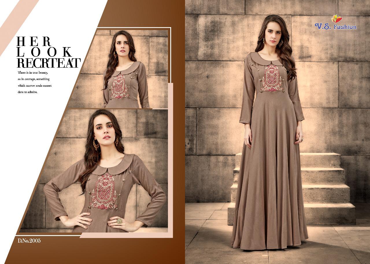 Buy Online Neysa By Vs Fashion 2001 Series Designer Reyon Gown Style Kurti Catlog Wholesale Dealer Surat 5 Pcs of Full Catalogue at Wholesale Price. Looking for Neysa By Vs Fashion 2001 Series Designer Reyon Gown Style Kurti Catlog Wholesale Dealer Surat Full Catalouge at Best Price? Buy Now Neysa By Vs Fashion 2001 Series Designer Reyon Gown Style Kurti Catlog Wholesale Dealer Surat at Wholesale Rate of Rs 3980 with Total 5 Pcs from authroized dealer and supplier of VS Brand. Cost of Each piece is just only Rs 796 which is very low and affordable price to resale the product in your retail store ,This is Surat based Wholesale Supplier & Dealer of VS Brand. Click on Brand name to Know more about VS Brand's products.Call or Whatsapp on 9898838984 for booking or enquiry