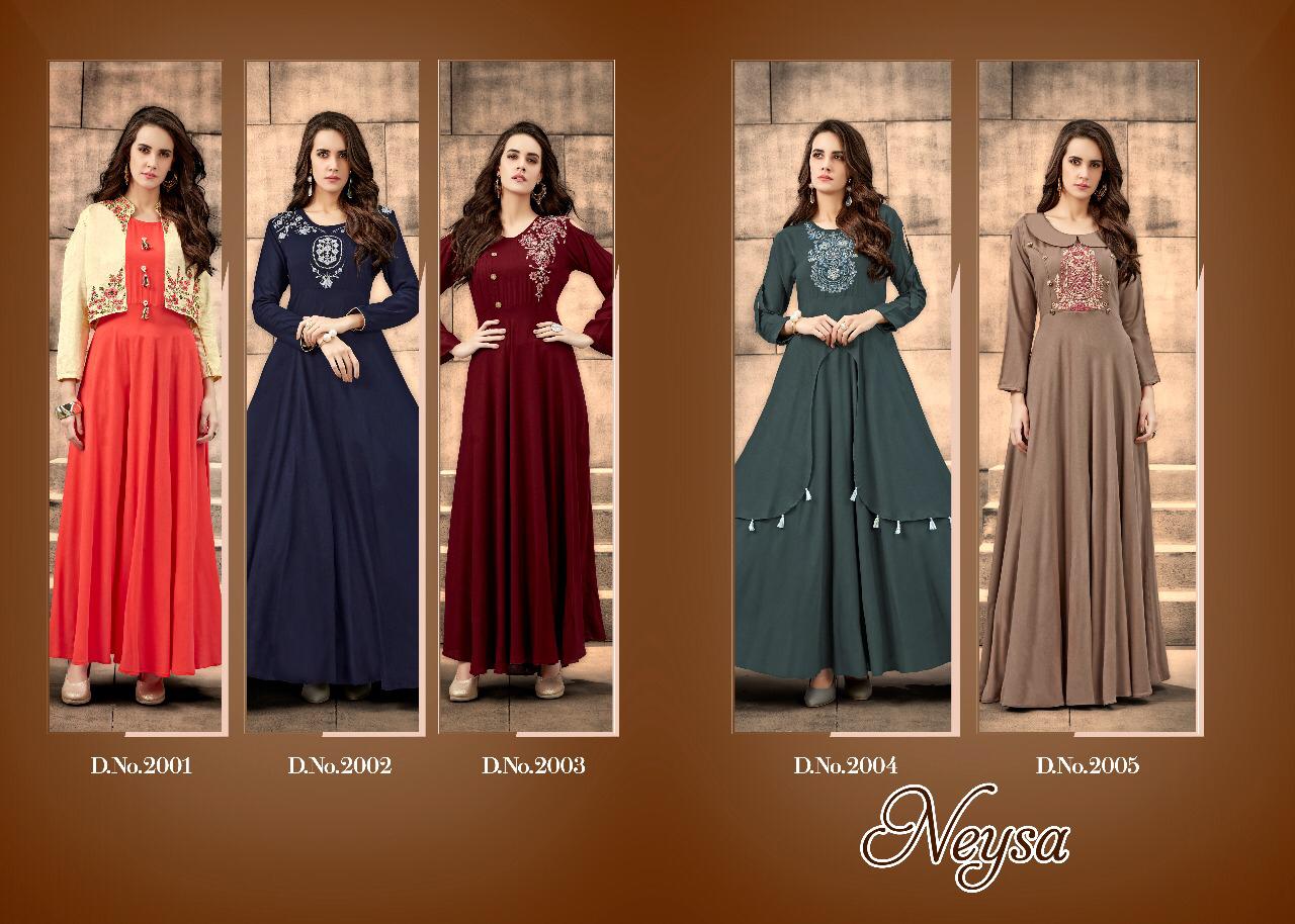 Neysa By Vs Fashion 2001 Series Designer Reyon Gown Style Kurti Catlog Wholesale Dealer Surat