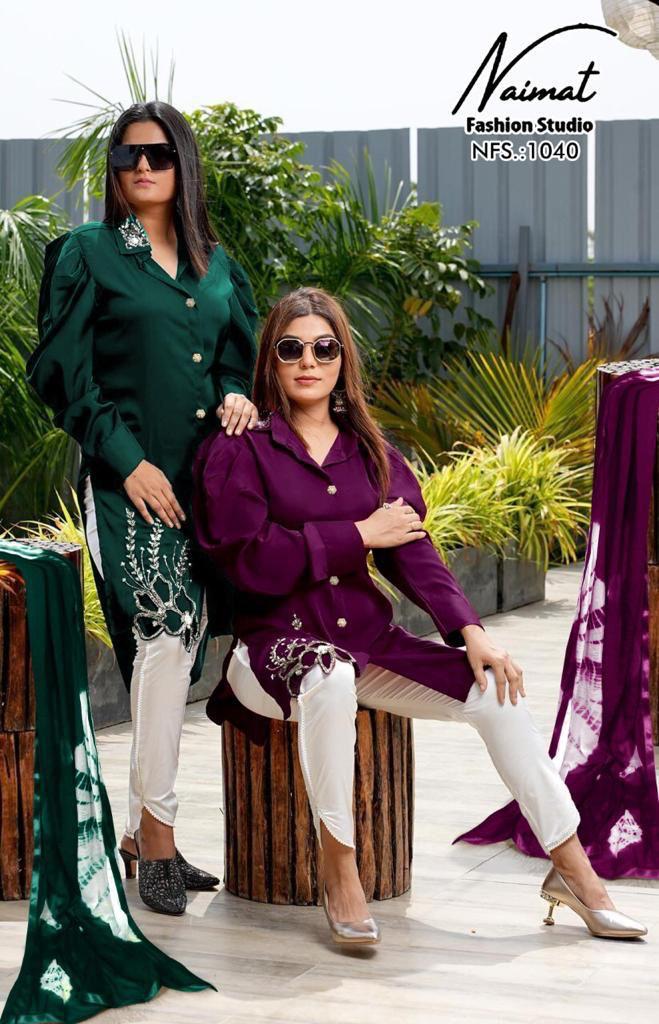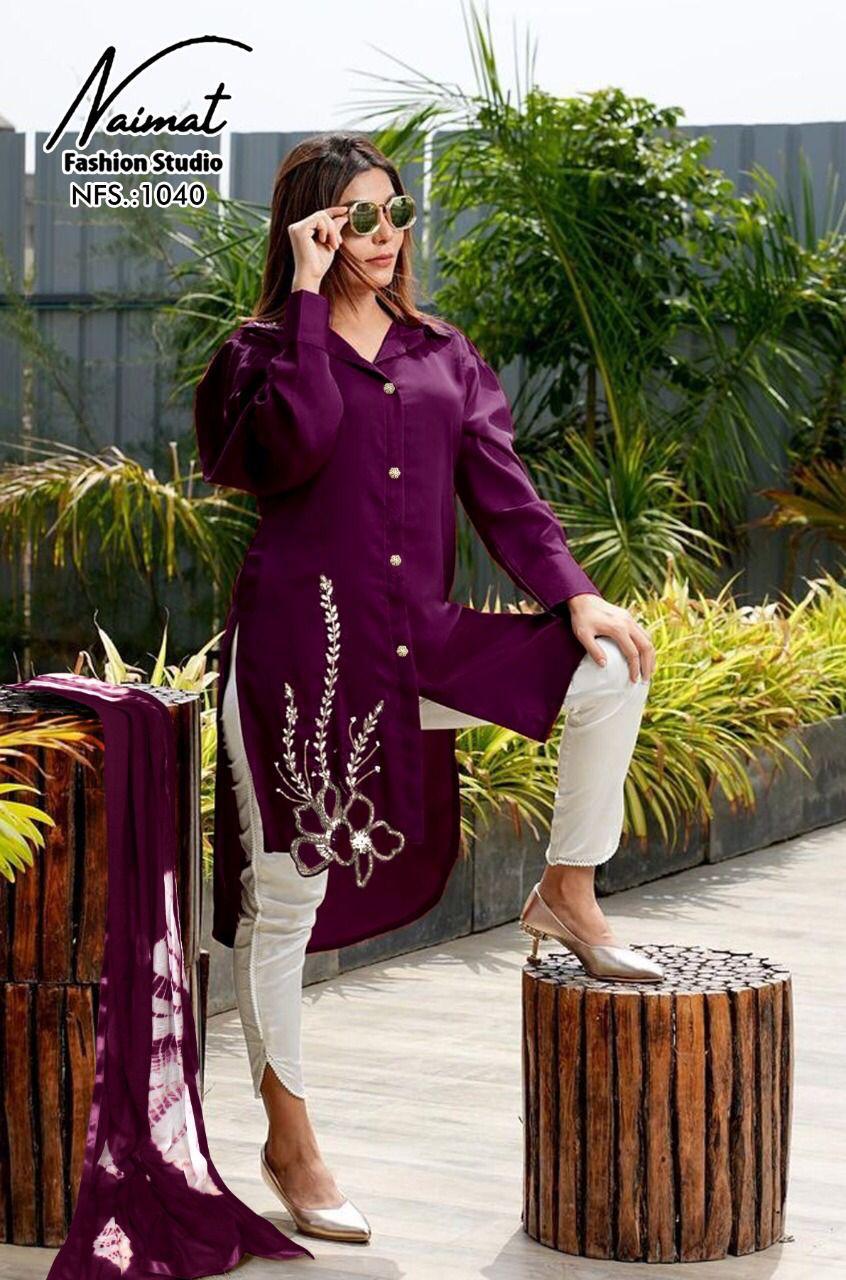 Buy Online Nfs 1040 Naimat Fashion Studio Readymade Pakistani Suits Wholesalers 3 Pcs of Full Catalogue at Wholesale Price. Looking for Nfs 1040 Naimat Fashion Studio Readymade Pakistani Suits Wholesalers Full Catalouge at Best Price? Buy Now Nfs 1040 Naimat Fashion Studio Readymade Pakistani Suits Wholesalers at Wholesale Rate of Rs 3600 with Total 3 Pcs from authroized dealer and supplier of Brand. Cost of Each piece is just only Rs 1200 which is very low and affordable price to resale the product in your retail store ,This is Surat based Wholesale Supplier & Dealer of Brand. Click on Brand name to Know more about Brand's products.Call or Whatsapp on 9898838984 for booking or enquiry