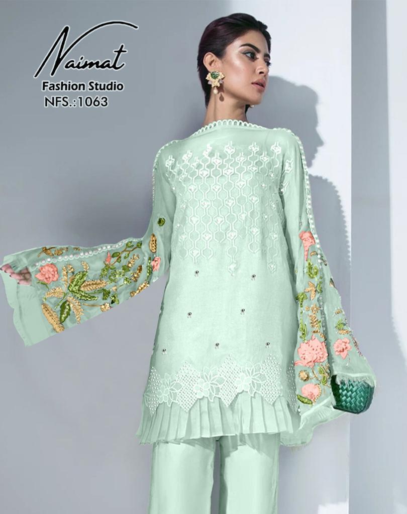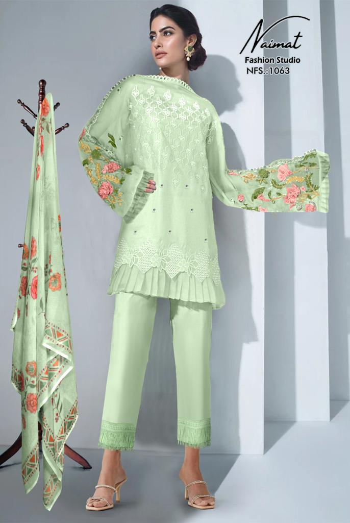 Buy Online Nfs 1063 By Naimat Fashion Studio Laxuria Pret Collection Manufacturer Surat 3 Pcs of Full Catalogue at Wholesale Price. Looking for Nfs 1063 By Naimat Fashion Studio Laxuria Pret Collection Manufacturer Surat Full Catalouge at Best Price? Buy Now Nfs 1063 By Naimat Fashion Studio Laxuria Pret Collection Manufacturer Surat at Wholesale Rate of Rs 4500 with Total 3 Pcs from authroized dealer and supplier of Brand. Cost of Each piece is just only Rs 1500 which is very low and affordable price to resale the product in your retail store ,This is Surat based Wholesale Supplier & Dealer of Brand. Click on Brand name to Know more about Brand's products.Call or Whatsapp on 9898838984 for booking or enquiry