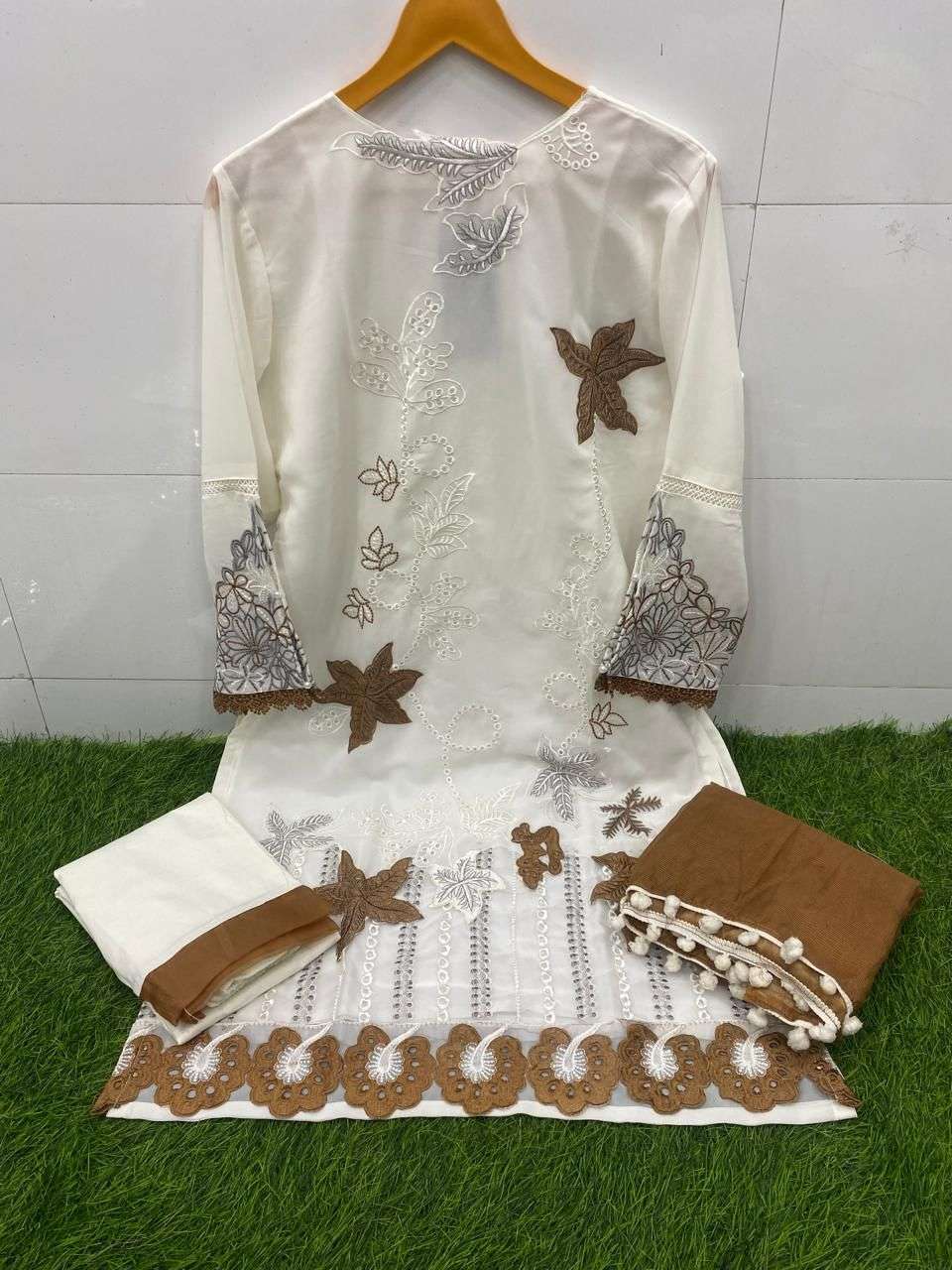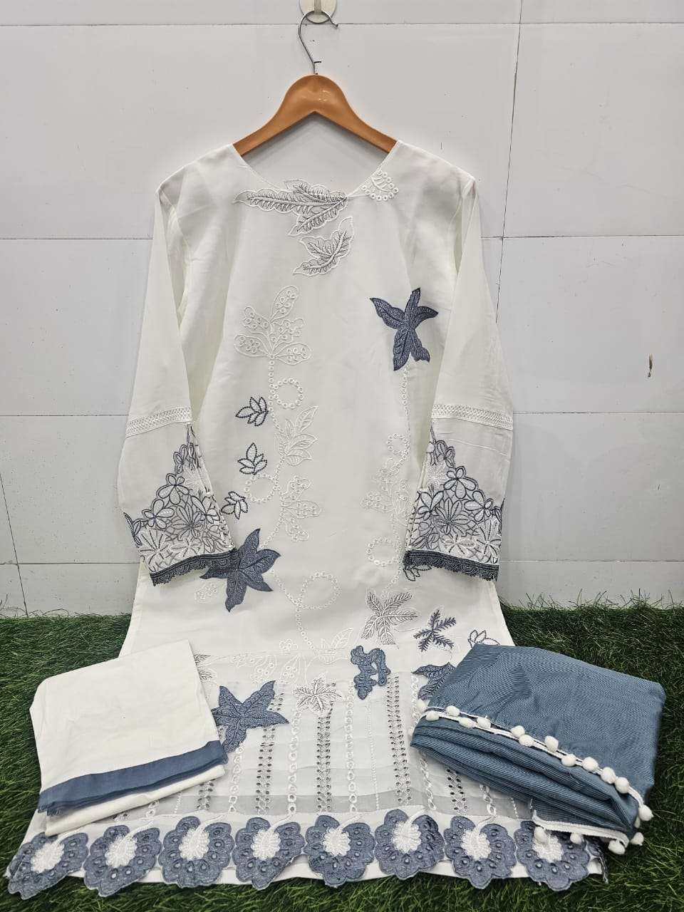❤️ *Details*❤️ 〰〰〰〰〰〰〰 ✨ *Top*:- Pure Fox ✨ *inner*:- santoon ✨ *Bottom* :- Pure Cotton Stretchable ✨ *Duppta*:- Fancy Fabrics ✨ *Colour* (1) *Off White With Purple* (2) *Off White With Choco* (3) *Off White With Grey* ‼️ *Size Chart *‼️ ✨ *Top XL:-XL size chest* (42) *And XXL:-XXL size chest* (44) ✨*Rate *1350/-*✨