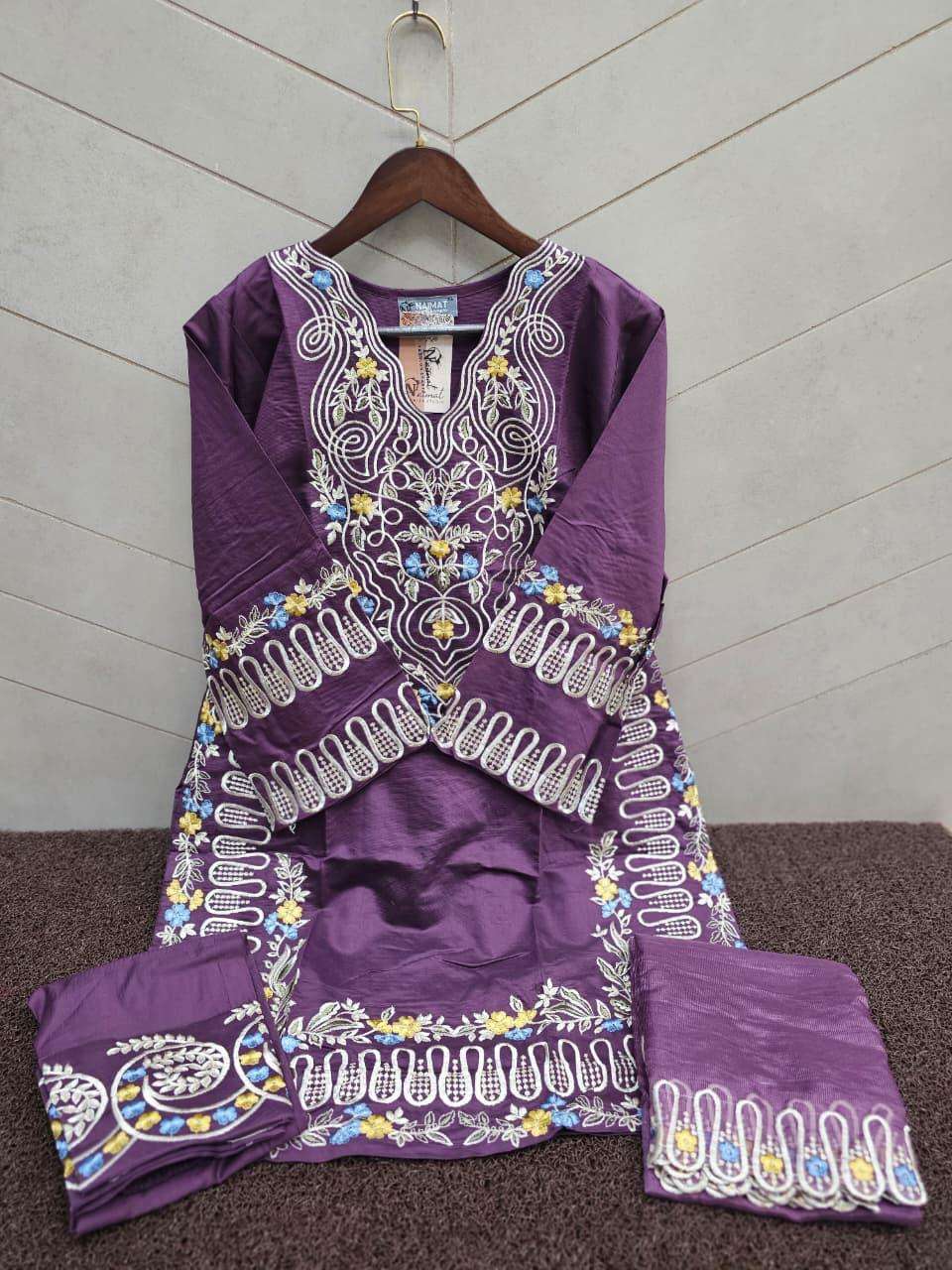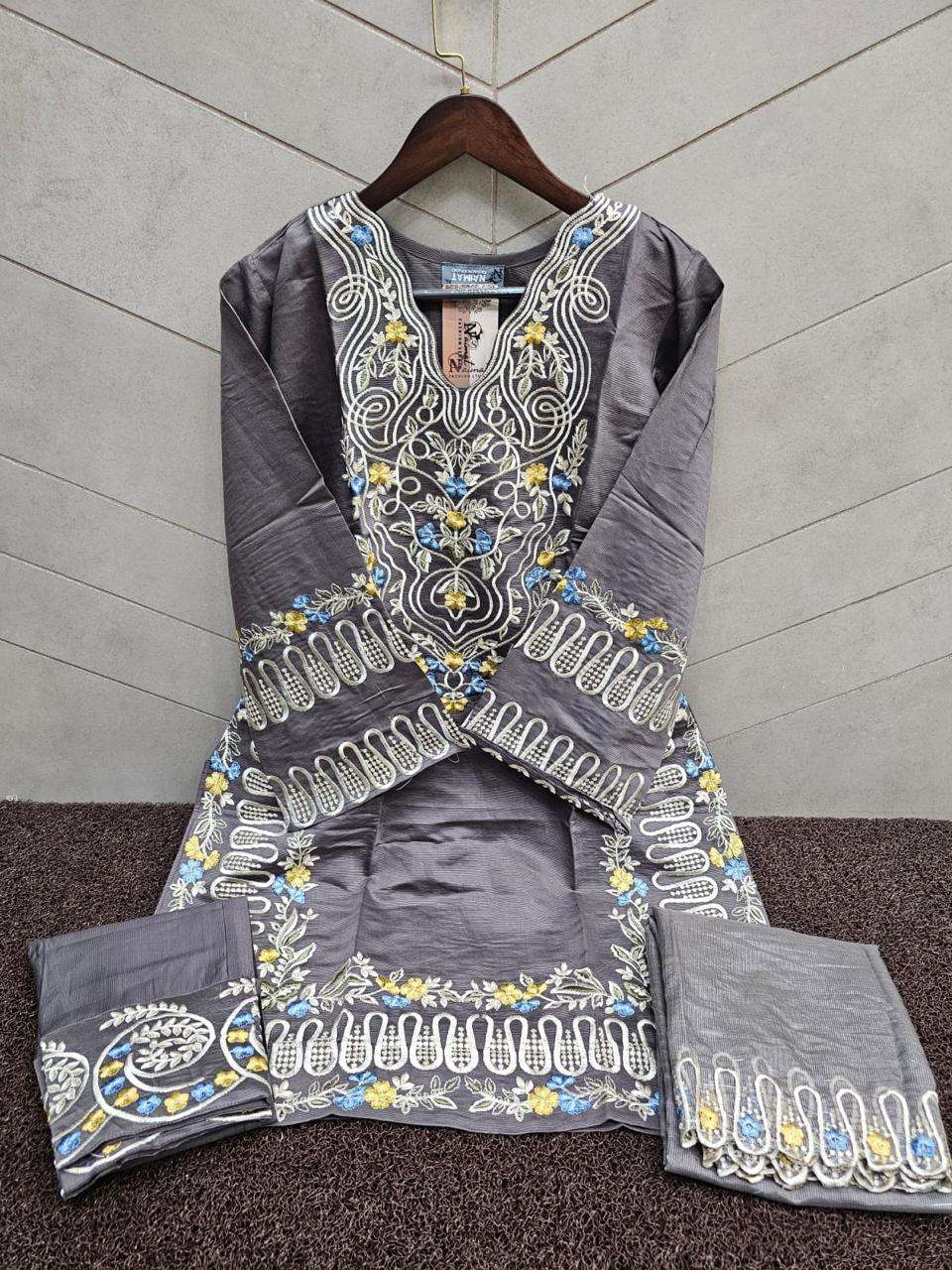 *(NFS-1165)* ➖➖➖➖➖➖➖ ✨ by *Naimat Fashoin Studio*✨ ➖➖➖➖➖➖➖➖ ❤️ *Description*❤️ 〰〰〰〰〰〰〰 *Designer Tunic Embellished with beautiful embroidery work in Top and Slive With & paired with Classic Cotton Straight pants with embroidery & with Embroidery Work Fancy Dupatta*