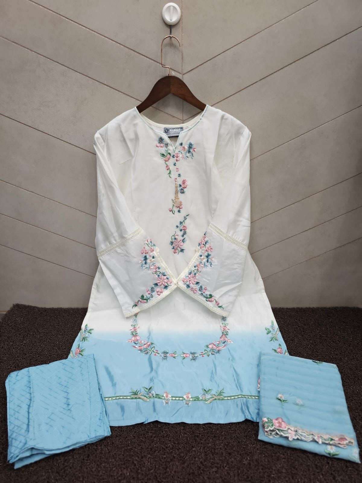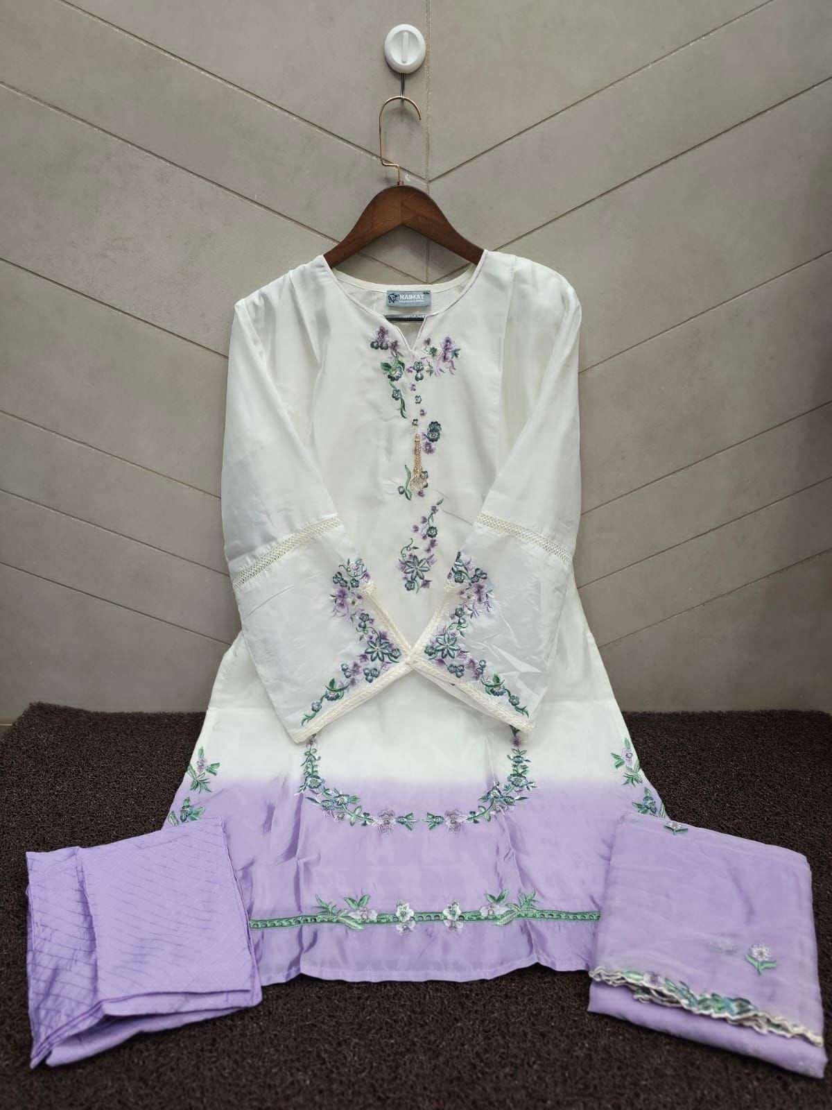*(NFS-1181)* ➖➖➖➖➖➖➖ ✨ by *Naimat Fashoin Studio*✨ ➖➖➖➖➖➖➖➖ ❤️ *Description*❤️ 〰〰〰〰〰〰〰 *Designer Tunic Embellished with beautiful embroidery in top and slive & paired with Classic Stylish pants with stylish pattern & with Fancy Embroidery Dupatta*