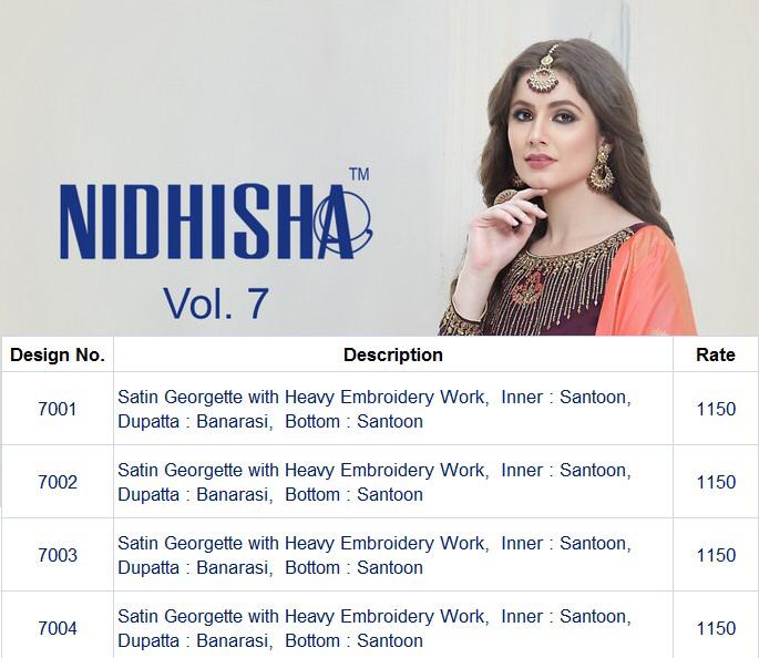 Nidhisha Vol 7 Series 7000 Designer Party Wear Suits Wholesale Supplier Nd Dealer India