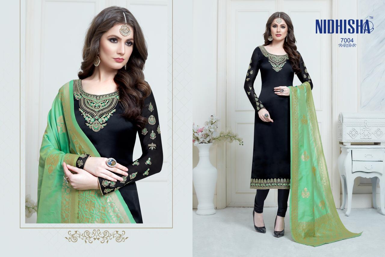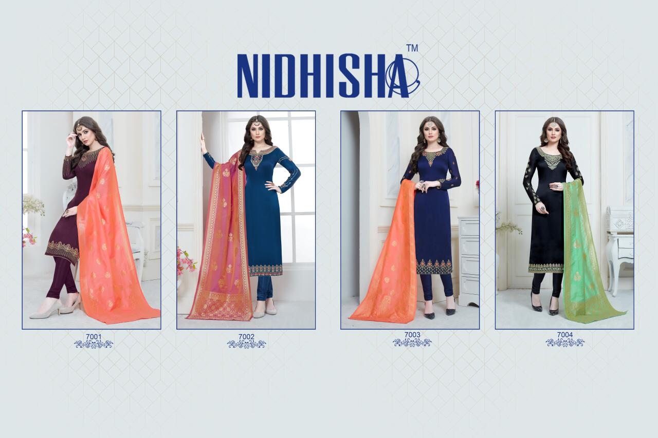 Buy Online Nidhisha Vol 7 Series 7000 Designer Party Wear Suits Wholesale Supplier Nd Dealer India 4 Pcs of Full Catalogue at Wholesale Price. Looking for Nidhisha Vol 7 Series 7000 Designer Party Wear Suits Wholesale Supplier Nd Dealer India Full Catalouge at Best Price? Buy Now Nidhisha Vol 7 Series 7000 Designer Party Wear Suits Wholesale Supplier Nd Dealer India at Wholesale Rate of Rs 4600 with Total 4 Pcs from authroized dealer and supplier of Brand. Cost of Each piece is just only Rs 1150 which is very low and affordable price to resale the product in your retail store ,This is Surat based Wholesale Supplier & Dealer of Brand. Click on Brand name to Know more about Brand's products.Call or Whatsapp on 9898838984 for booking or enquiry