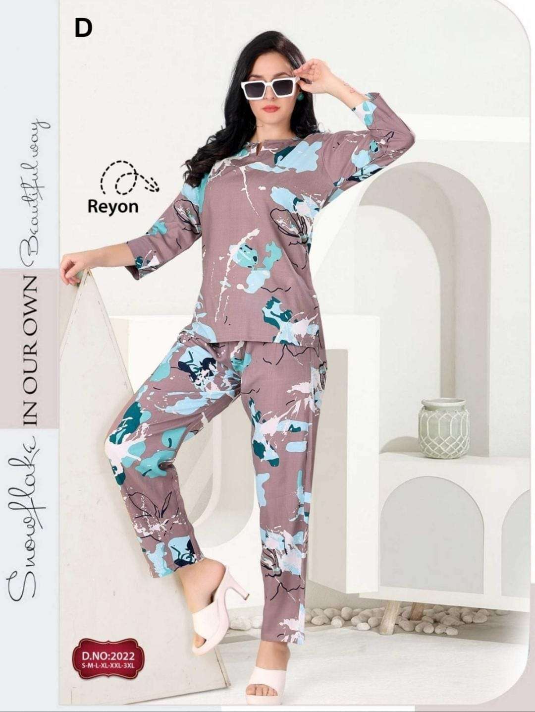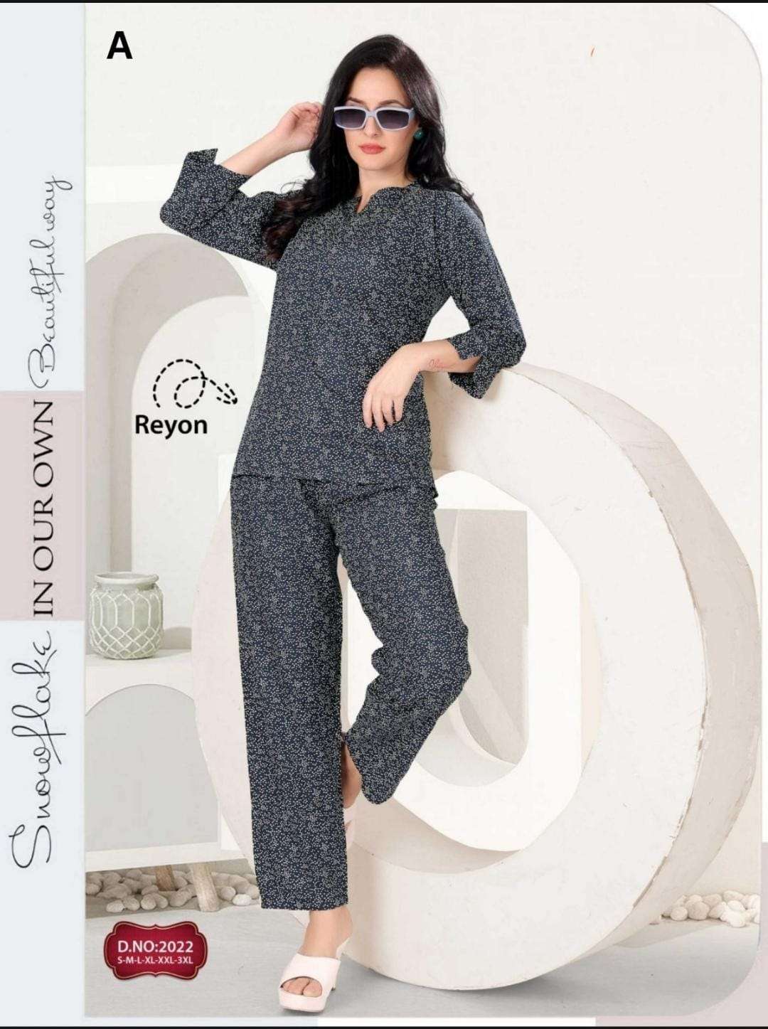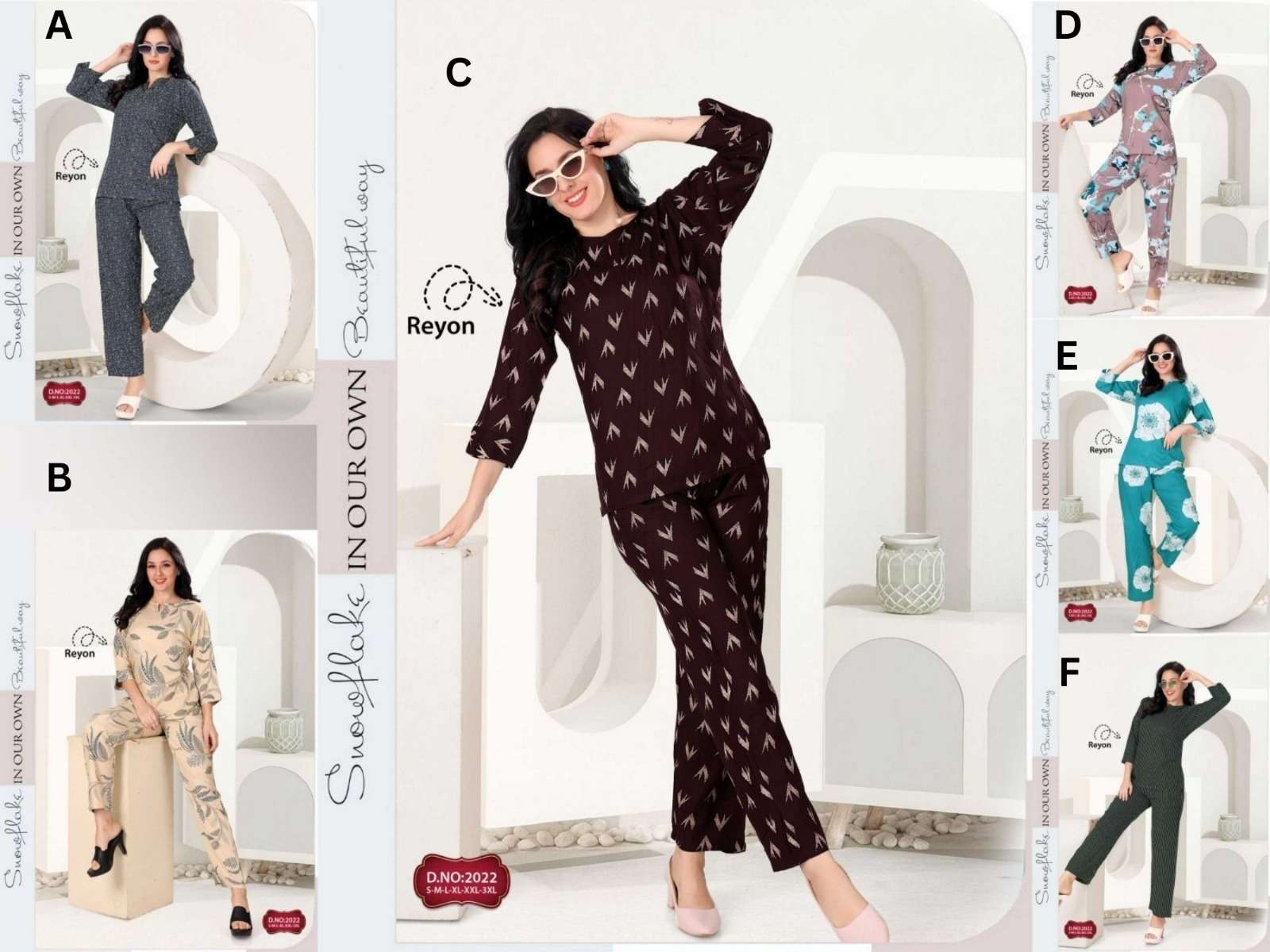 Buy Online Night Suits Vol 2022 collection manufacturers surat 5 Pcs of Full Catalogue at Wholesale Price. Looking for Night Suits Vol 2022 collection manufacturers surat Full Catalouge at Best Price? Buy Now Night Suits Vol 2022 collection manufacturers surat at Wholesale Rate of Rs 2625 with Total 5 Pcs from authroized dealer and supplier of BRAND'S Brand. Cost of Each piece is just only Rs 525 which is very low and affordable price to resale the product in your retail store ,This is Surat based Wholesale Supplier & Dealer of BRAND'S Brand. Click on Brand name to Know more about BRAND'S Brand's products.Call or Whatsapp on 9898838984 for booking or enquiry
