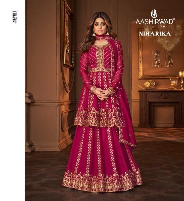 Buy Online Niharika By Aashirwad Creation Single And Set Stockiest And Supplier From Surat 5 Pcs of Full Catalogue at Wholesale Price. Looking for Niharika By Aashirwad Creation Single And Set Stockiest And Supplier From Surat Full Catalouge at Best Price? Buy Now Niharika By Aashirwad Creation Single And Set Stockiest And Supplier From Surat at Wholesale Rate of Rs 11995 with Total 5 Pcs from authroized dealer and supplier of AASHIRWAD Brand. Cost of Each piece is just only Rs 2399 which is very low and affordable price to resale the product in your retail store ,This is Surat based Wholesale Supplier & Dealer of AASHIRWAD Brand. Click on Brand name to Know more about AASHIRWAD Brand's products.Call or Whatsapp on 9898838984 for booking or enquiry