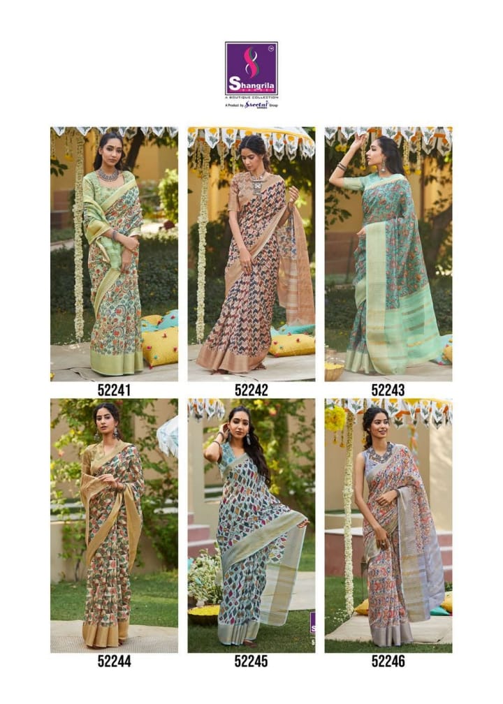 Niharika Digital by Niharika Digital Shangrila Present Classy And Trendy New Digital Pure Printa On Soft Linen Fabric With Zari Border and Pallu...!! 12 pc 12 design 795/-Shangrila |