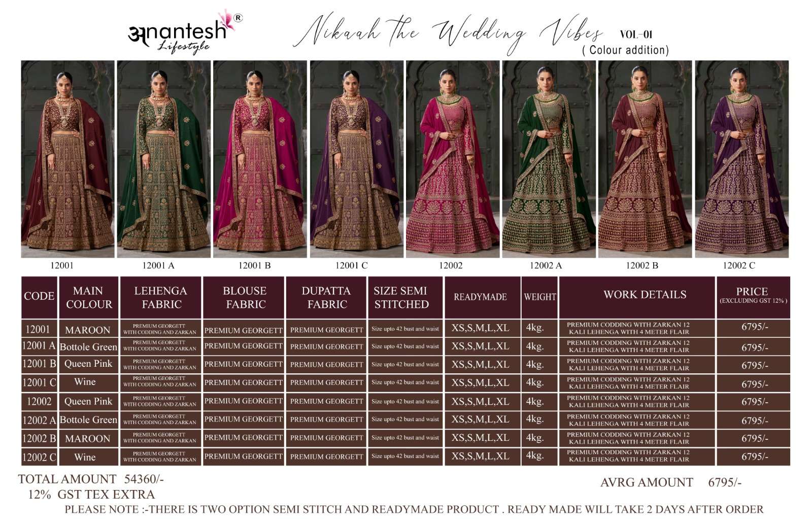 NIKAAH WEDDING VIBES VOL 01 SERIES 12001 to 12002 by ANANTESH lifestyle Lehenga choli collection manufacturer surat