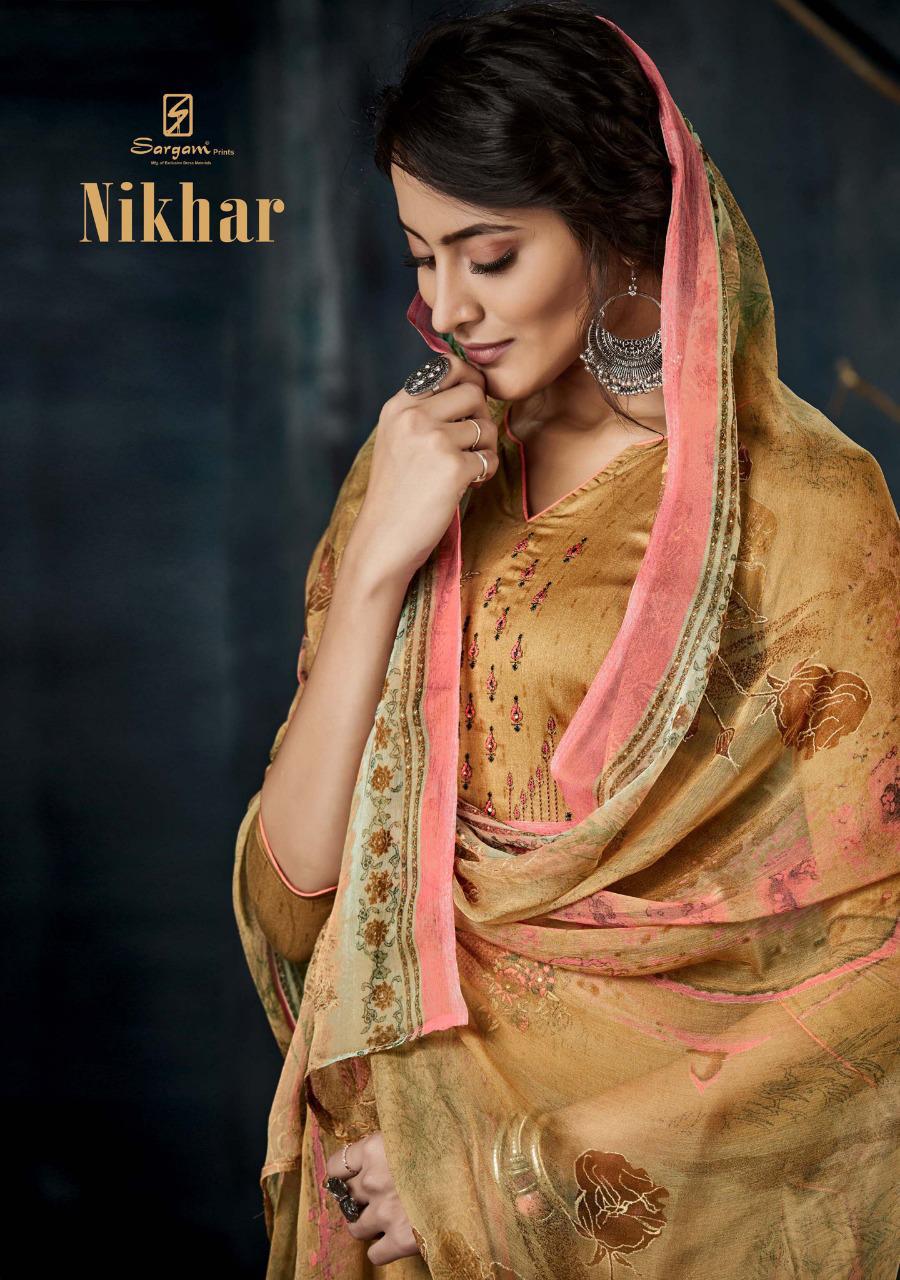 Buy Online Nikhar By Saragam Prints Zam Printed Suits Wholesale Supplier Nd Dealer Gujarat 8 Pcs of Full Catalogue at Wholesale Price. Looking for Nikhar By Saragam Prints Zam Printed Suits Wholesale Supplier Nd Dealer Gujarat Full Catalouge at Best Price? Buy Now Nikhar By Saragam Prints Zam Printed Suits Wholesale Supplier Nd Dealer Gujarat at Wholesale Rate of Rs 7920 with Total 8 Pcs from authroized dealer and supplier of SARGAM PRINTS Brand. Cost of Each piece is just only Rs 990 which is very low and affordable price to resale the product in your retail store ,This is Surat based Wholesale Supplier & Dealer of SARGAM PRINTS Brand. Click on Brand name to Know more about SARGAM PRINTS Brand's products.Call or Whatsapp on 9898838984 for booking or enquiry
