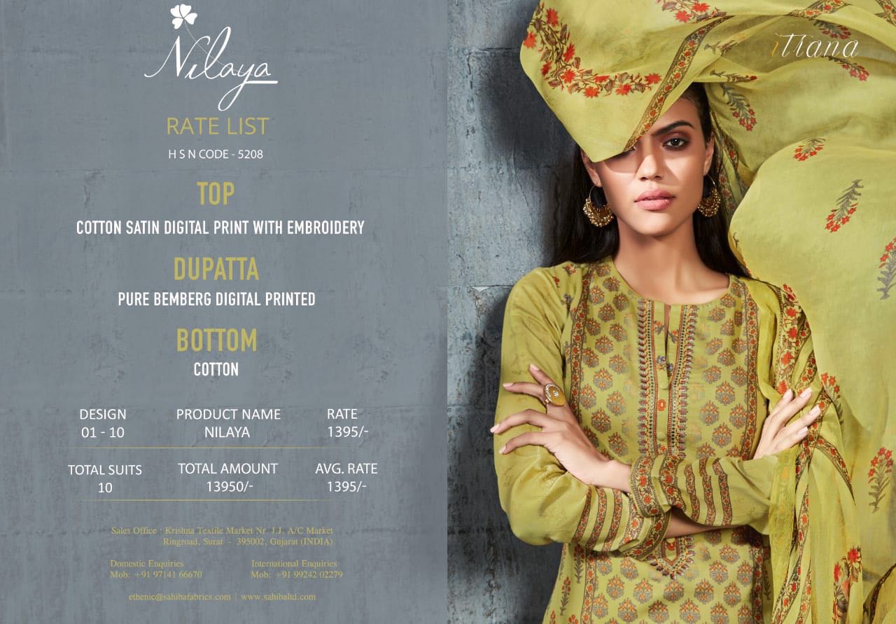 Buy Online Nilaya By Itrana A Sahiba Cotton Digital Printed Embroidered Suits Wholesale Supplier And Dealer Nitya Nx Surat 10 Pcs of Full Catalogue at Wholesale Price. Looking for Nilaya By Itrana A Sahiba Cotton Digital Printed Embroidered Suits Wholesale Supplier And Dealer Nitya Nx Surat Full Catalouge at Best Price? Buy Now Nilaya By Itrana A Sahiba Cotton Digital Printed Embroidered Suits Wholesale Supplier And Dealer Nitya Nx Surat at Wholesale Rate of Rs 13950 with Total 10 Pcs from authroized dealer and supplier of SAHIBA Brand. Cost of Each piece is just only Rs 1395 which is very low and affordable price to resale the product in your retail store ,This is Surat based Wholesale Supplier & Dealer of SAHIBA Brand. Click on Brand name to Know more about SAHIBA Brand's products.Call or Whatsapp on 9898838984 for booking or enquiry