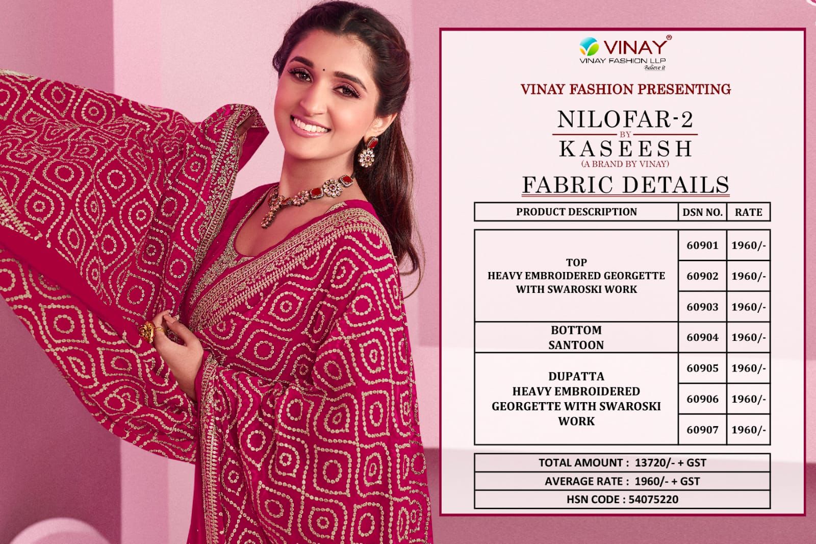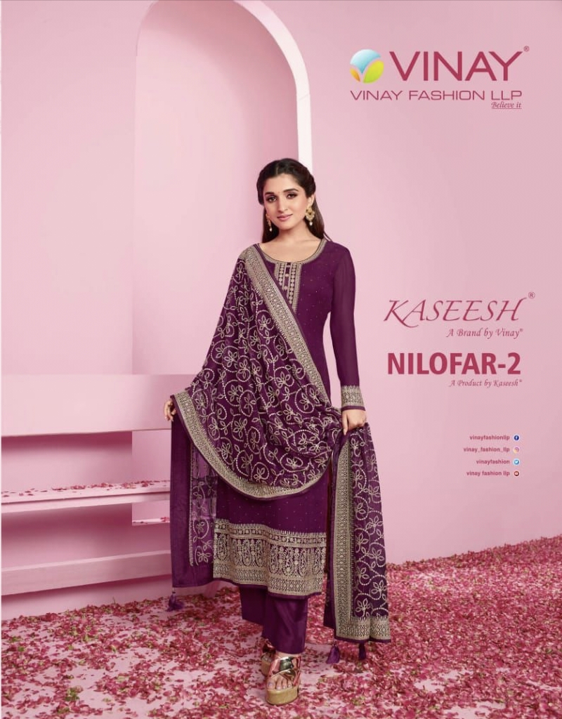 Buy Online Nilofar Vol 2 By Vinay Fashion Designer Suits Wholesale Suppliers And Dealer From India 7 Pcs of Full Catalogue at Wholesale Price. Looking for Nilofar Vol 2 By Vinay Fashion Designer Suits Wholesale Suppliers And Dealer From India Full Catalouge at Best Price? Buy Now Nilofar Vol 2 By Vinay Fashion Designer Suits Wholesale Suppliers And Dealer From India at Wholesale Rate of Rs 13720 with Total 7 Pcs from authroized dealer and supplier of Brand. Cost of Each piece is just only Rs 1960 which is very low and affordable price to resale the product in your retail store ,This is Surat based Wholesale Supplier & Dealer of Brand. Click on Brand name to Know more about Brand's products.Call or Whatsapp on 9898838984 for booking or enquiry