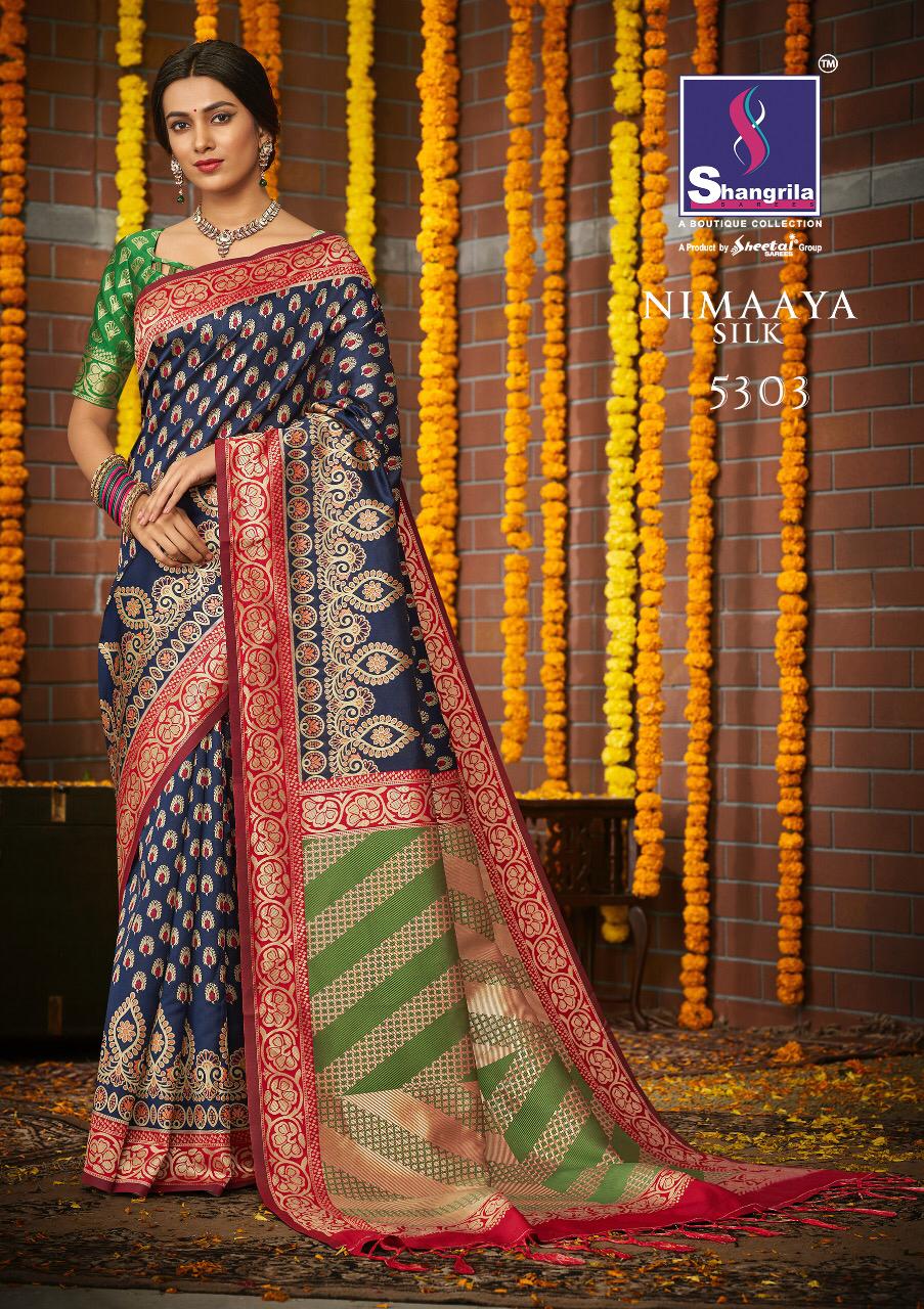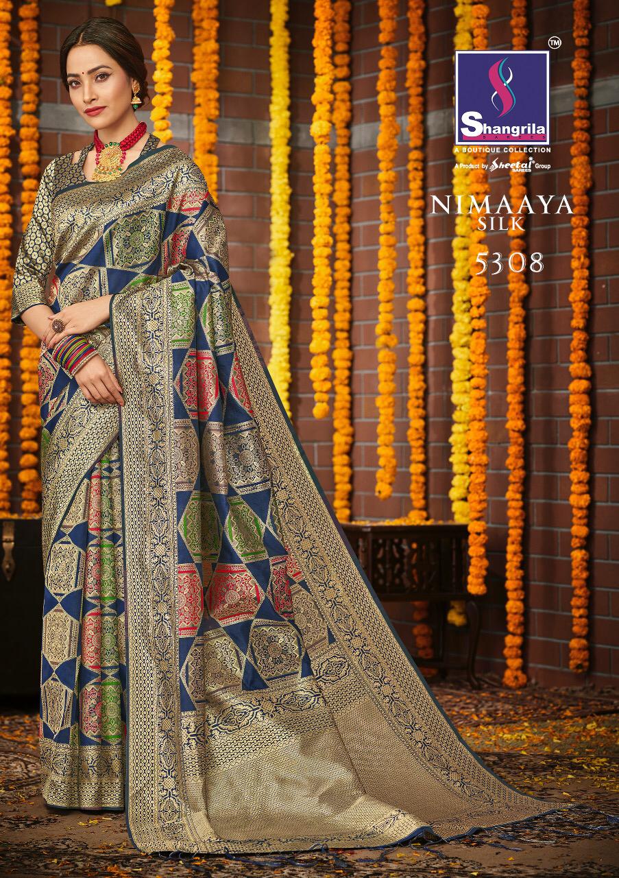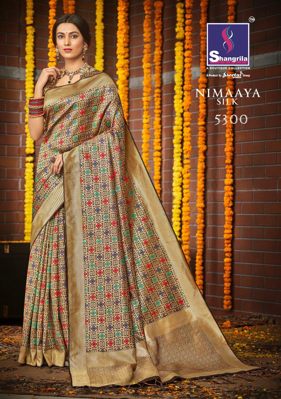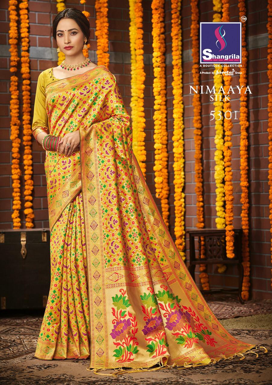 Nimaaya Silk By Shangrila 5300 Series Fancy Weaving Silk Saree Catlog Wholesaler Surat