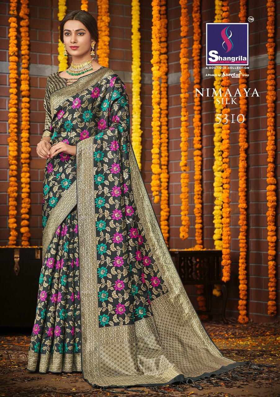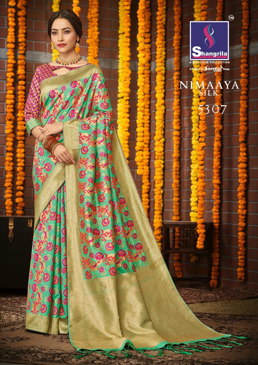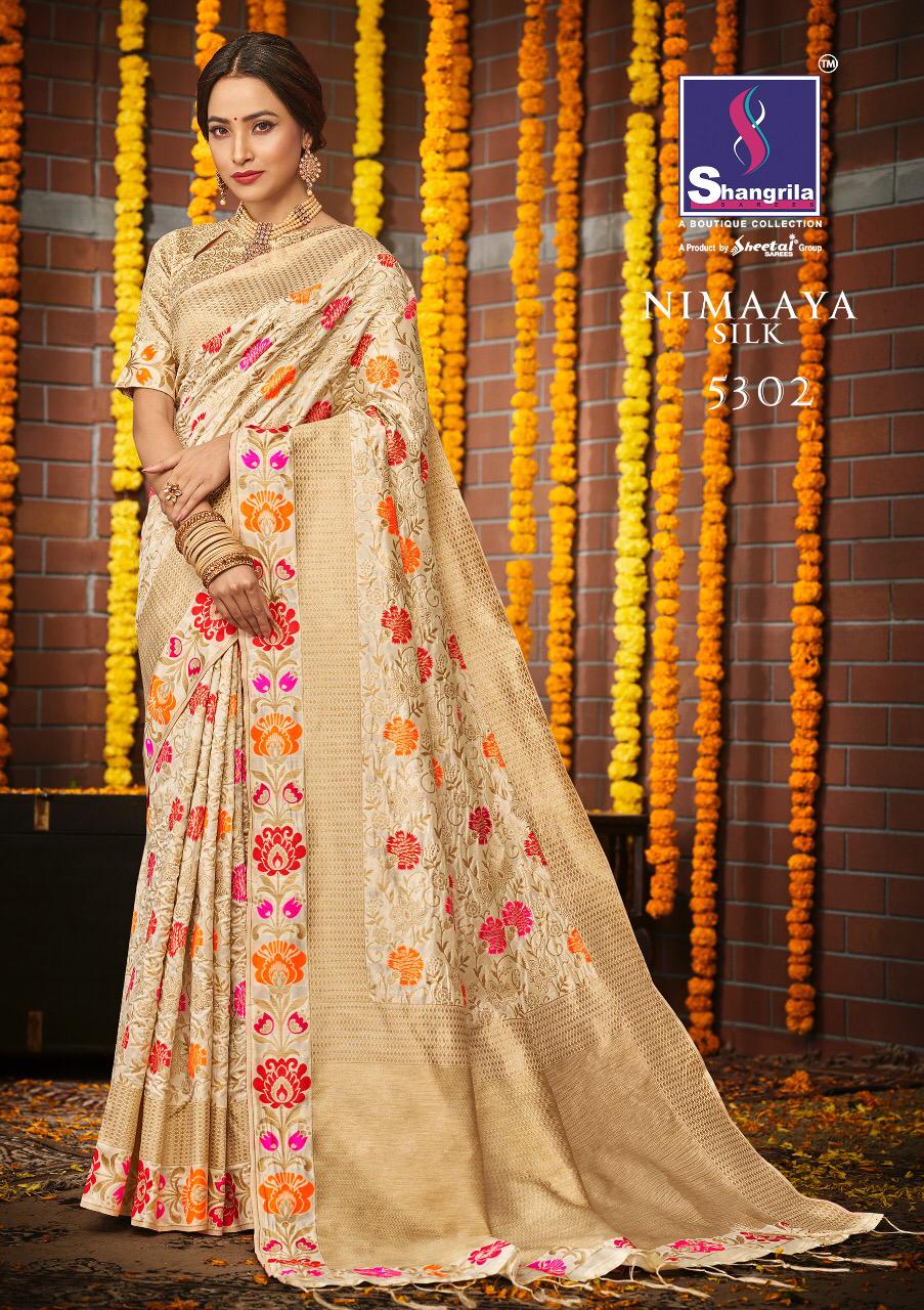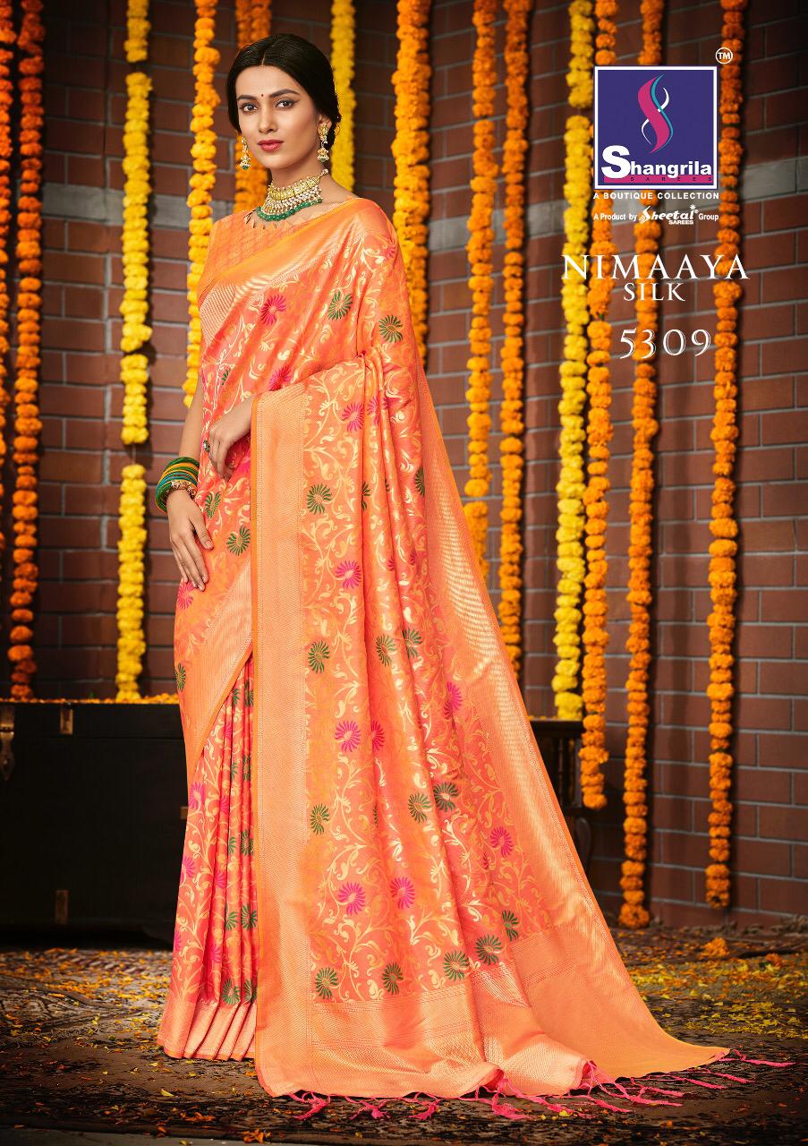 Nimaaya Silk By Shangrila 5300 Series Fancy Weaving Silk Saree Catlog Wholesaler Surat