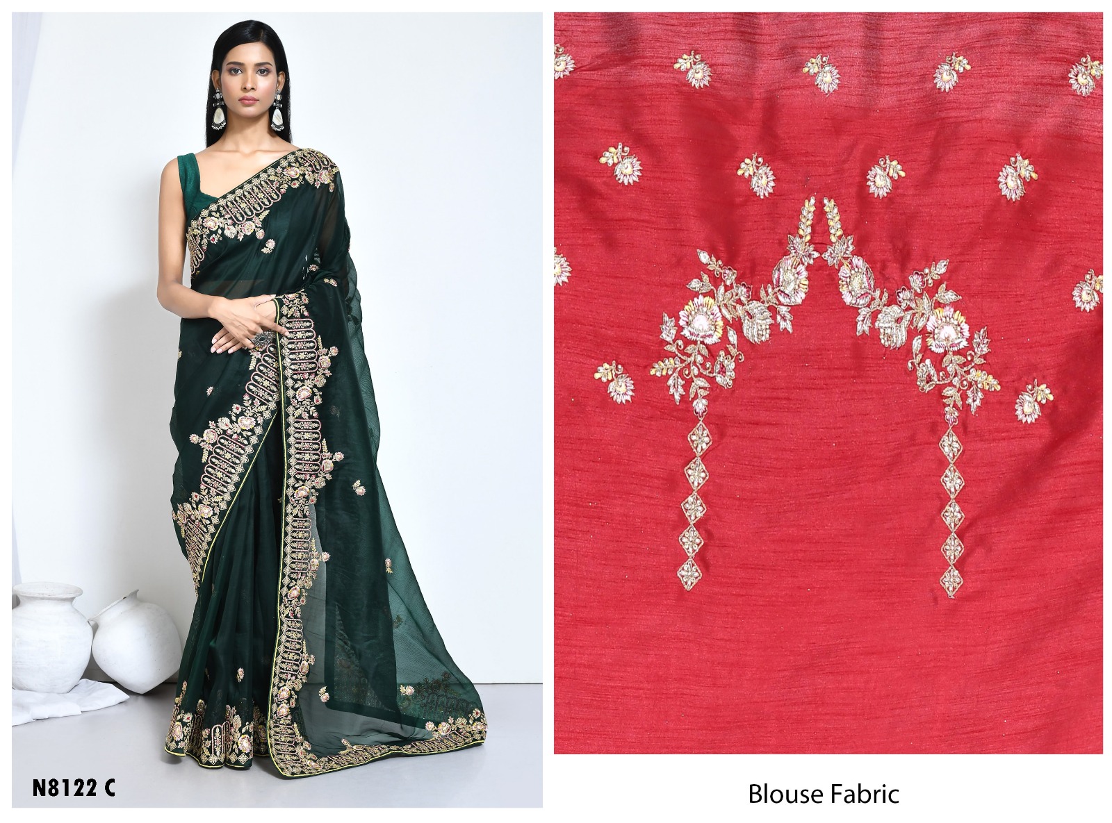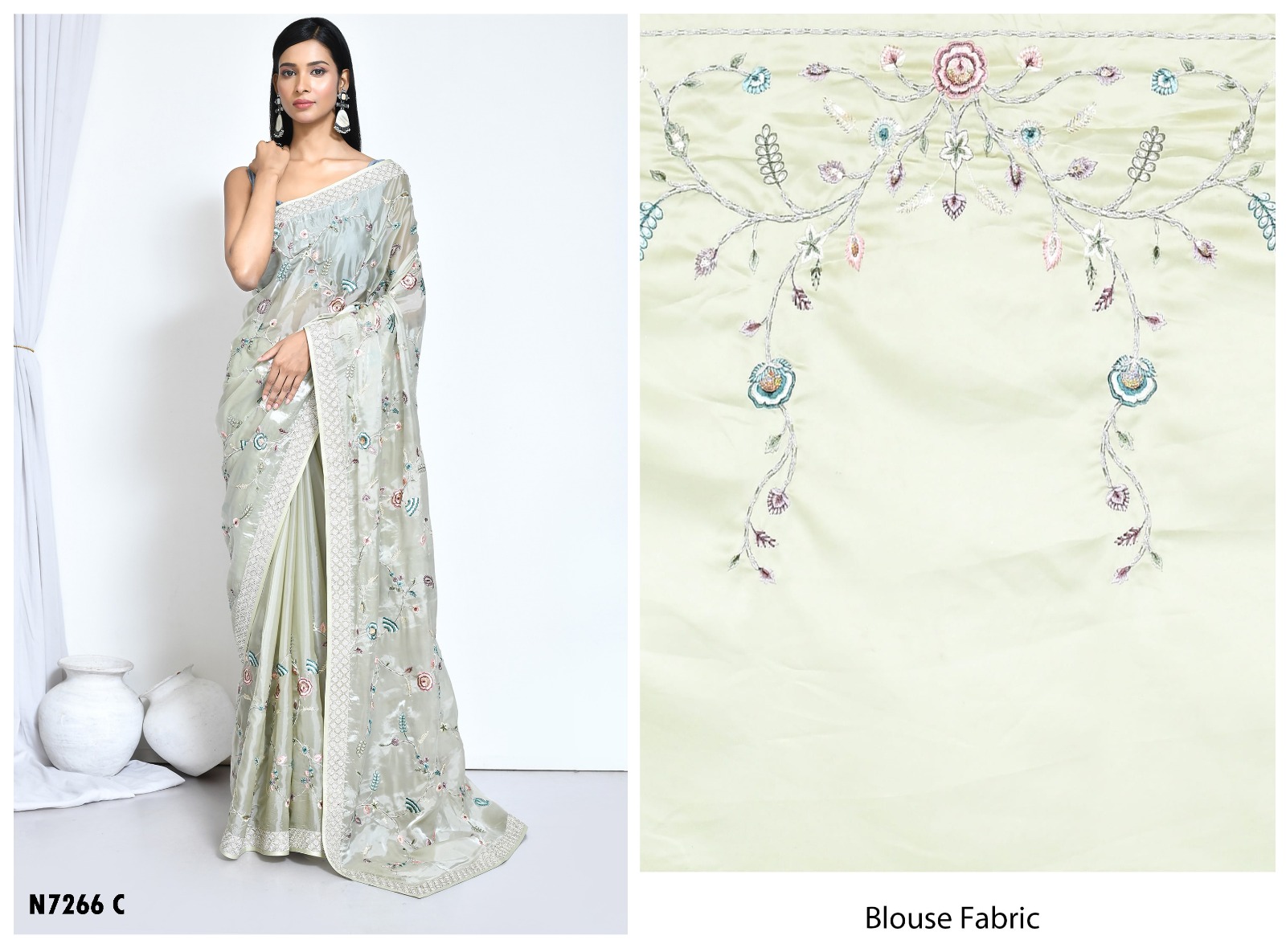 *? OUR NEW PARTY WEAR DESIGNER SAREE COLLECTION ??* *BRAND NAME : MAHOTSAV* *CATALOG : "NIMAYA BENZY VOL 01* *PRICE :-* *N7266 A-4275/-* *N7266 B-4275/-* *N7266 C-4275/-* *N7266 D-4275/-* *N7476 A-2595/-* *N7476 D-2595/-* *N8117-1075/-* *N8118-1075/-* *N8122 C-2425/-* *N8125 C-2045/-* *N8141 A-2145/-* *N8145 D-2145/-* *N8150-1595/-* *N8151-1595/-* *5% GST EXTRA* *FABRIC -: ATTACHED* *BLOUSE TYPE : UN STITCHED* *SINGLES AVAILABLE* 100+single |