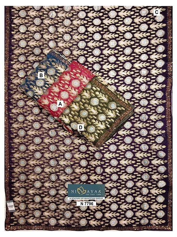 Buy Online NIMAYA by MAHOTSAV Fancy saree collection manufacturer surat 13 Pcs of Full Catalogue at Wholesale Price. Looking for NIMAYA by MAHOTSAV Fancy saree collection manufacturer surat Full Catalouge at Best Price? Buy Now NIMAYA by MAHOTSAV Fancy saree collection manufacturer surat at Wholesale Rate of Rs 0 with Total 13 Pcs from authroized dealer and supplier of Mahotsav Saree Brand. Cost of Each piece is just only Rs 0 which is very low and affordable price to resale the product in your retail store ,This is Surat based Wholesale Supplier & Dealer of Mahotsav Saree Brand. Click on Brand name to Know more about Mahotsav Saree Brand's products.Call or Whatsapp on 9898838984 for booking or enquiry
