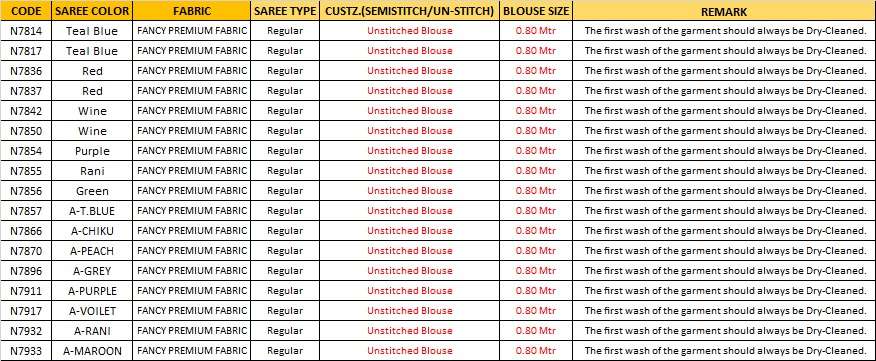 | Note | Stitching available on customer Requirment For Sarees , Salwar Kameez, Lehengha.(i.e M,L,XL,XXL). |